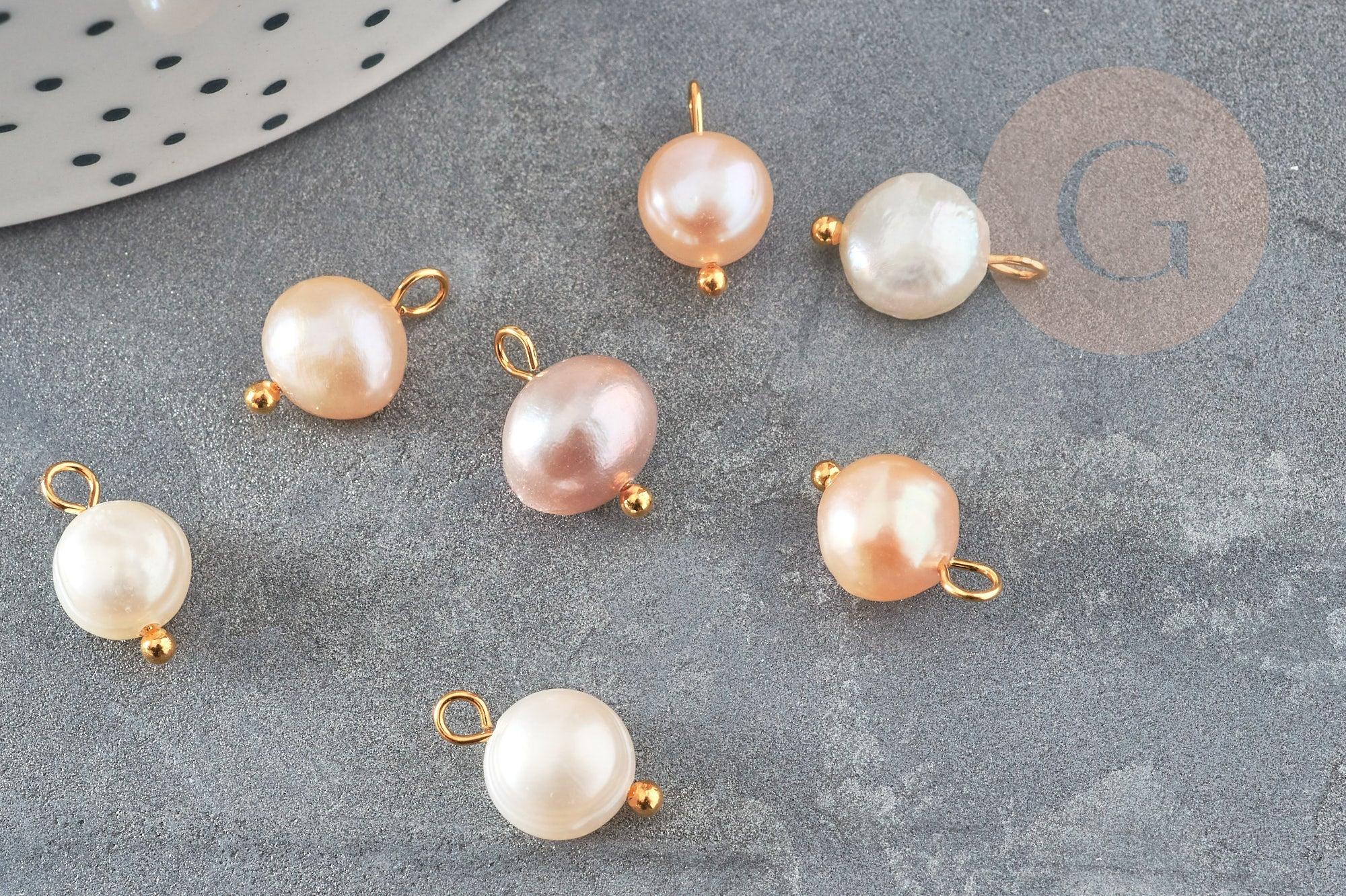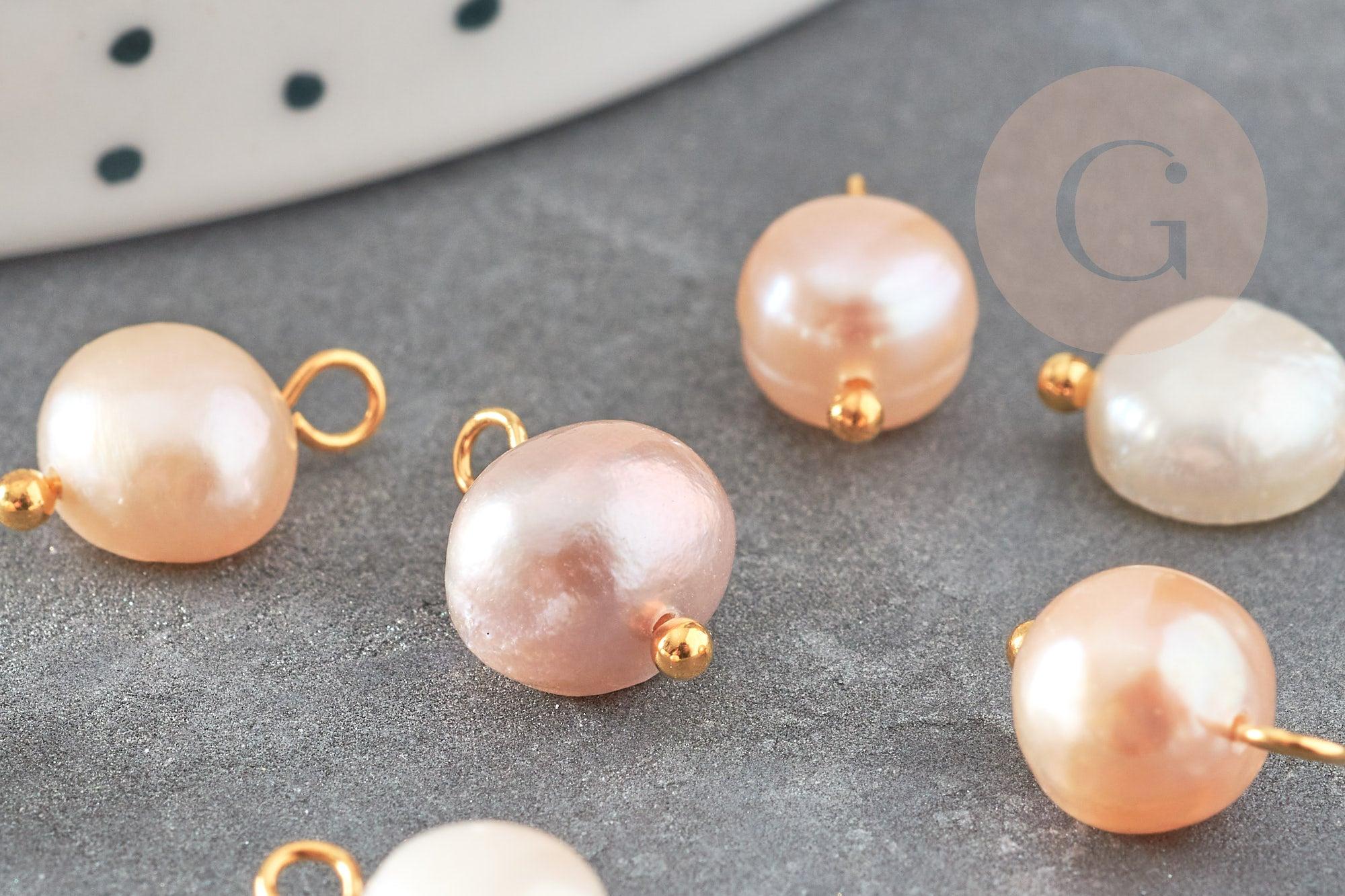 Fall for this natural freshwater pearl charm in pink tones , mounted on a brass rod. Ideal for creating many DIY costume jewelry.