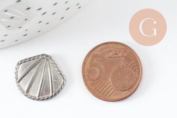 This platinum stainless steel shell cabochon measures 18.5mm in diameter and makes a superb base for your nature-inspired jewelry designs.