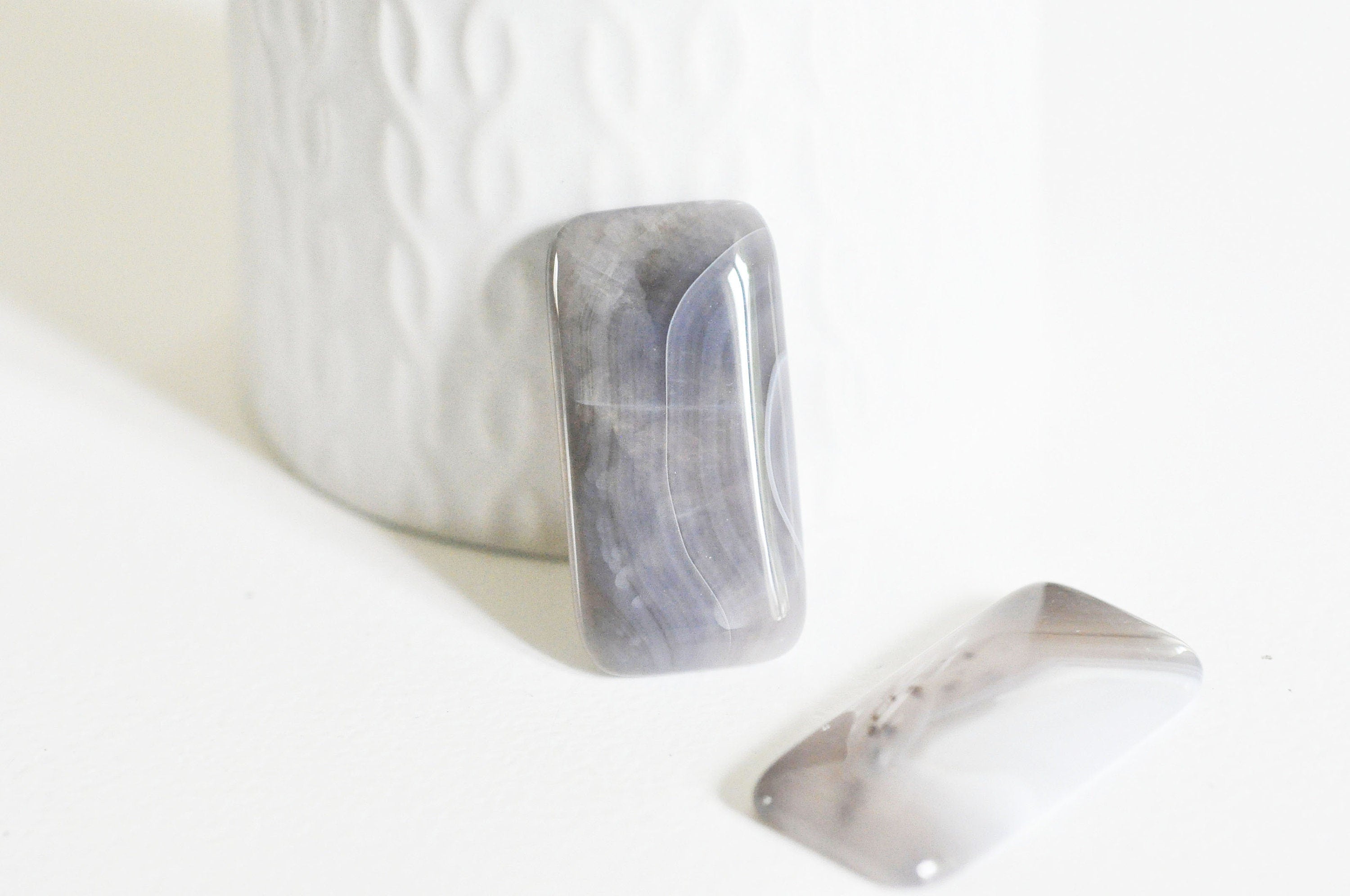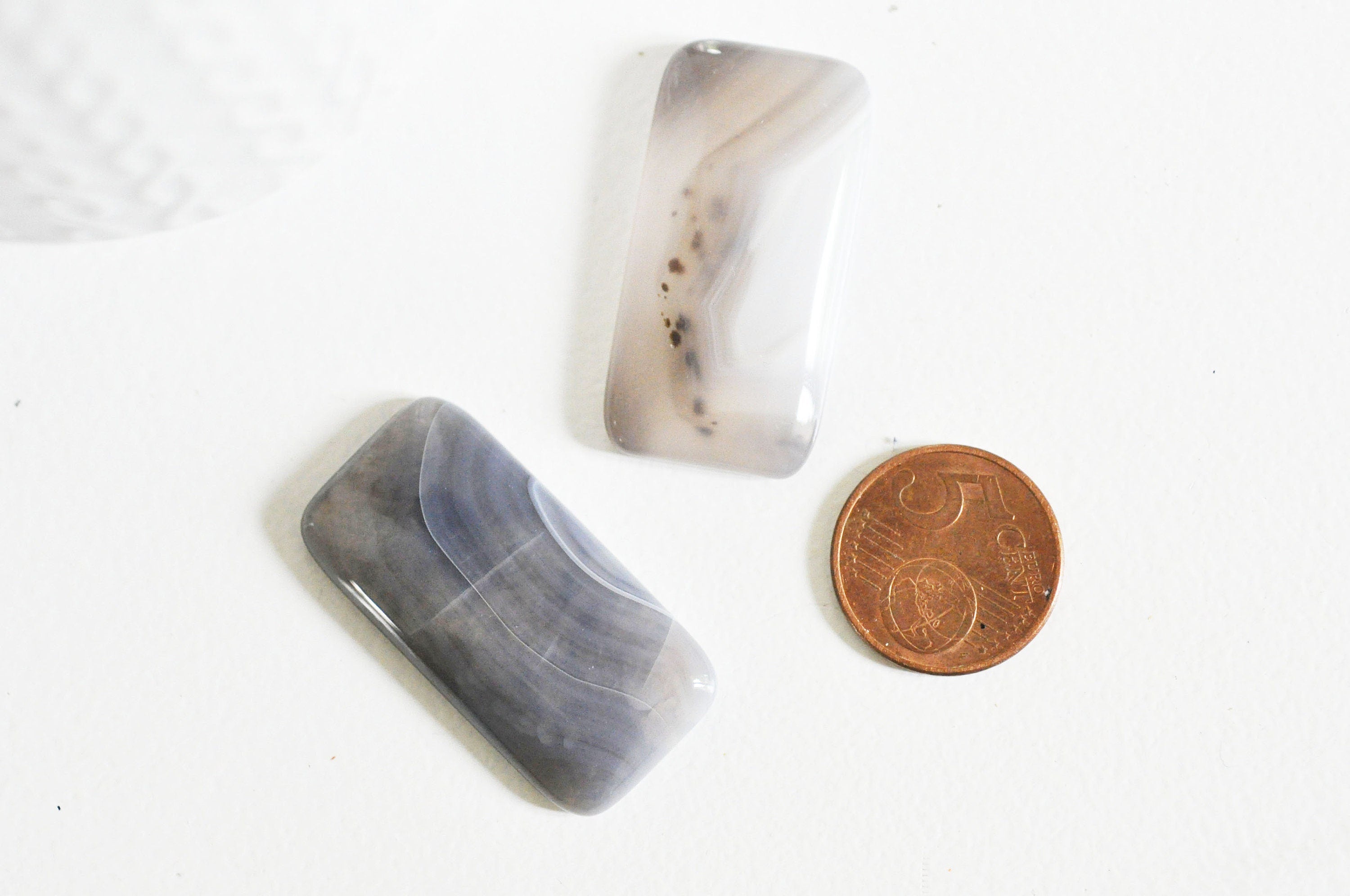 Fall for this rectangular cabochon in polished natural striped gray agate. Undyed Agate You can place it on your rings, earrings and necklaces, as well as bracelets and cuffs, by creating your setting or by sticking it on a suitable...