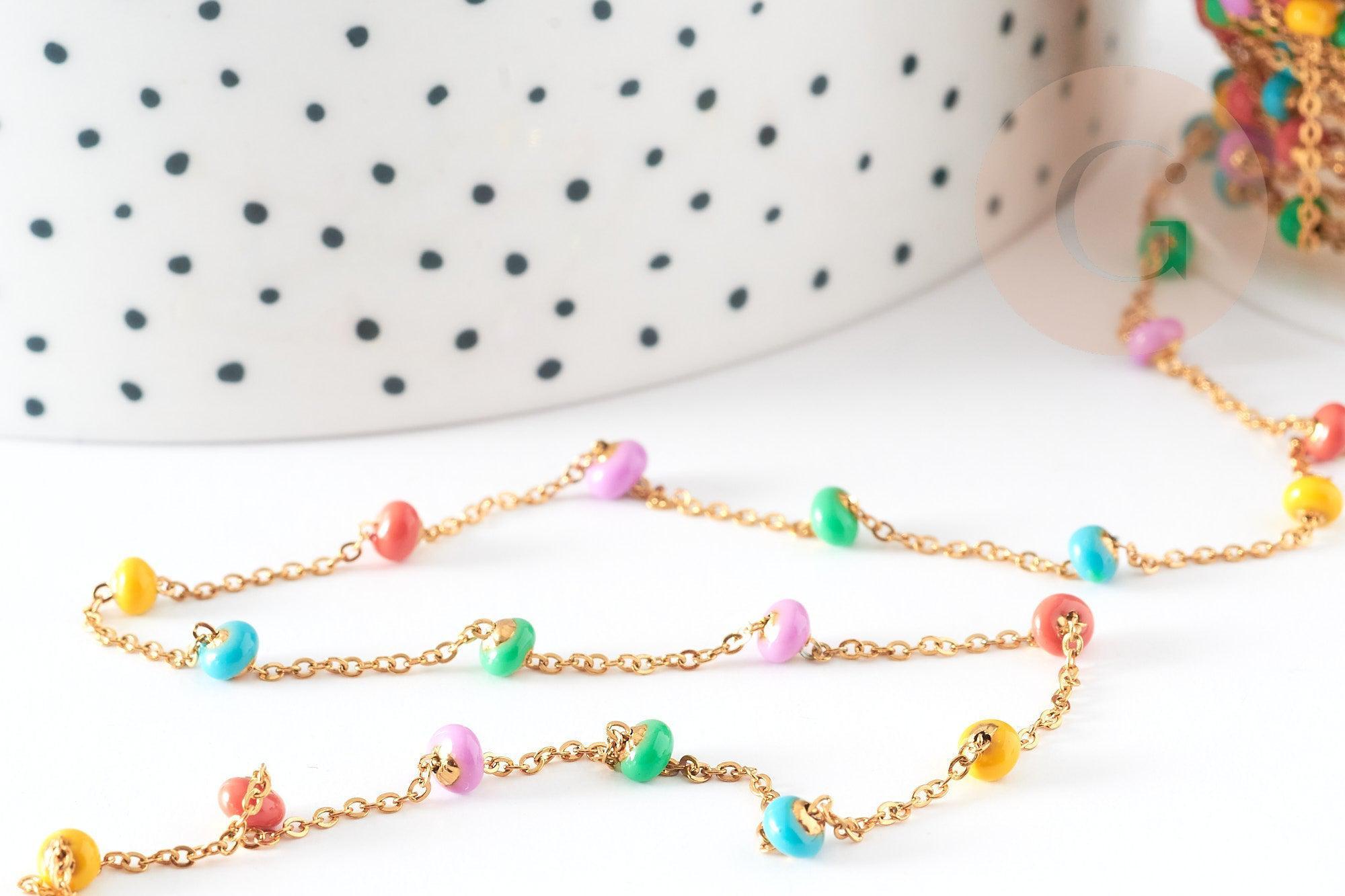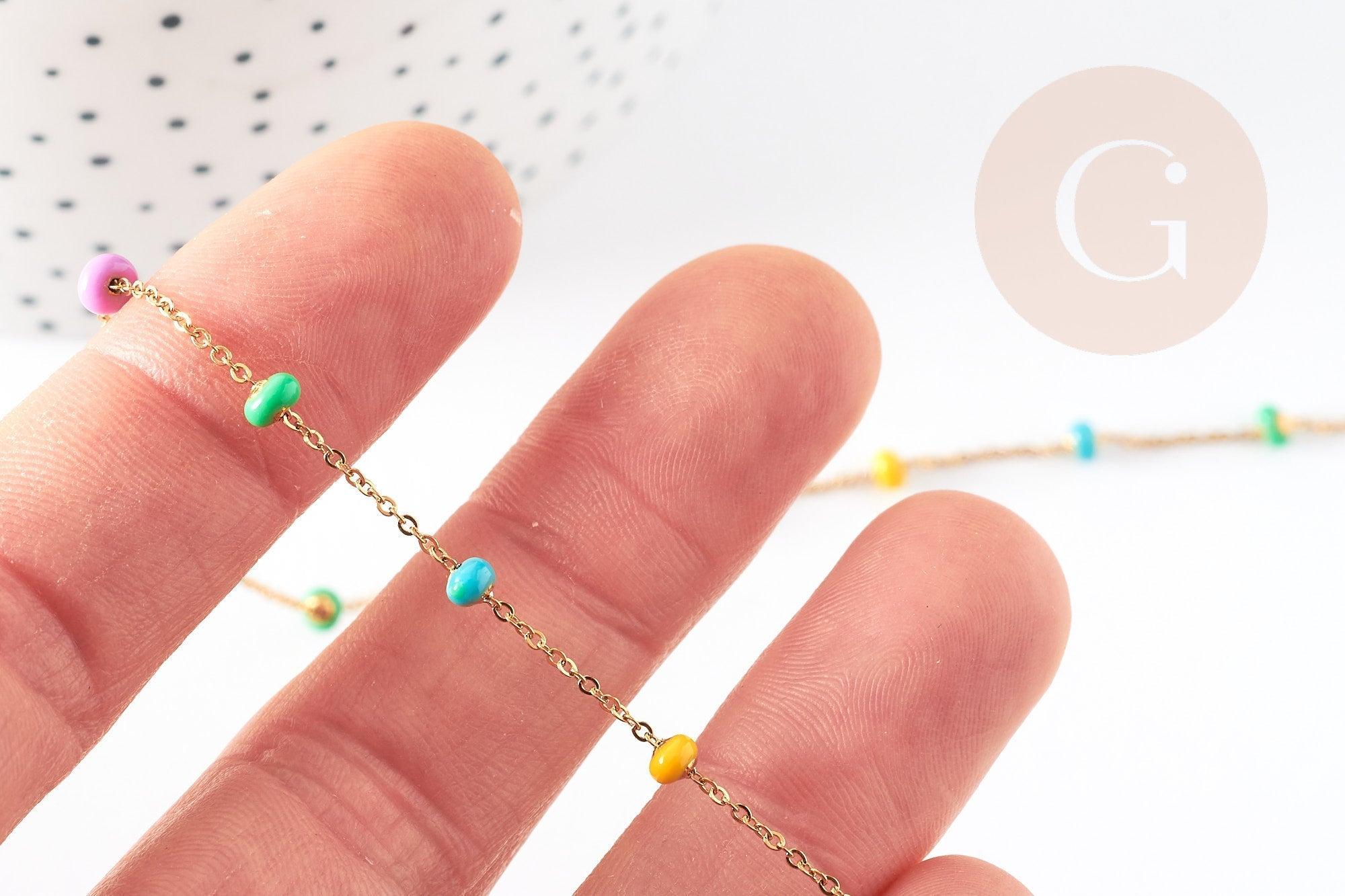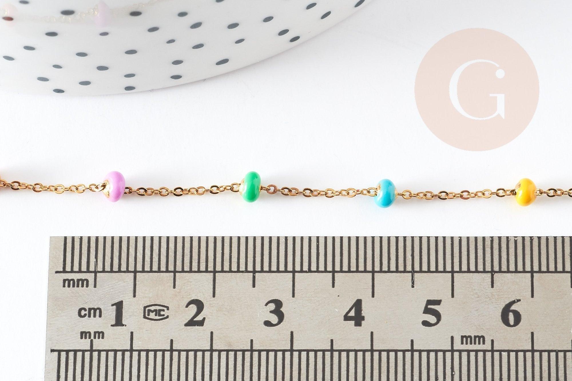 14 carat gold-plated steel chain, fancy pastel multi-colored resin, surgical steel chain, fine chain, jewelry creation, 1 meter, 0.5-1.mm