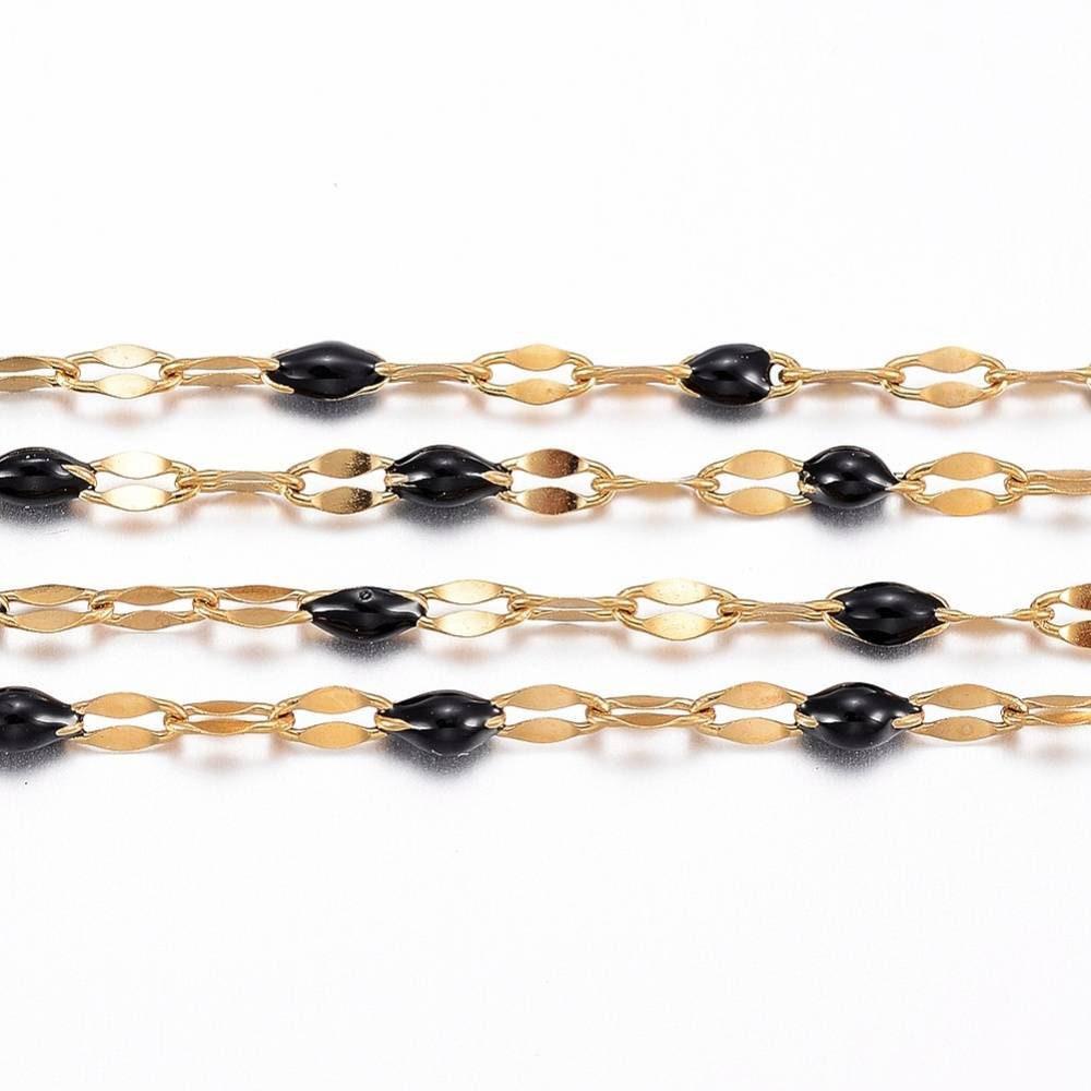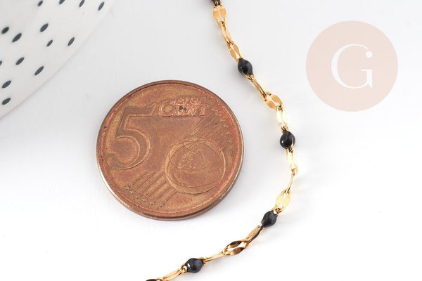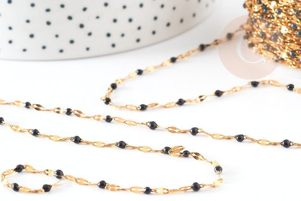 Beautifully textured , with 14 carat gold 0.25 micron; this will be ideal for your various fancy creations such as fancy necklaces , trendy sautoir, chic bracelets and elegant earrings . On certain places of the chain, it is enameled in black color.