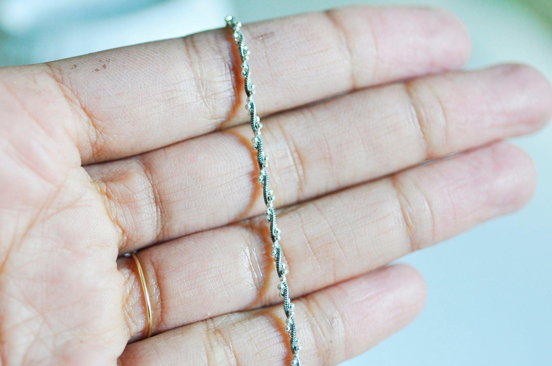 2-color solid silver necklace, creative supply, serpet chain, complete chain, necklace creation, 925 silver, jewelry creation 0.8mm, 40cm To quickly make your jewelry, Gingerlily offers you this 925 solid silver chain made up of two intertwined chains, an old silver-colored...