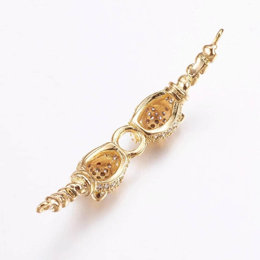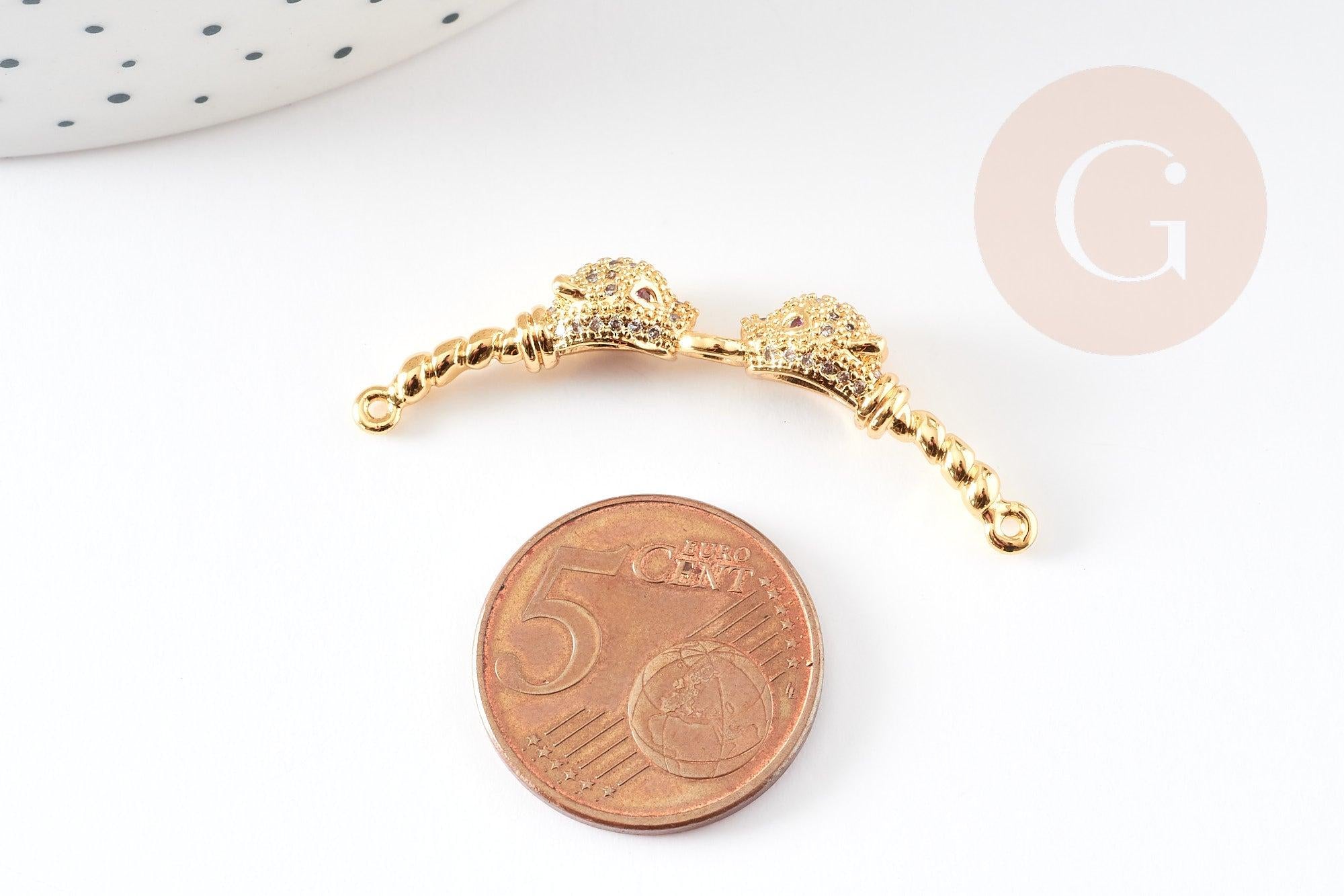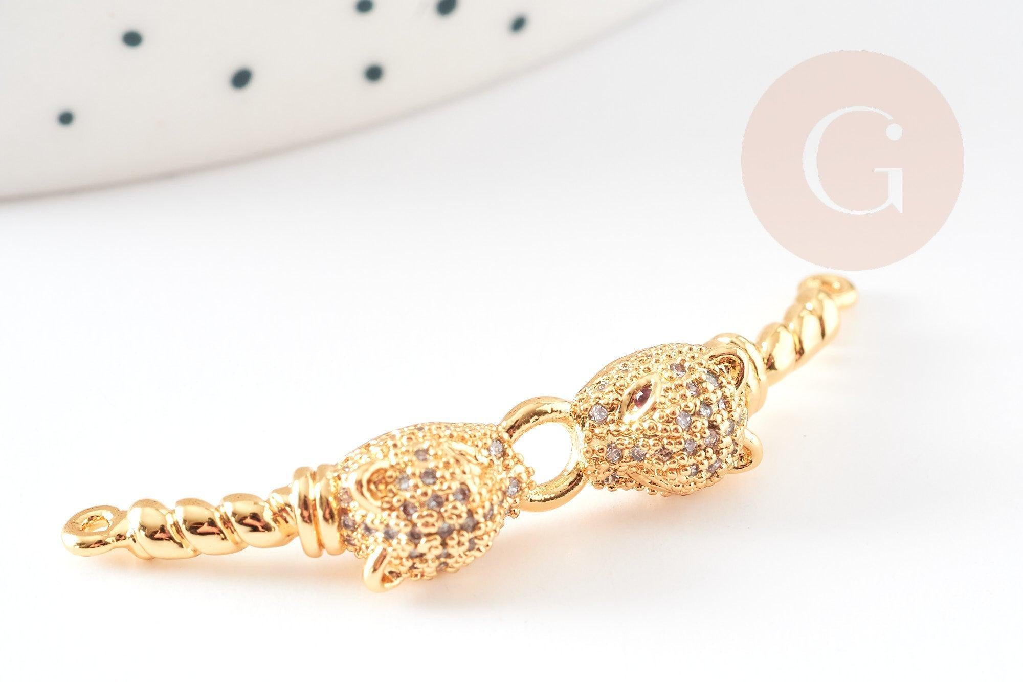A panther connector in golden brass and zircon rhinestones for your necklaces, bracelets and necklaces: solid and quality, it will highlight your golden jewelry.