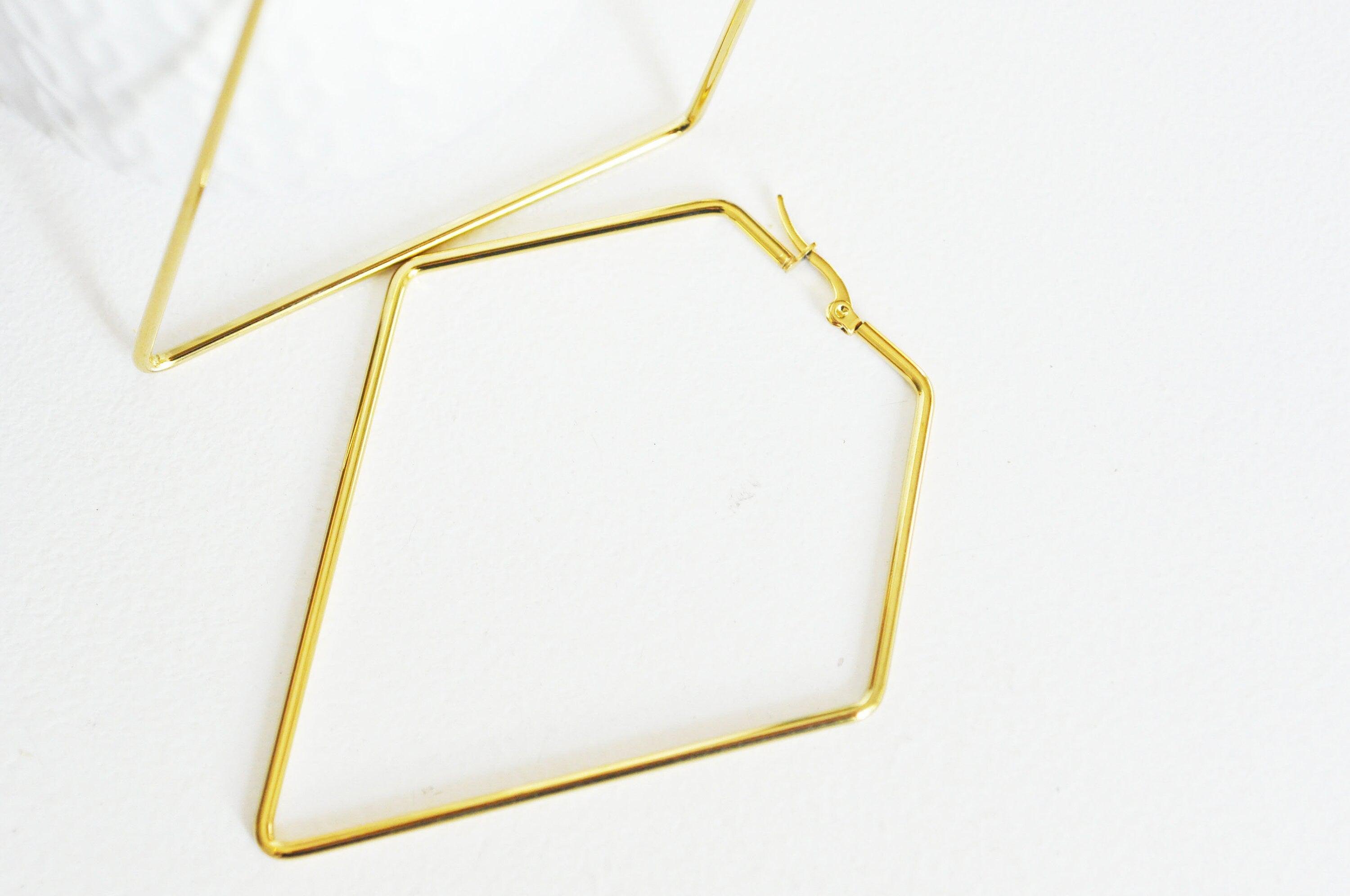 geometric diamond creole in gold-plated steel, gold-plated jewelry, jewelry creation, diamond earrings, nickel-free, pair, steel earrings, 87mm, pair Geometric hoop earrings in gold-plated steel Sold in pairs Jewelry guaranteed to be nickel, lead and cadmium free Quality, long-lasting gilding Sold...