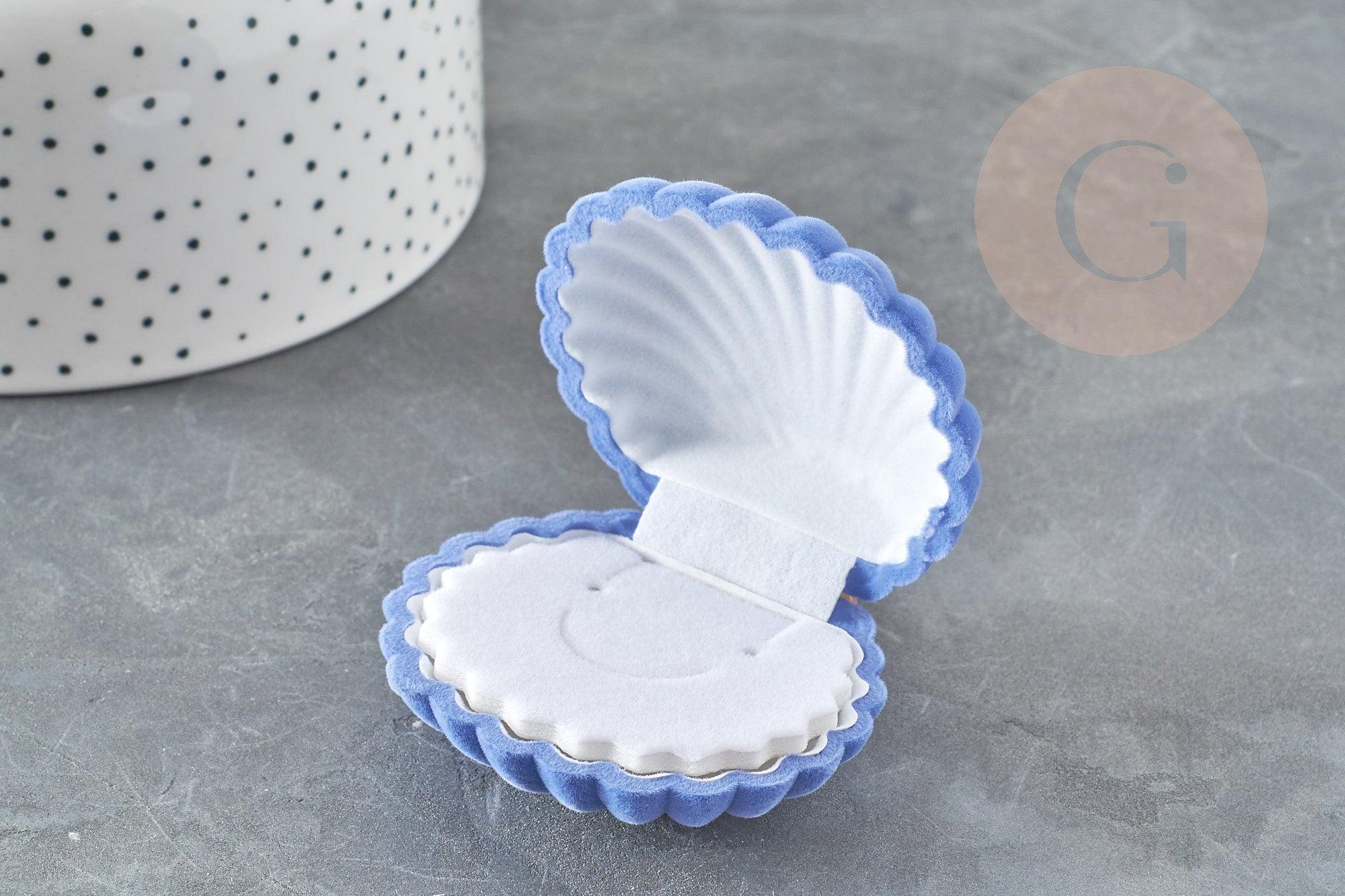 Ecrin bijou coquillage Velours bleu, boite bijoux, rangement bijoux, intérieur blanc, 3.5x3.8cm, x1 G3293