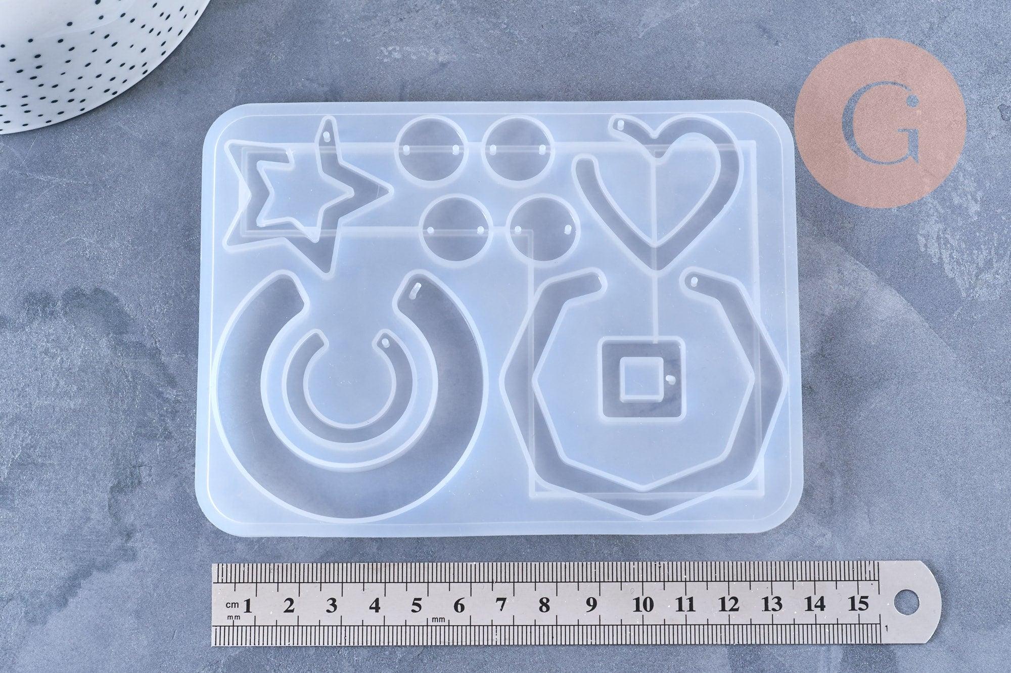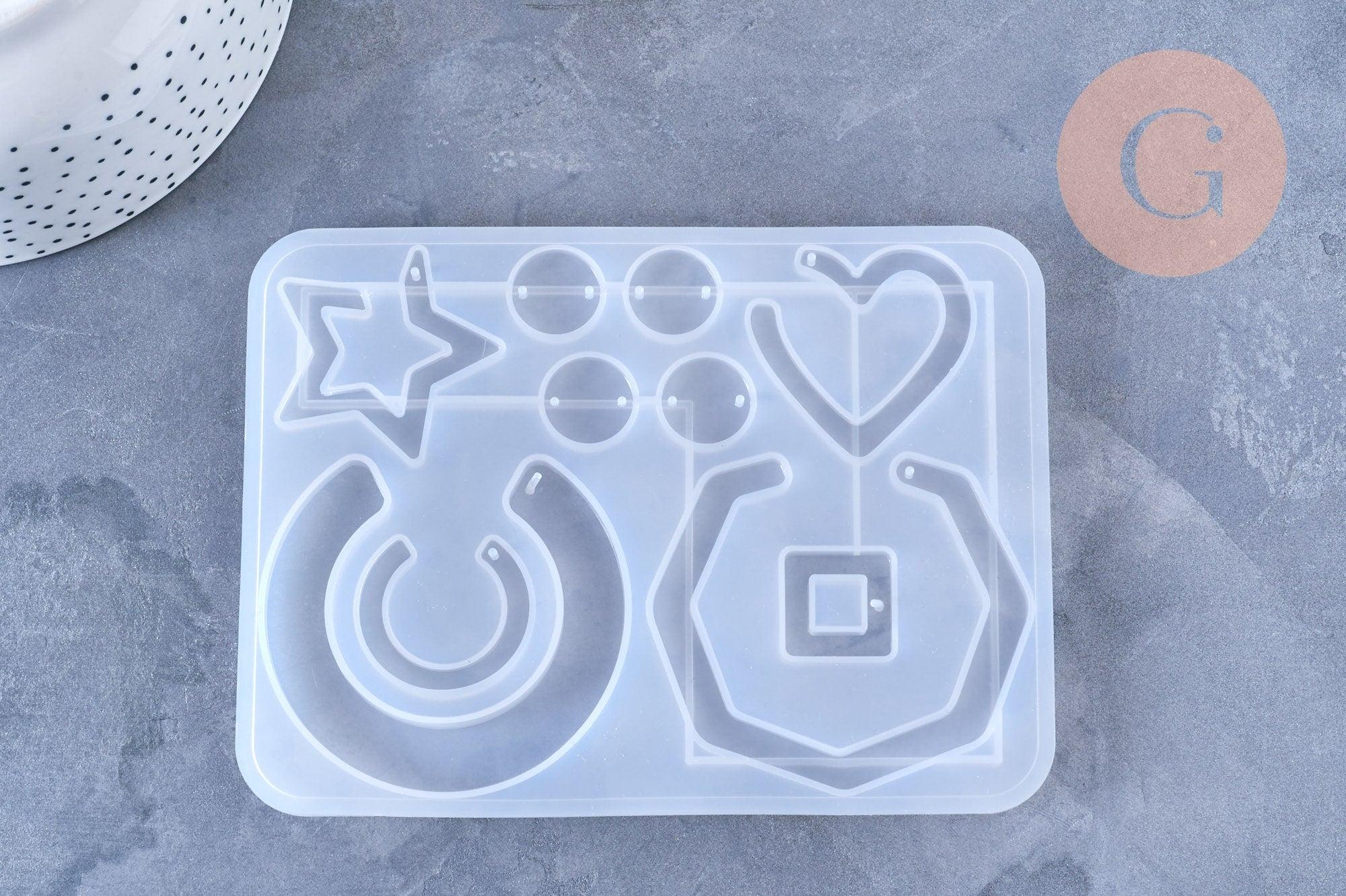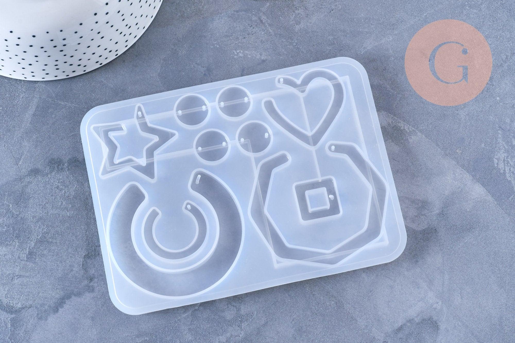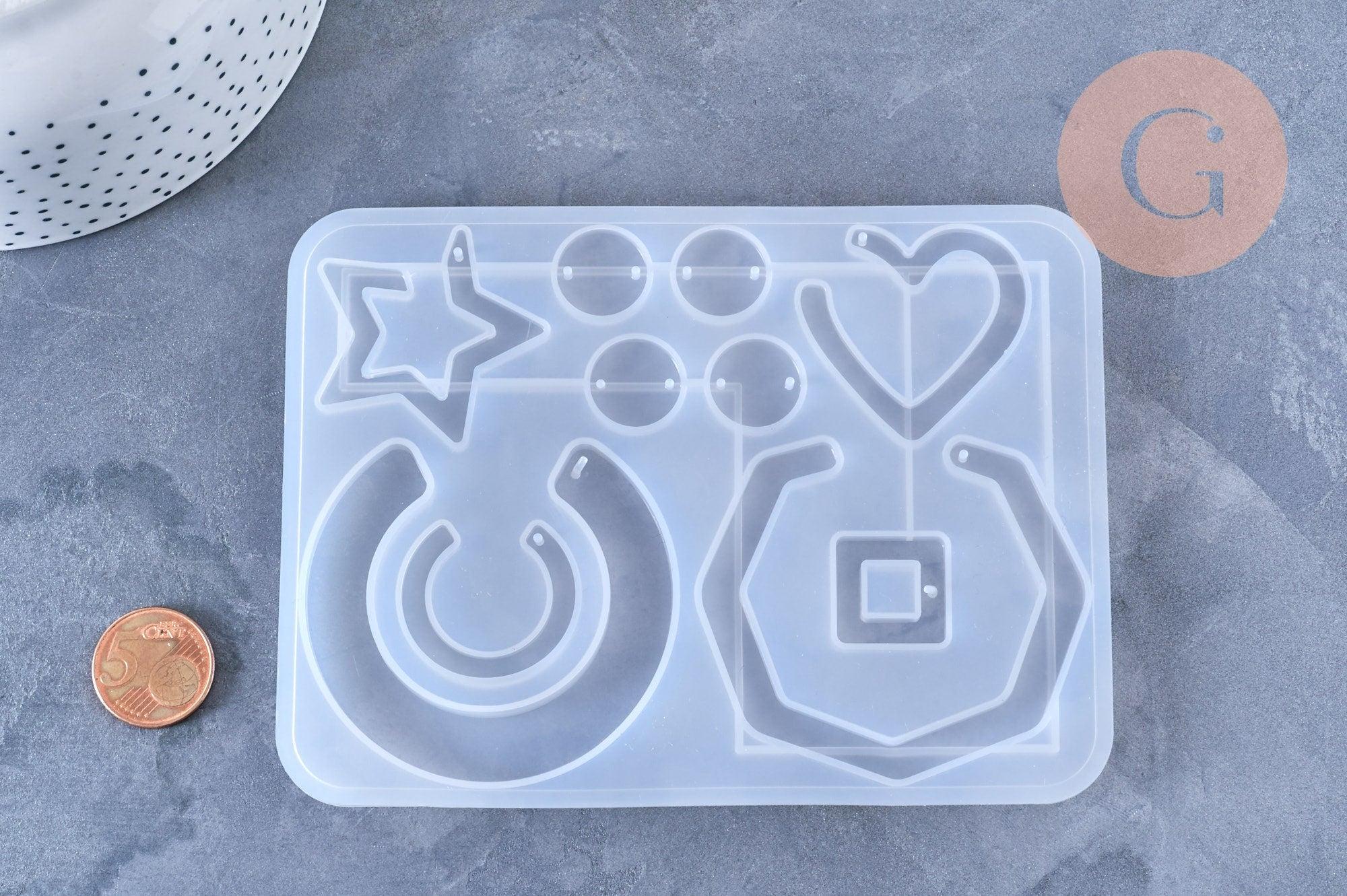 A very practical Circle, heart and hexagon mold to make an infinite number of resin hoops and connectors, with or without inclusions.