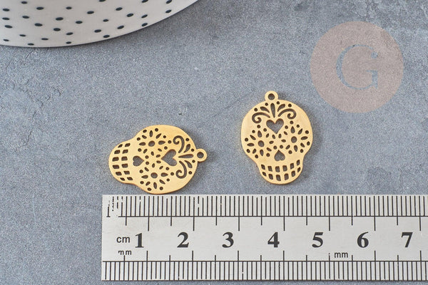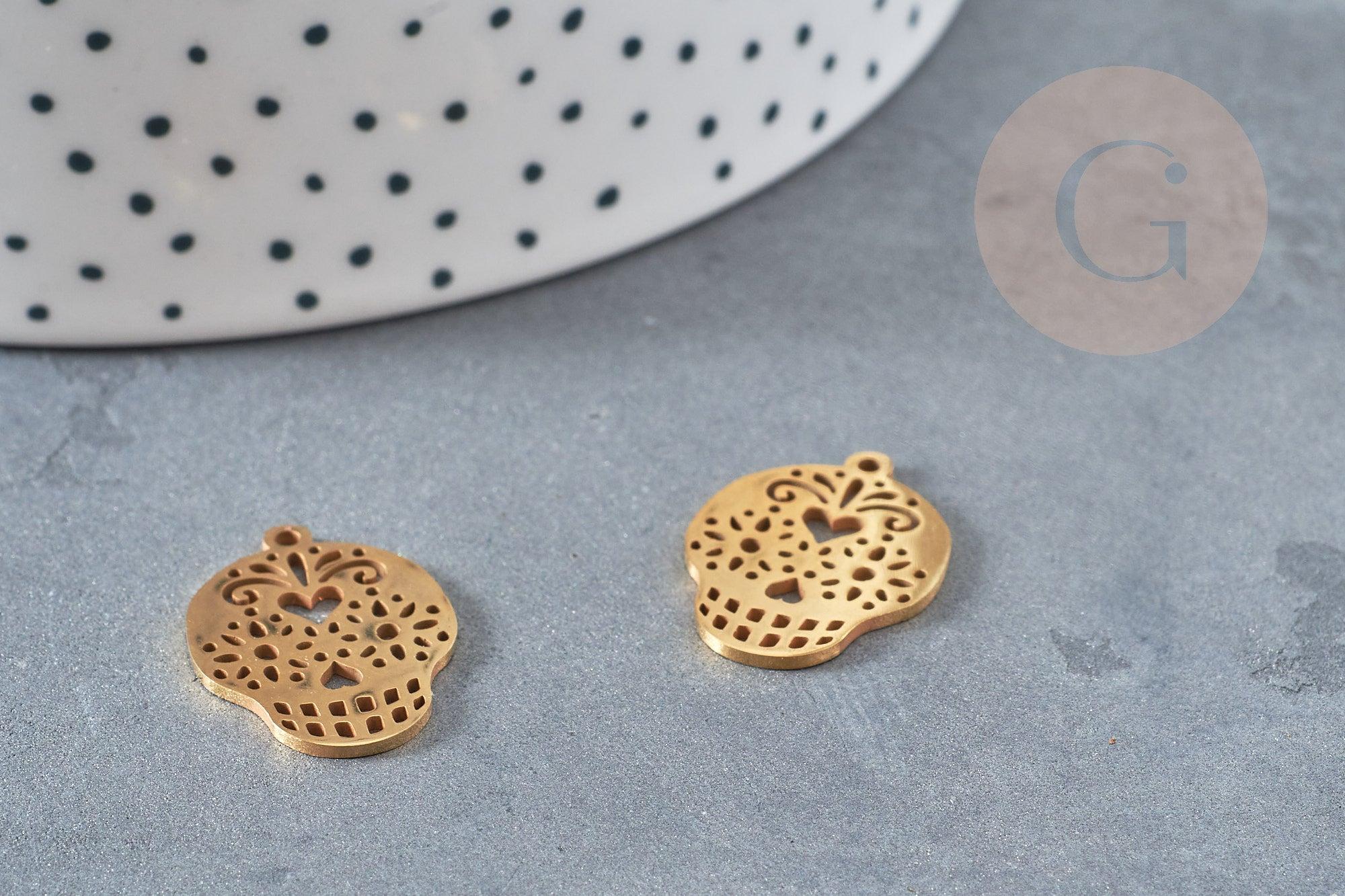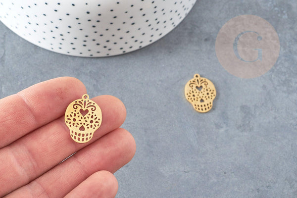 A skull pendant , symbol of the Day of the Dead in Mexico, in gold-plated stainless steel.