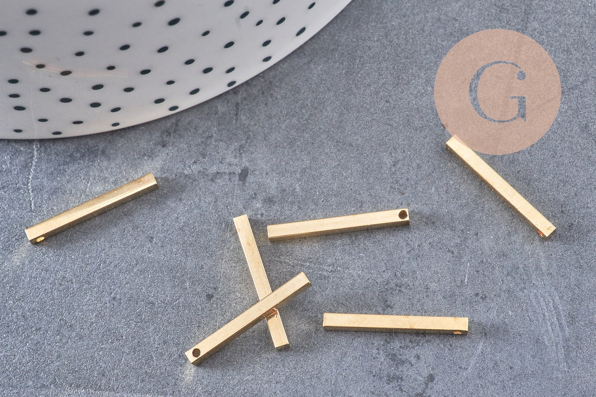 💛 Create graphic earrings by combining these gold bars with rings or colored beads.