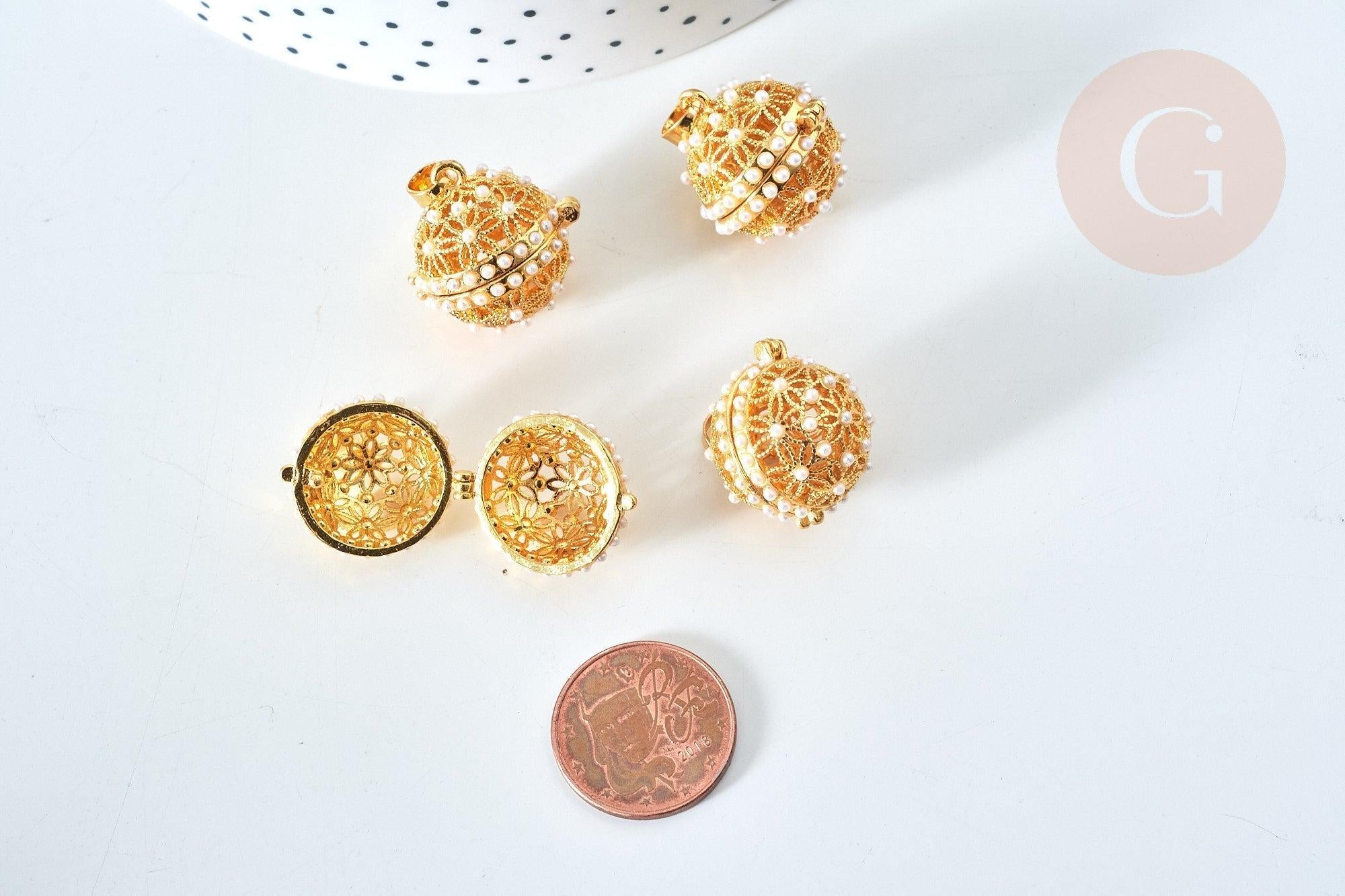 To create a bola jewel , gingerlily offers you this gold-colored cage pendant with a decoration of small pearly white pearls
