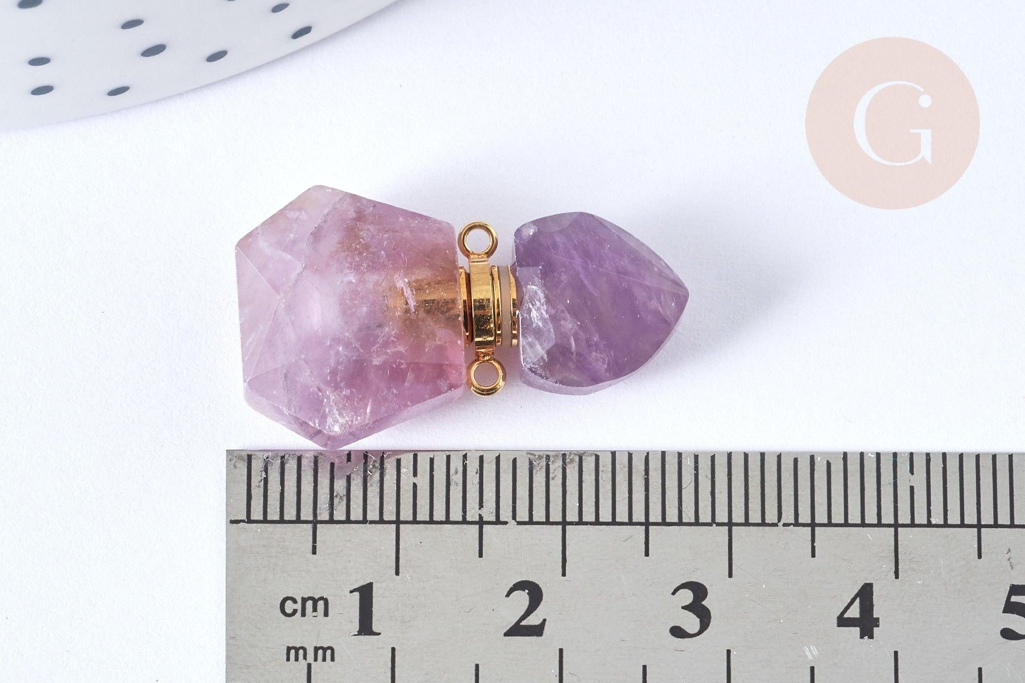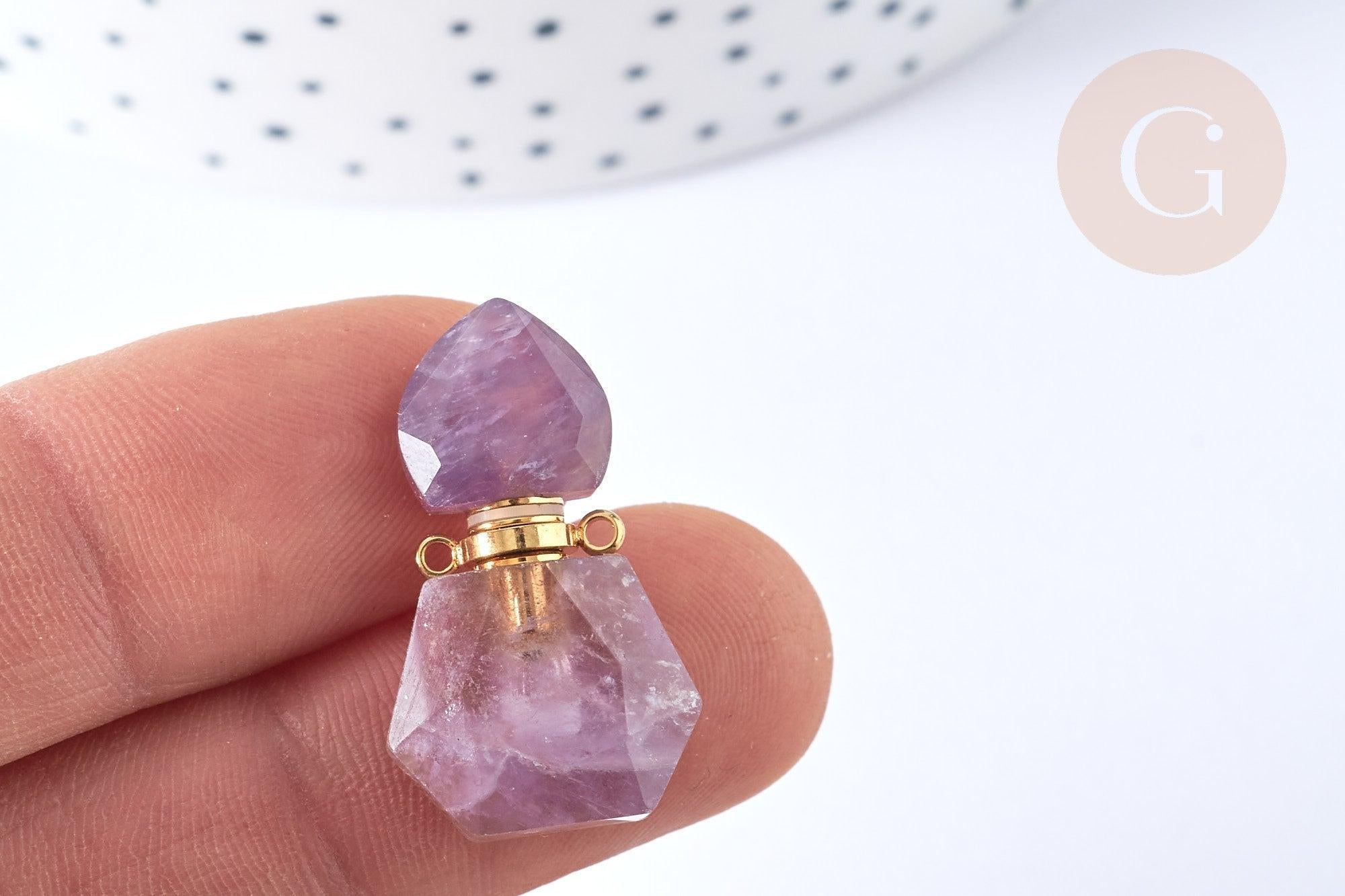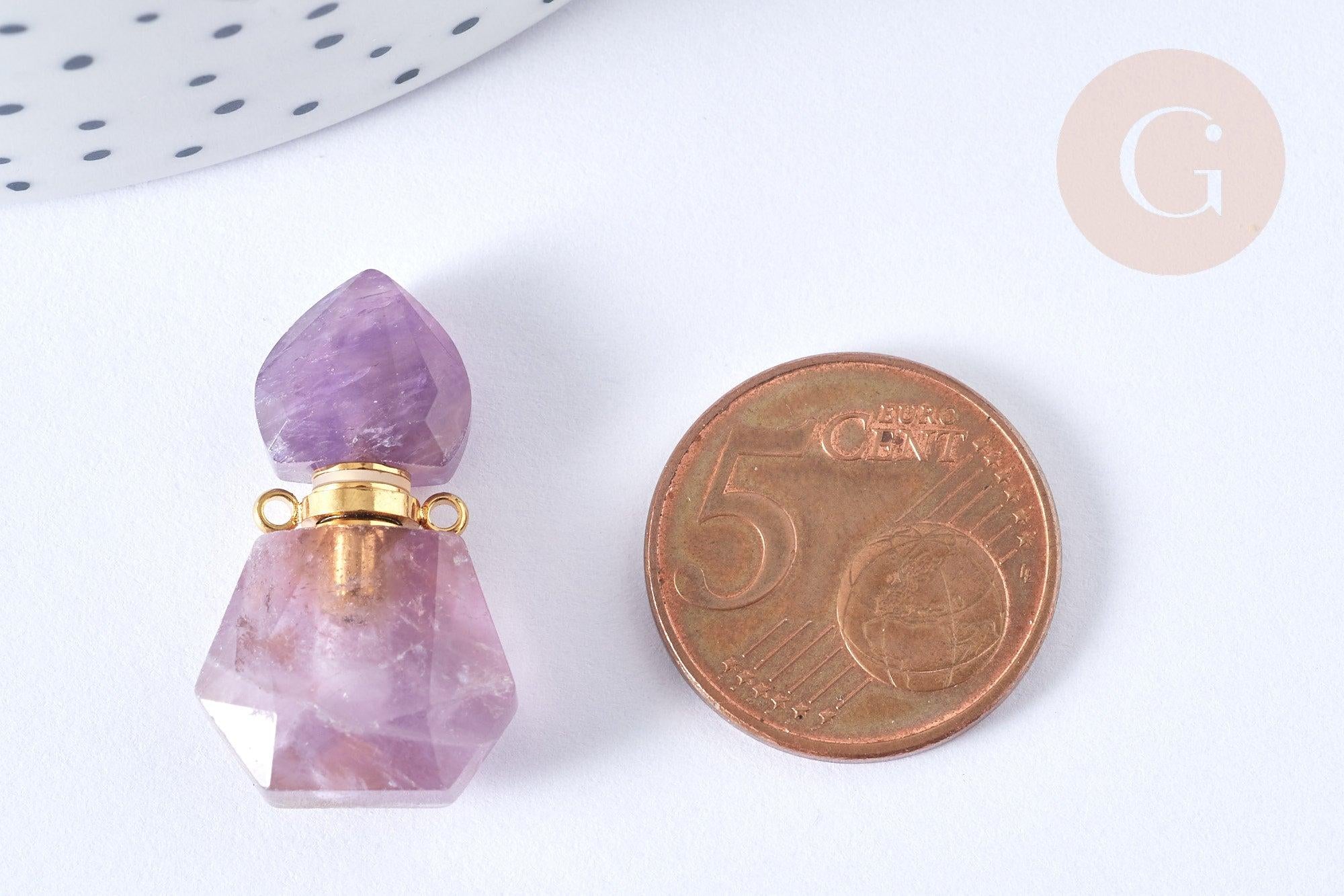 Pendentif bouteille parfum améthyste naturelle acier 304 inoxydable doré 27.5mm, x1 (G3928)