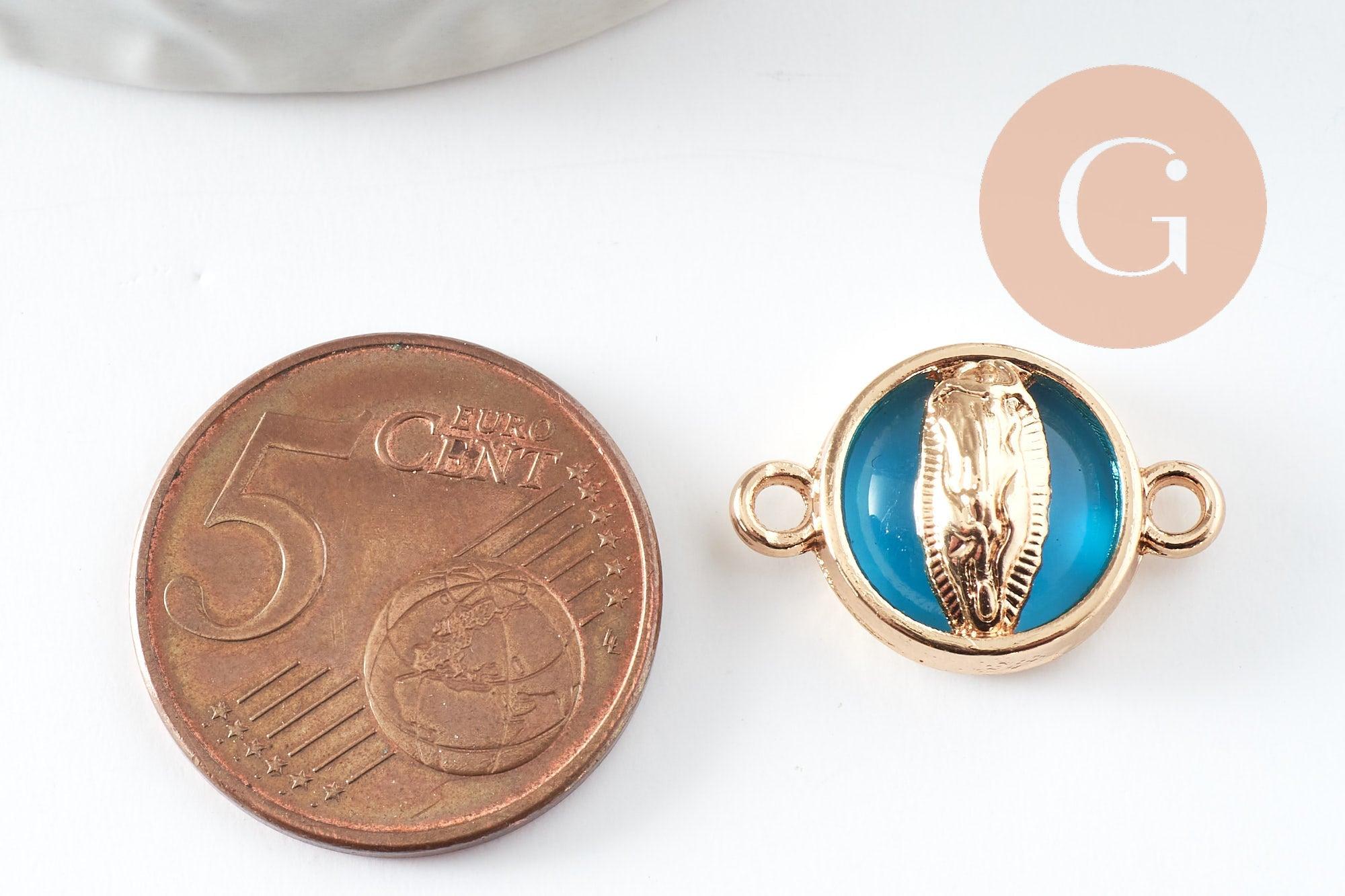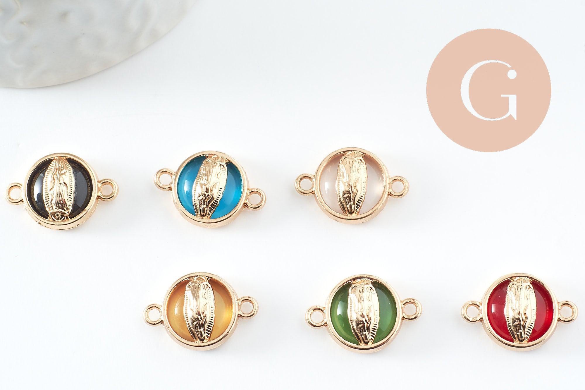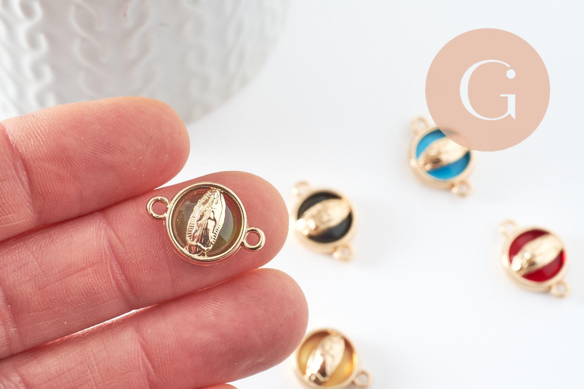 A pretty golden connector medal representing the Virgin enameled with colored resin.