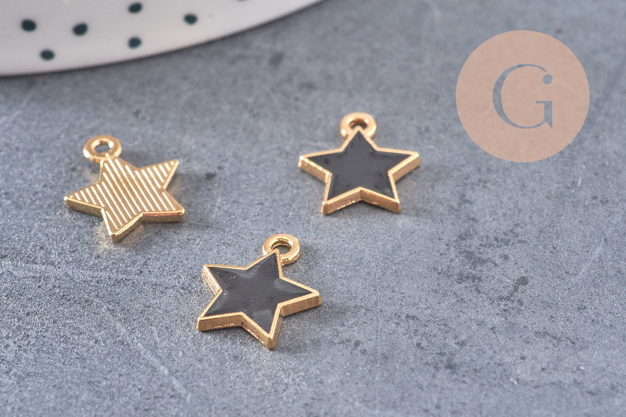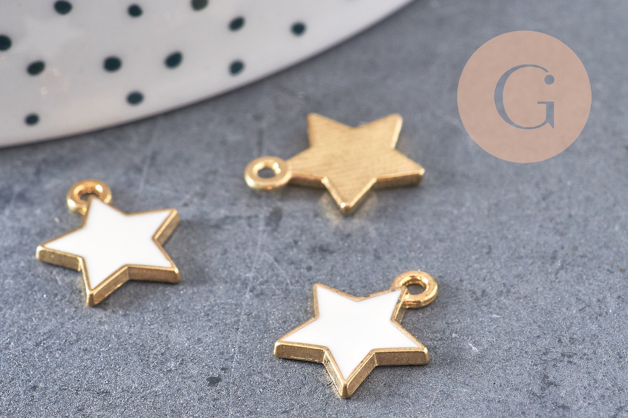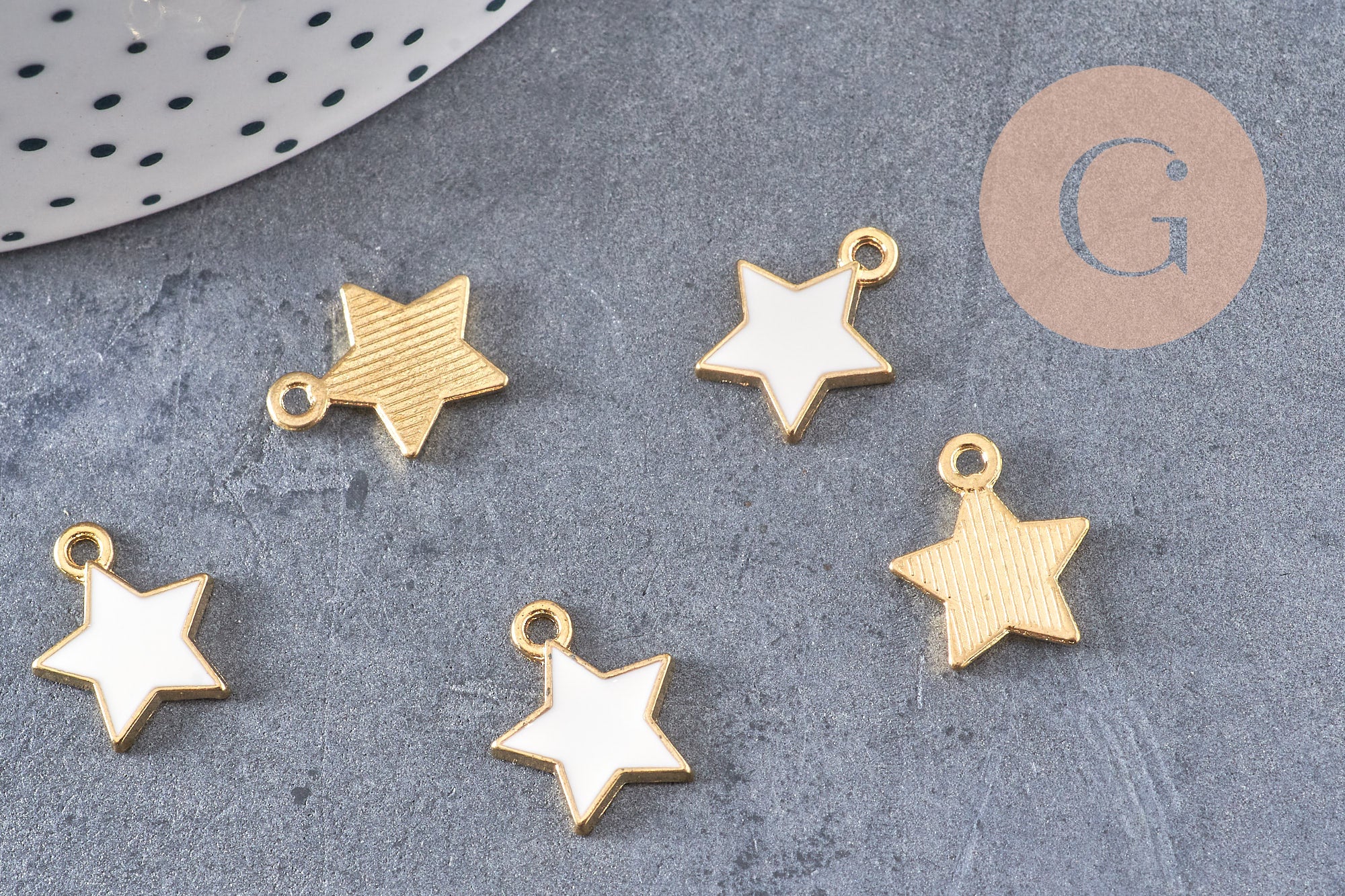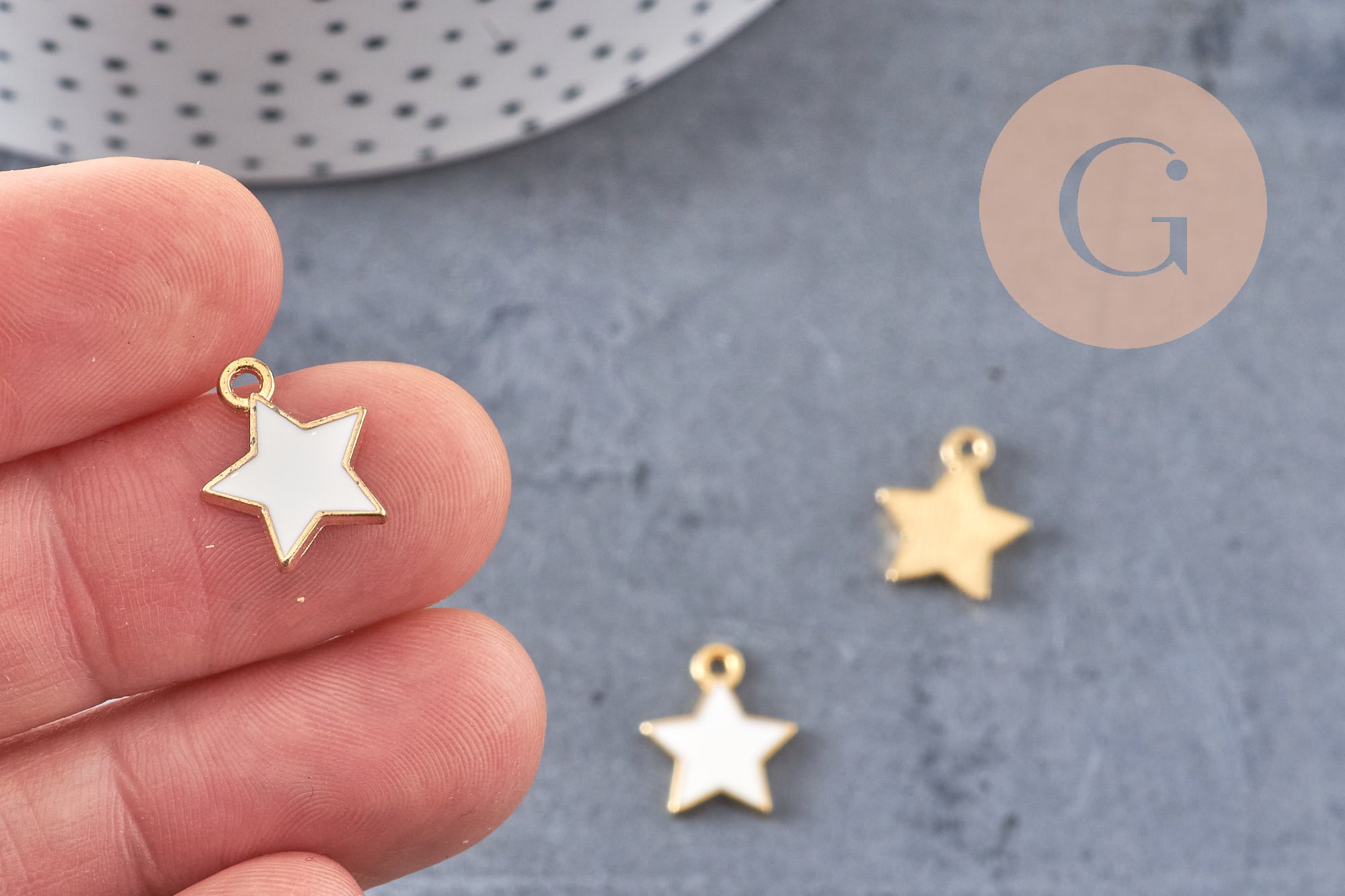 Adorable little star pendants in gold-plated zamac and colored enamel with a pretty white zircon crystal in the center, findings to always have in your toolbox to make all your jewelry.