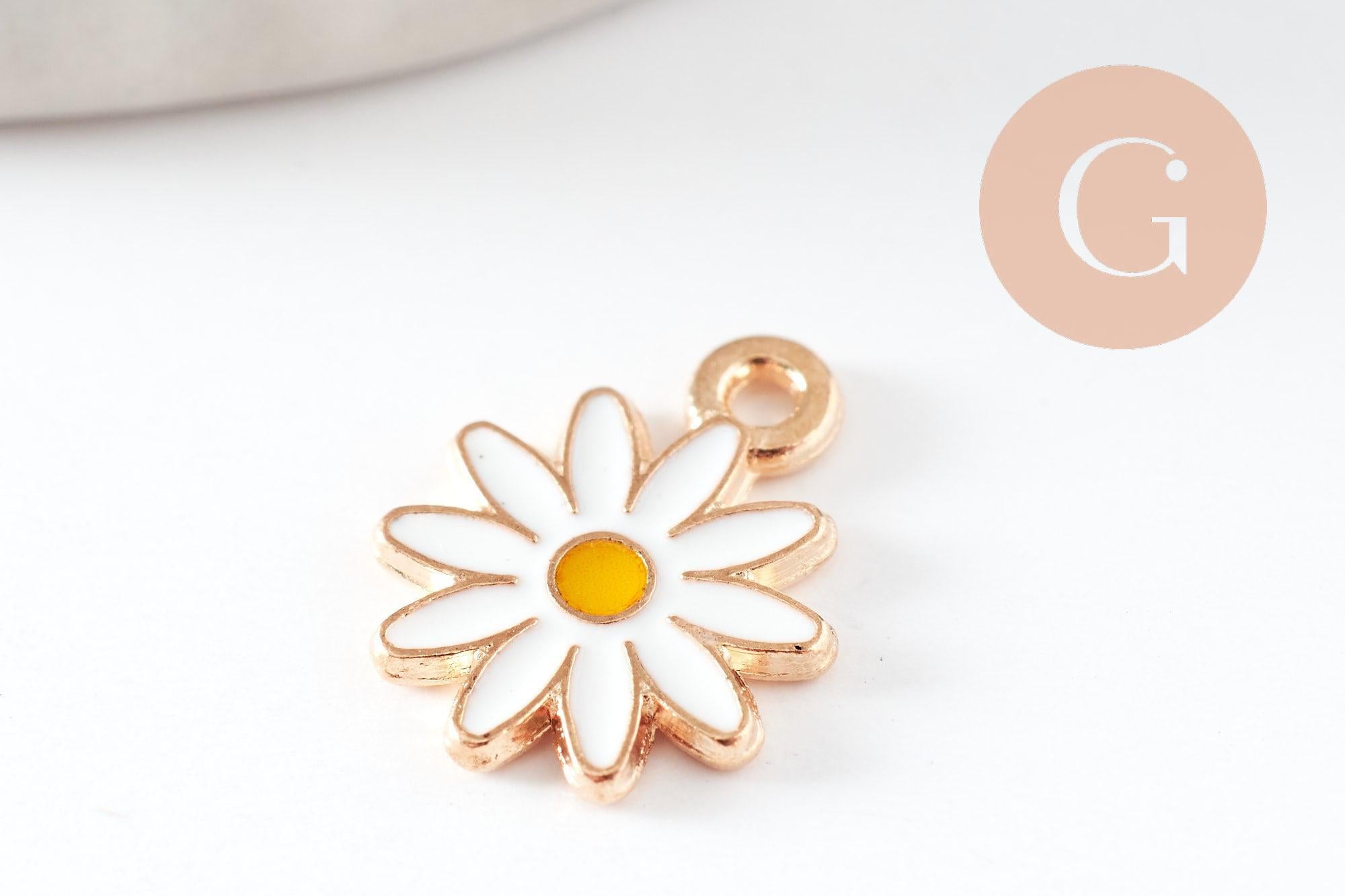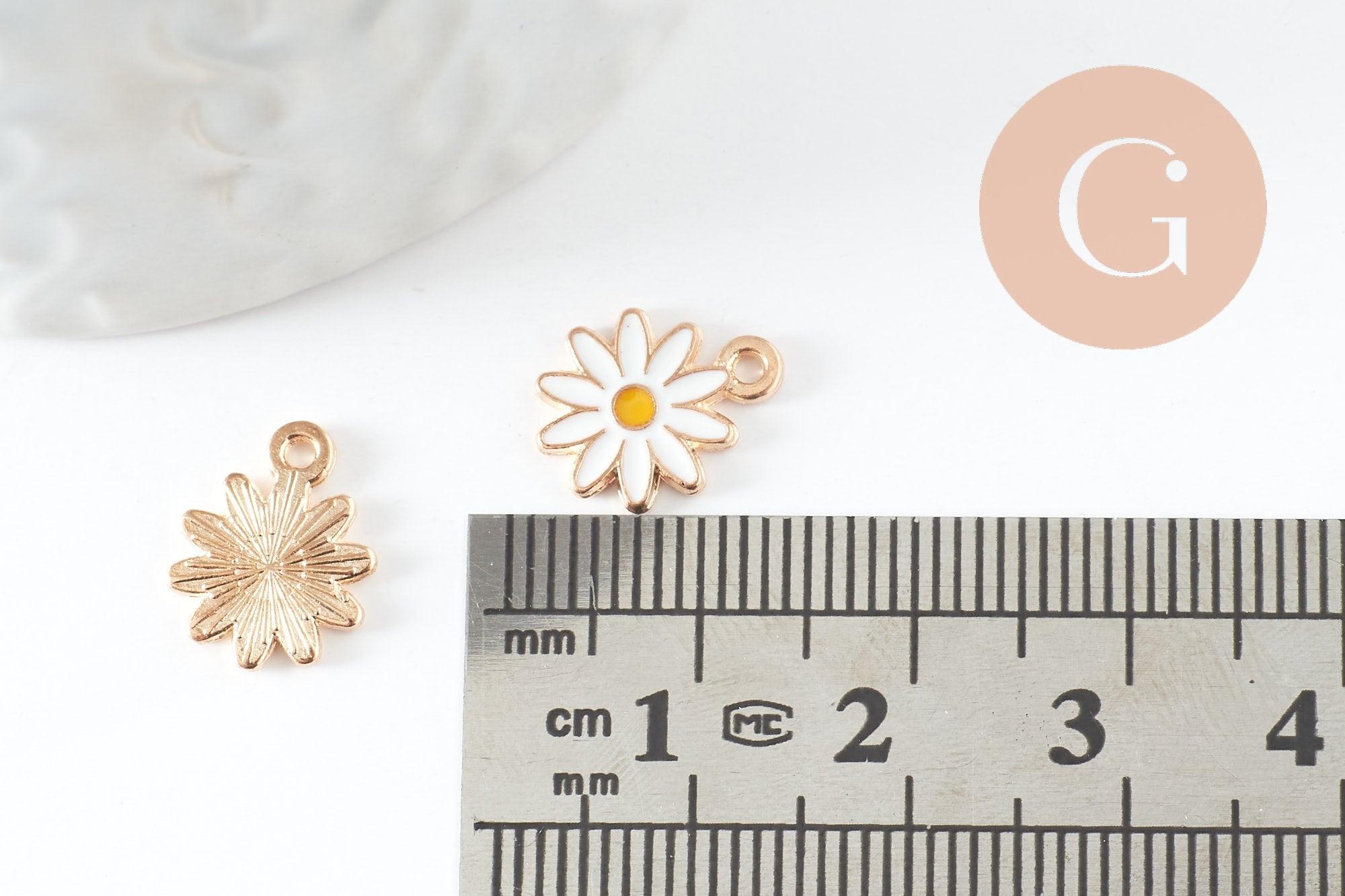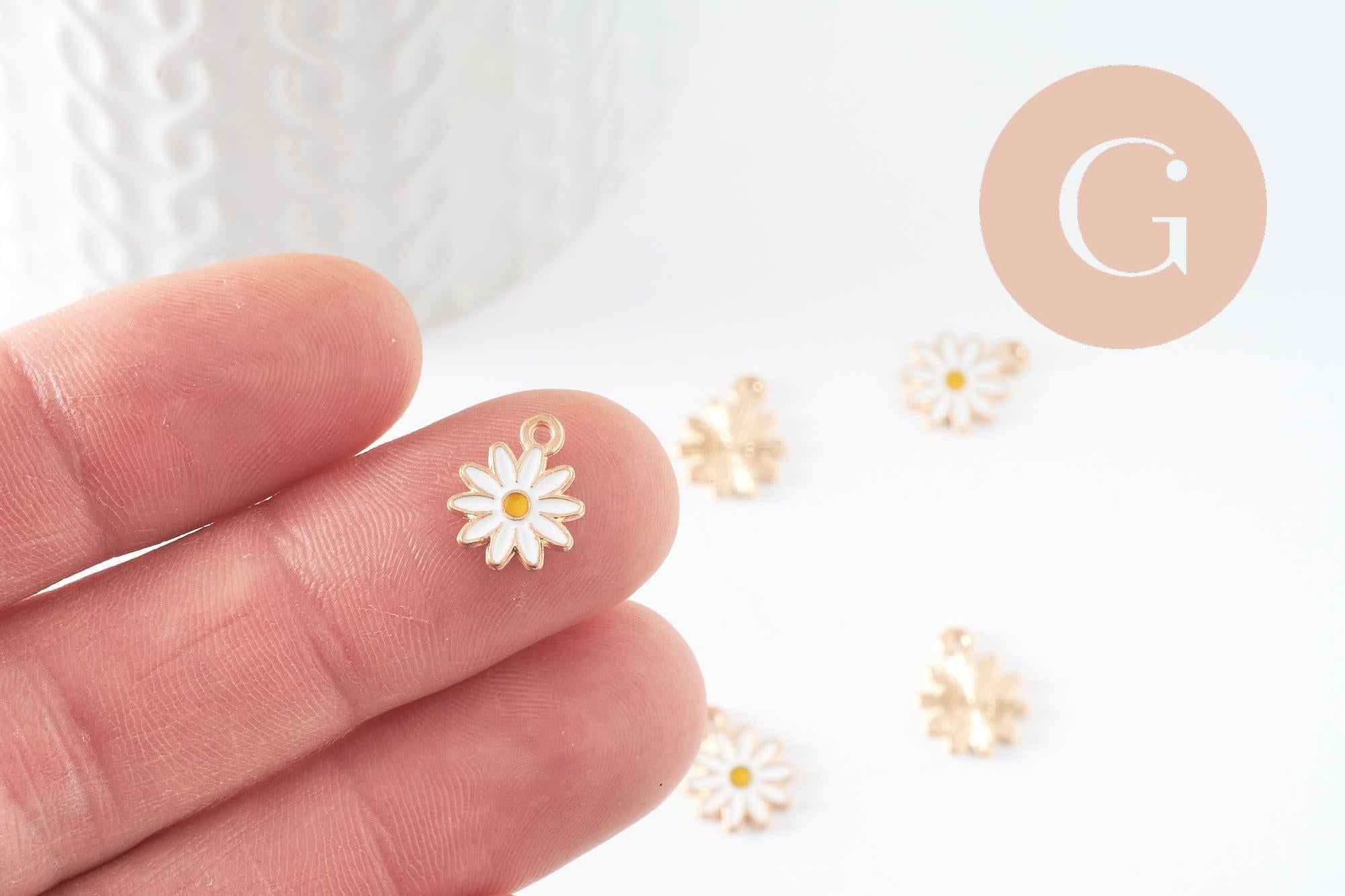 5 Marguerite Flowers pendants in gold zamac covered with white and yellow enamel. Findings for your necklaces, bracelets and necklaces to create your summer jewelry.
