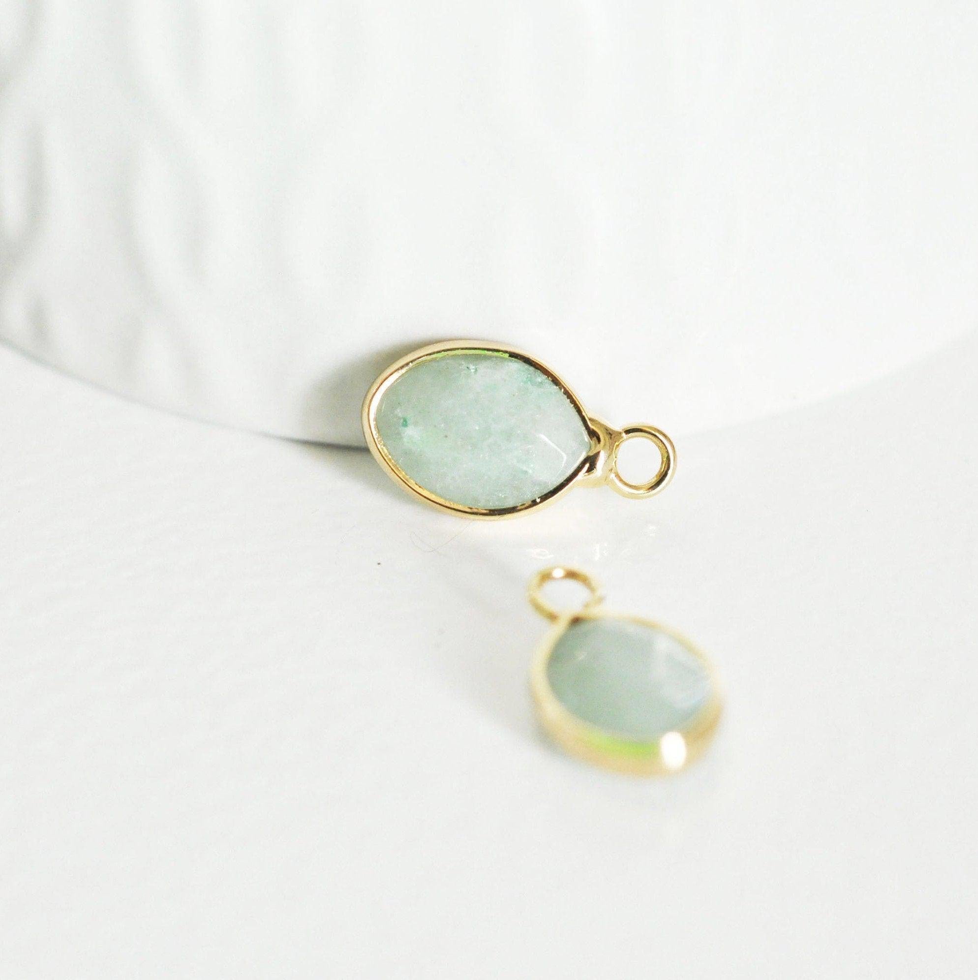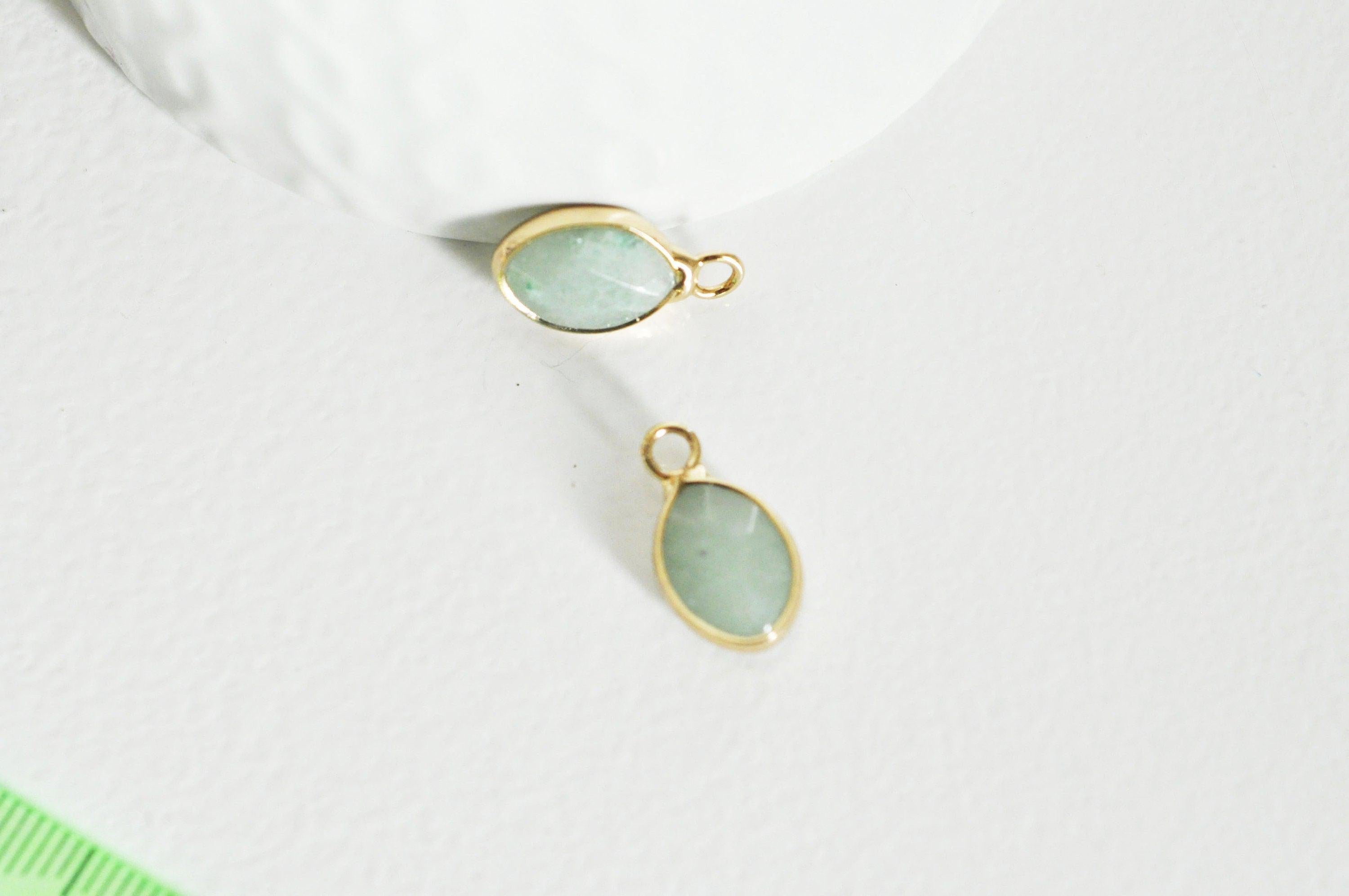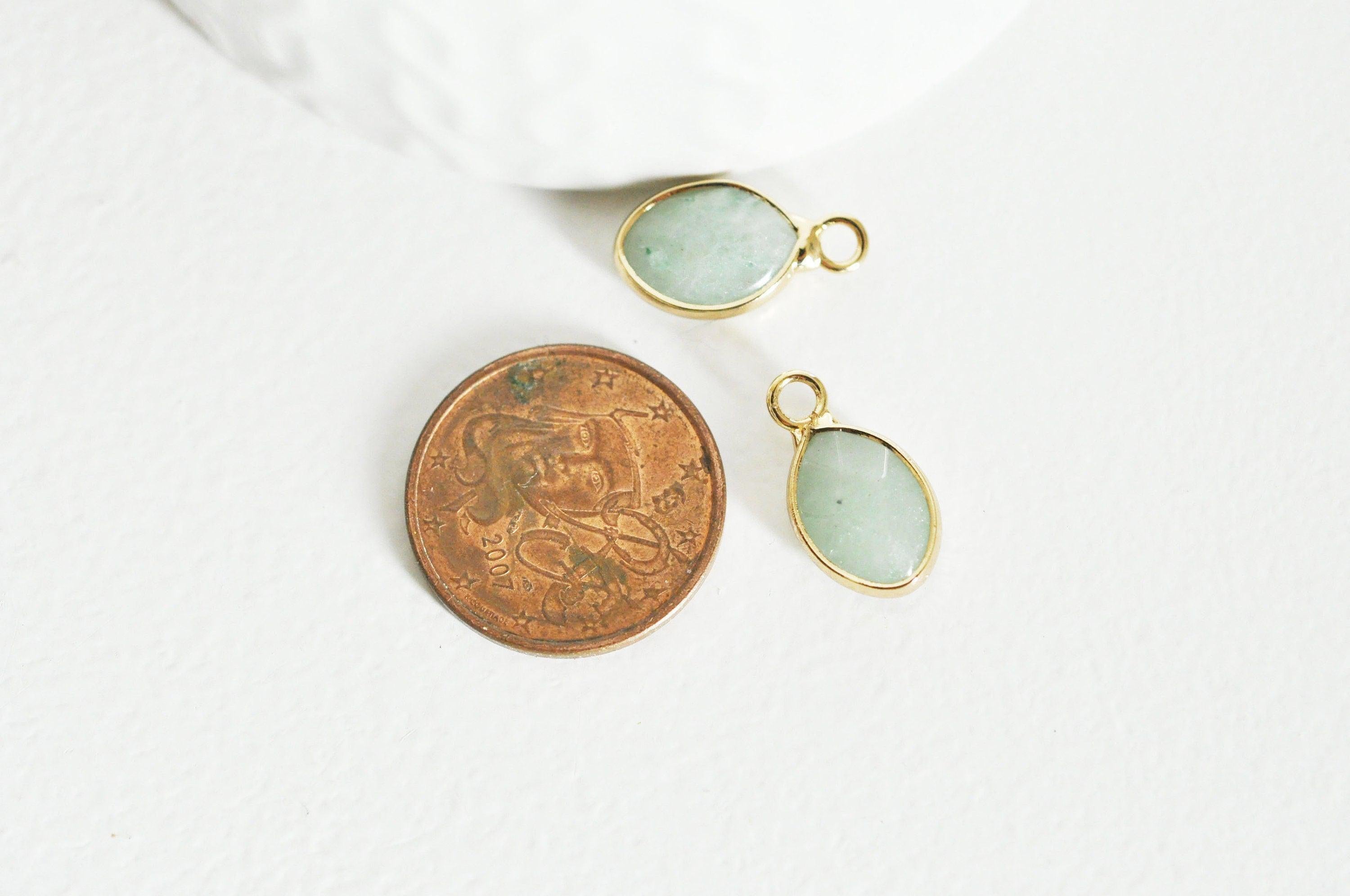 Fall in love with this faceted drop-shaped pendant made of natural green aventurine. Discreet and elegant, it is mounted on a gold-plated brass base that highlights the softness of this semi-precious stone.