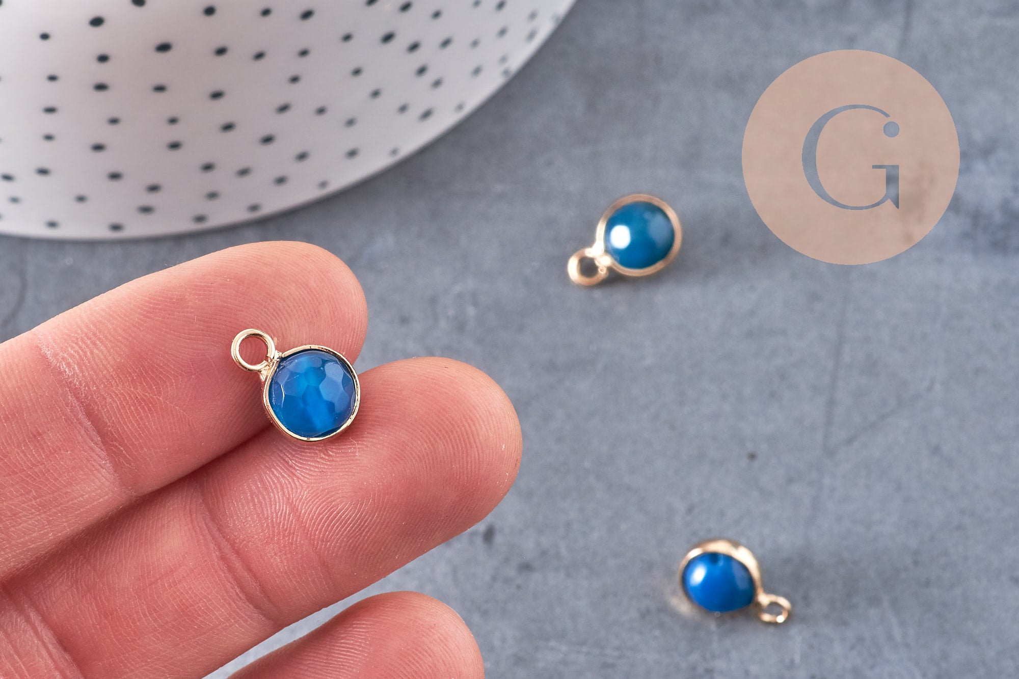 Faceted golden blue jade drop pendant, stone pendant, stone jewelry, stone pendant, natural blue jade, jade pendant, 13-16mm, set of 2
