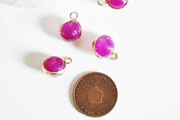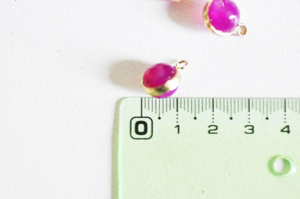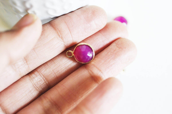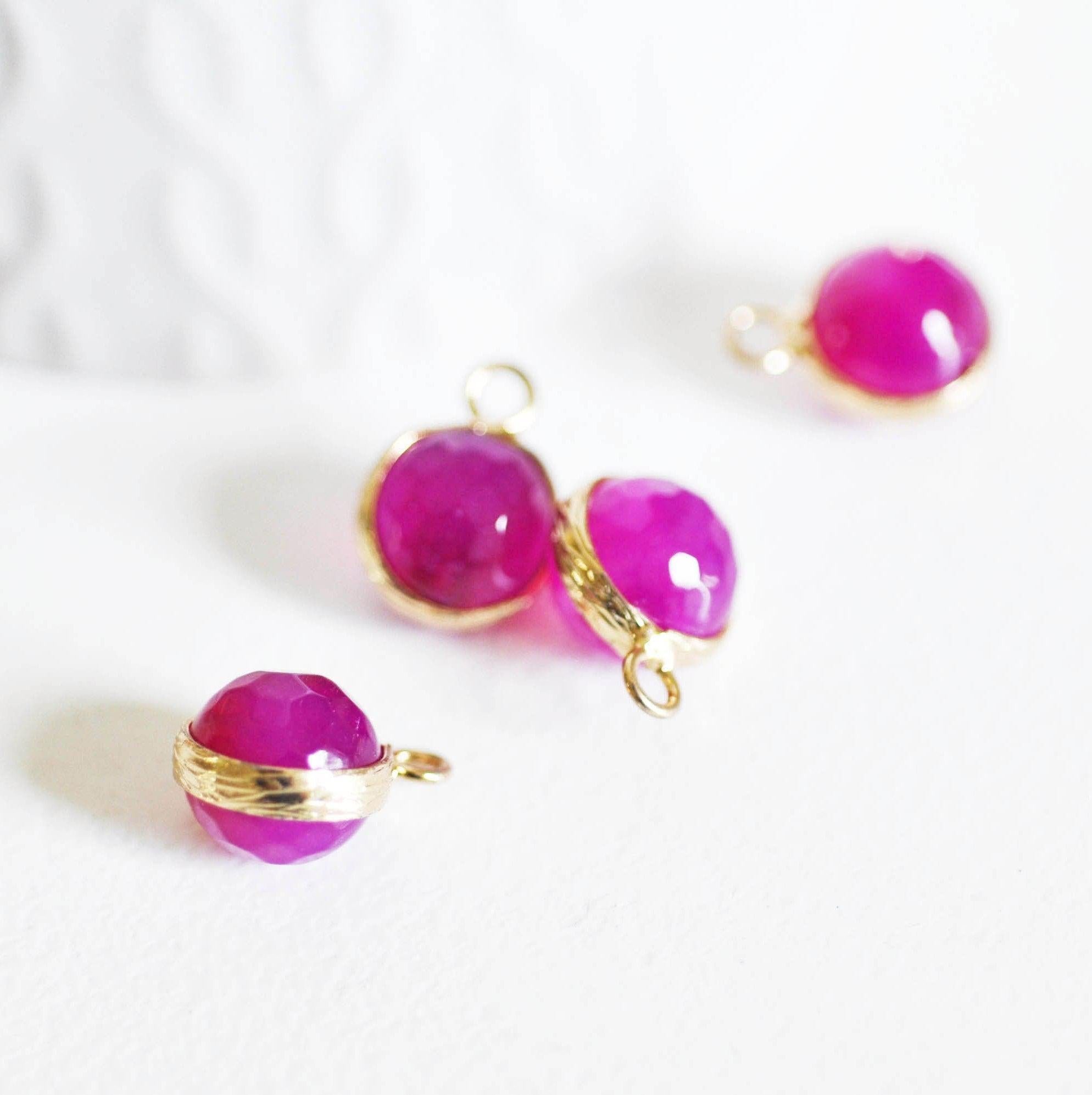 Fall for this very discreet little pendant in natural jade tinted in fuchsia pink with its golden iron support.