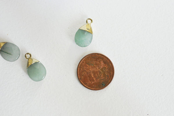 Fall for this small natural aventurine pendant with its golden drop-shaped support.