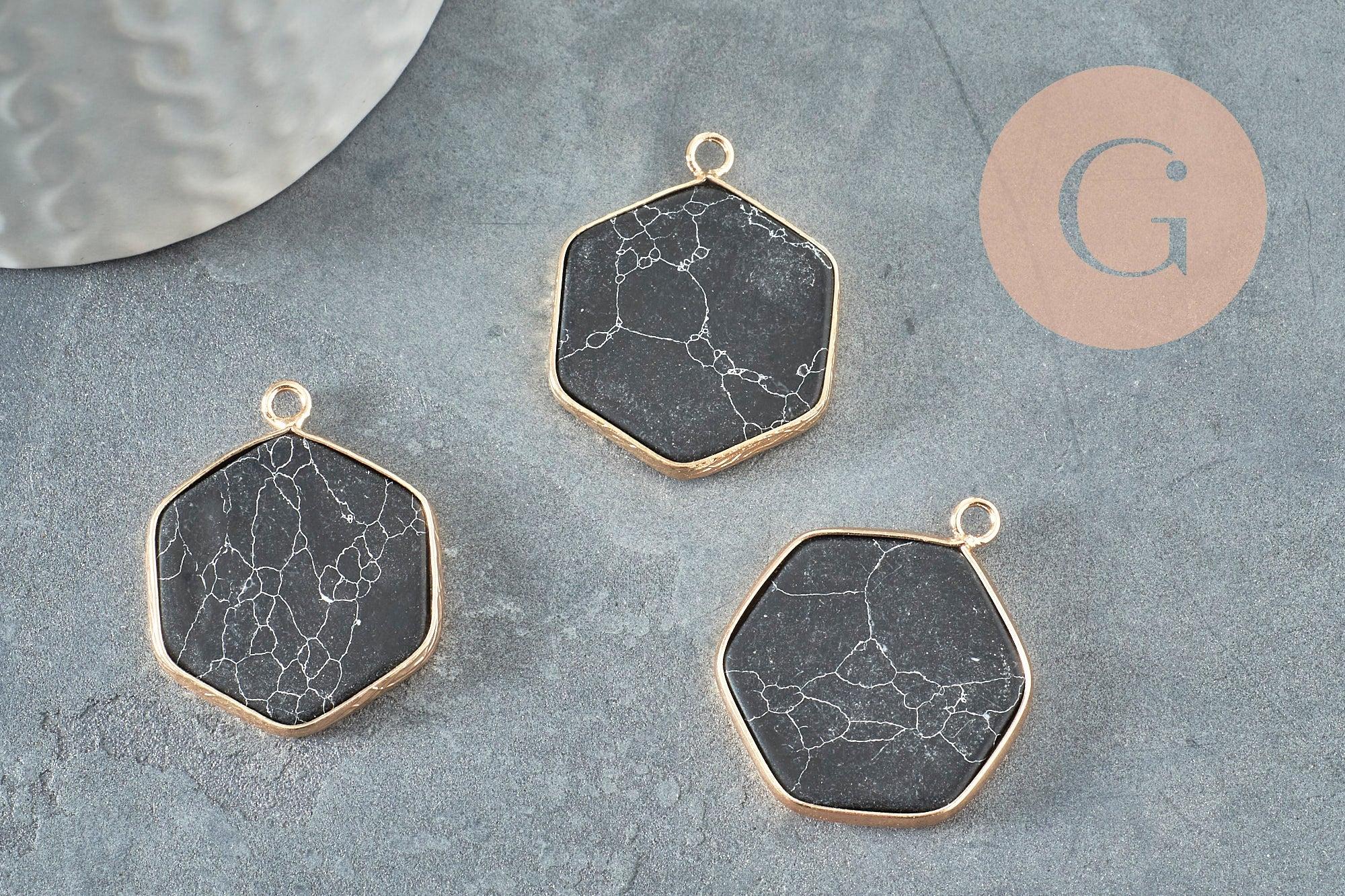 Marbled turquoise hexagon pendant, pendant for jewelry, stone pendant, synthetic stone, 30-31mm