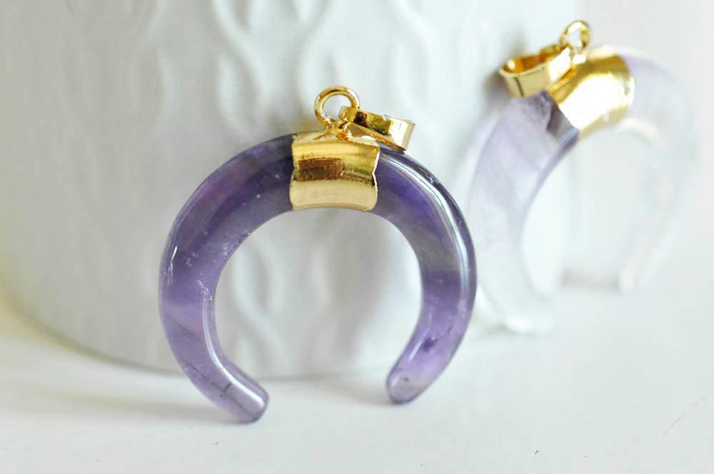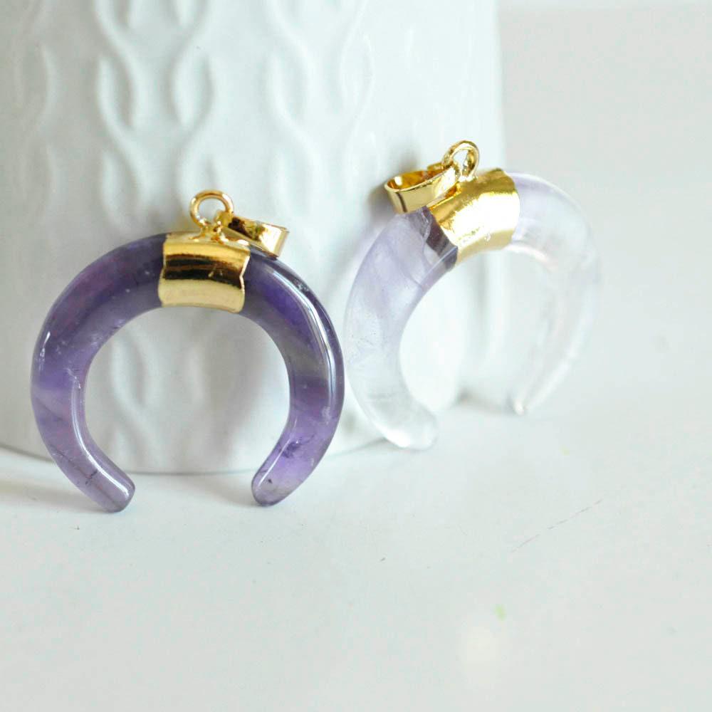 EP Amethyst Moon Pendant, jewelry creation Jewelry pendant, stone pendant, natural stone, natural amethyst, 32mm