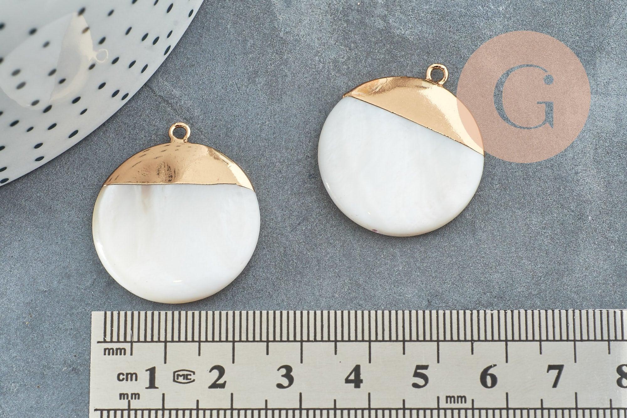 Golden natural white mother-of-pearl pendant, creative supply, round mother-of-pearl pendant, white shell, jewelry creation, 28.5mm, both