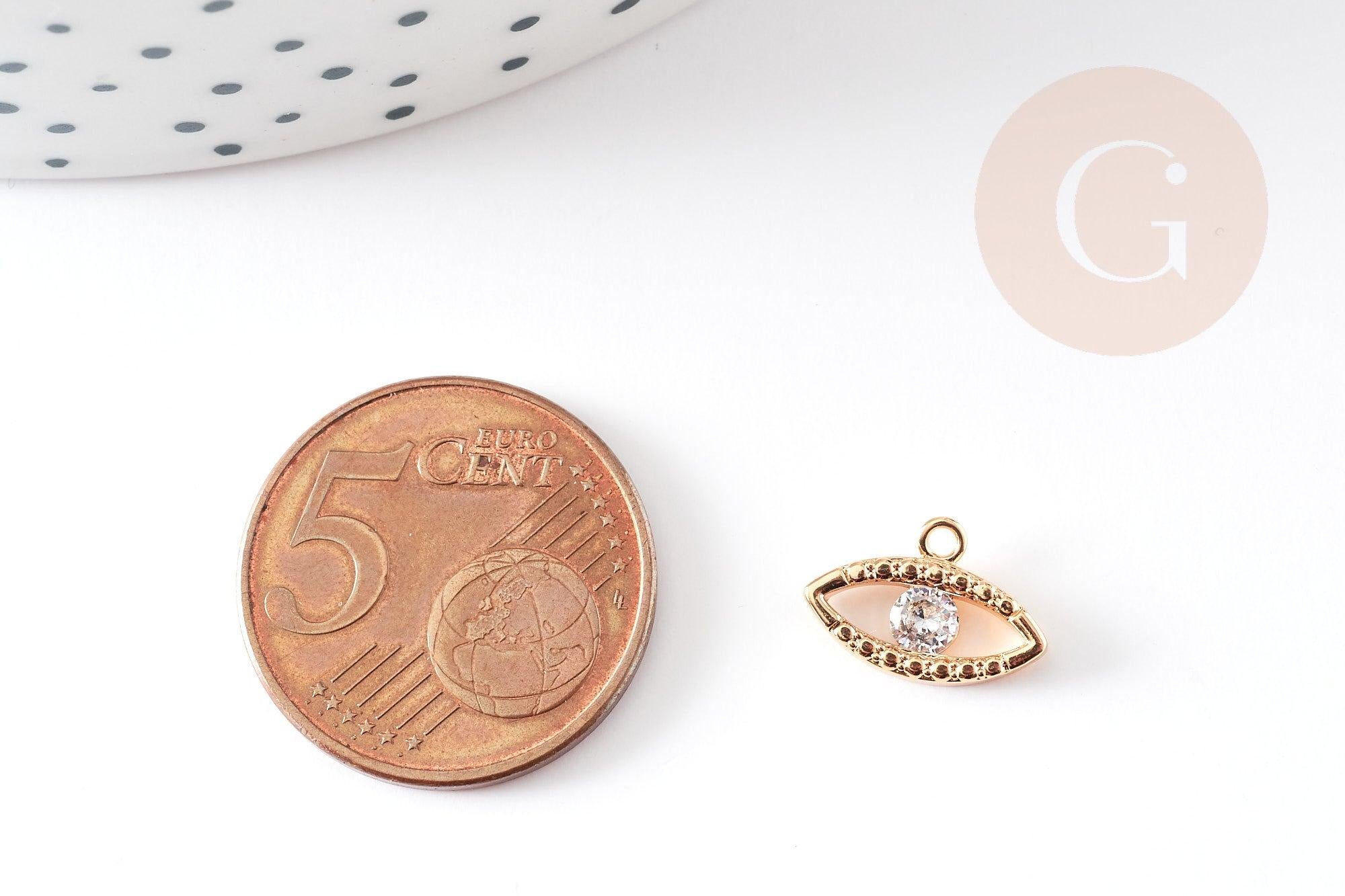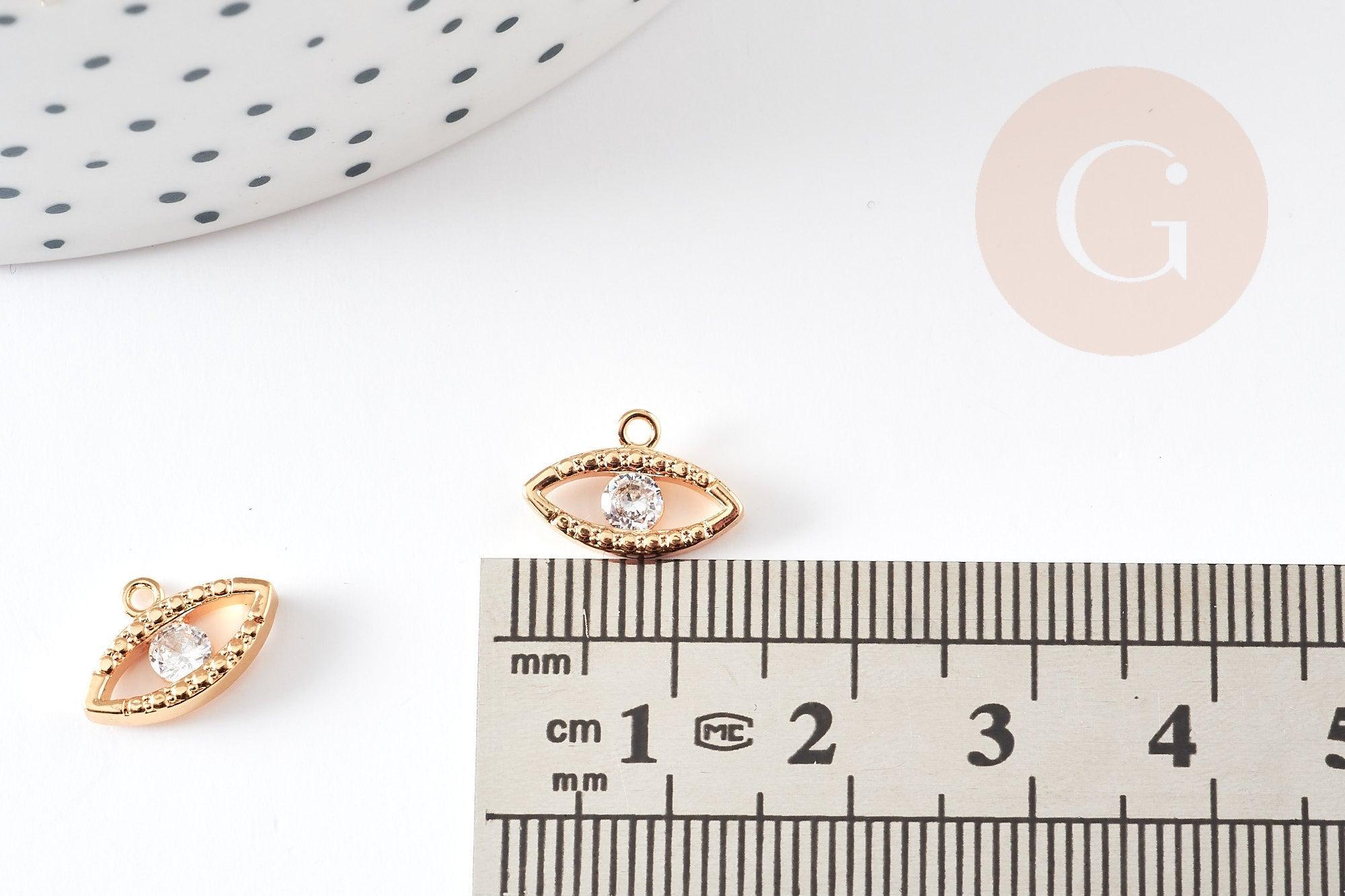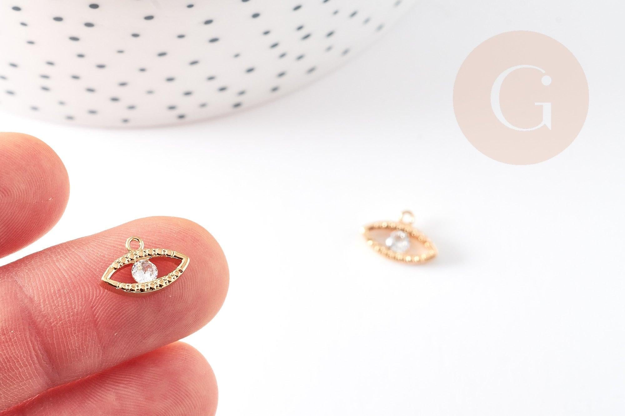 Golden eye pendant with zircon crystal, golden pendant, lucky charm, golden brass, star pendant, jewelry creation, 10.5mm, x2 G1616