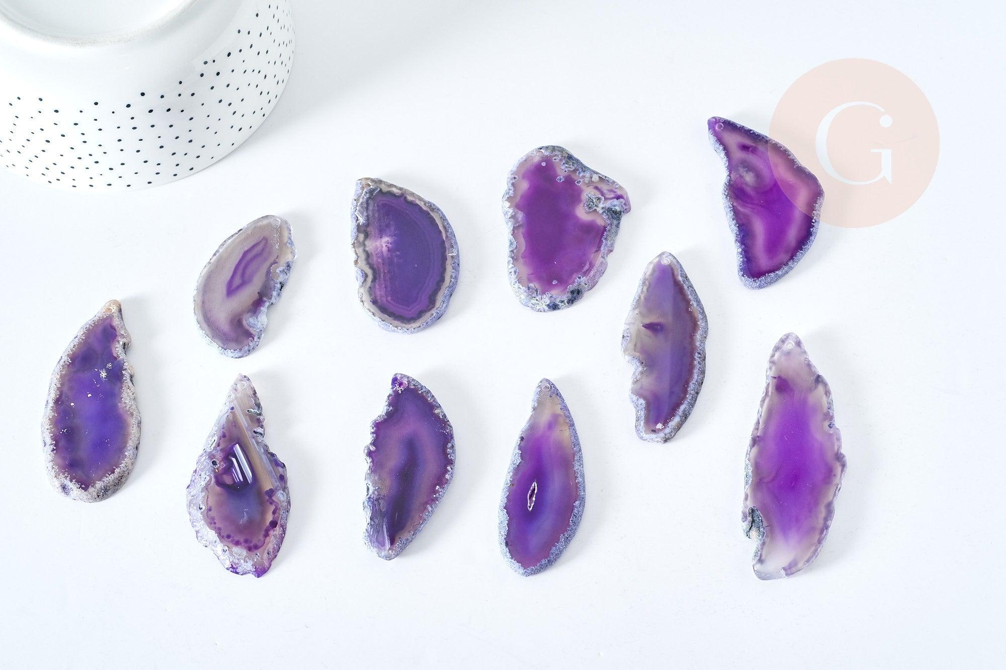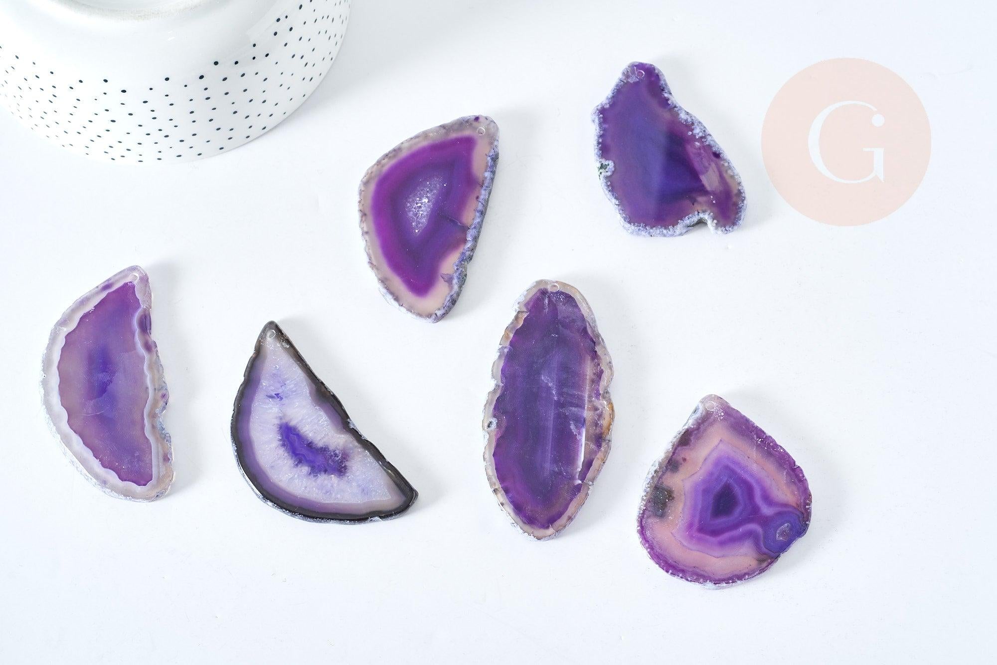 The purple hue of this natural agate is both refined and calming, evoking harmony and tranquility. With a size ranging from 50 to 110 mm, this pendant is perfect to be used as a centerpiece for an original necklace or jewelry creation.