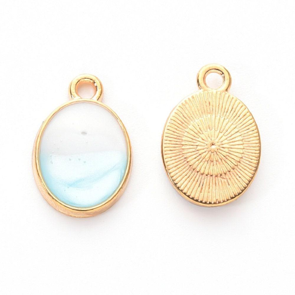 This adorable pendant is made of gold zamac, covered with transparent blue resin.