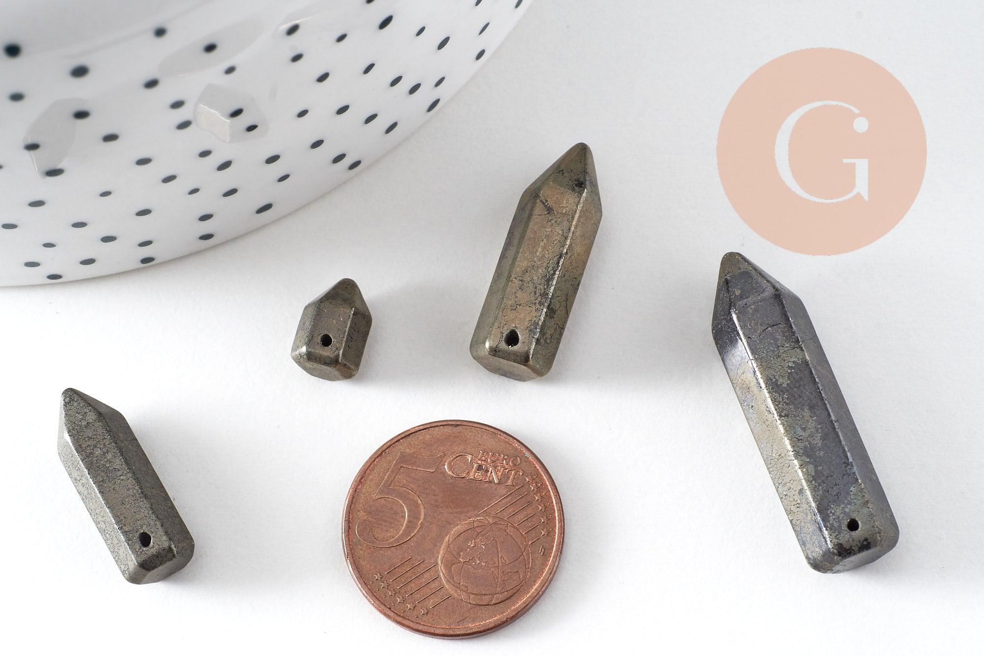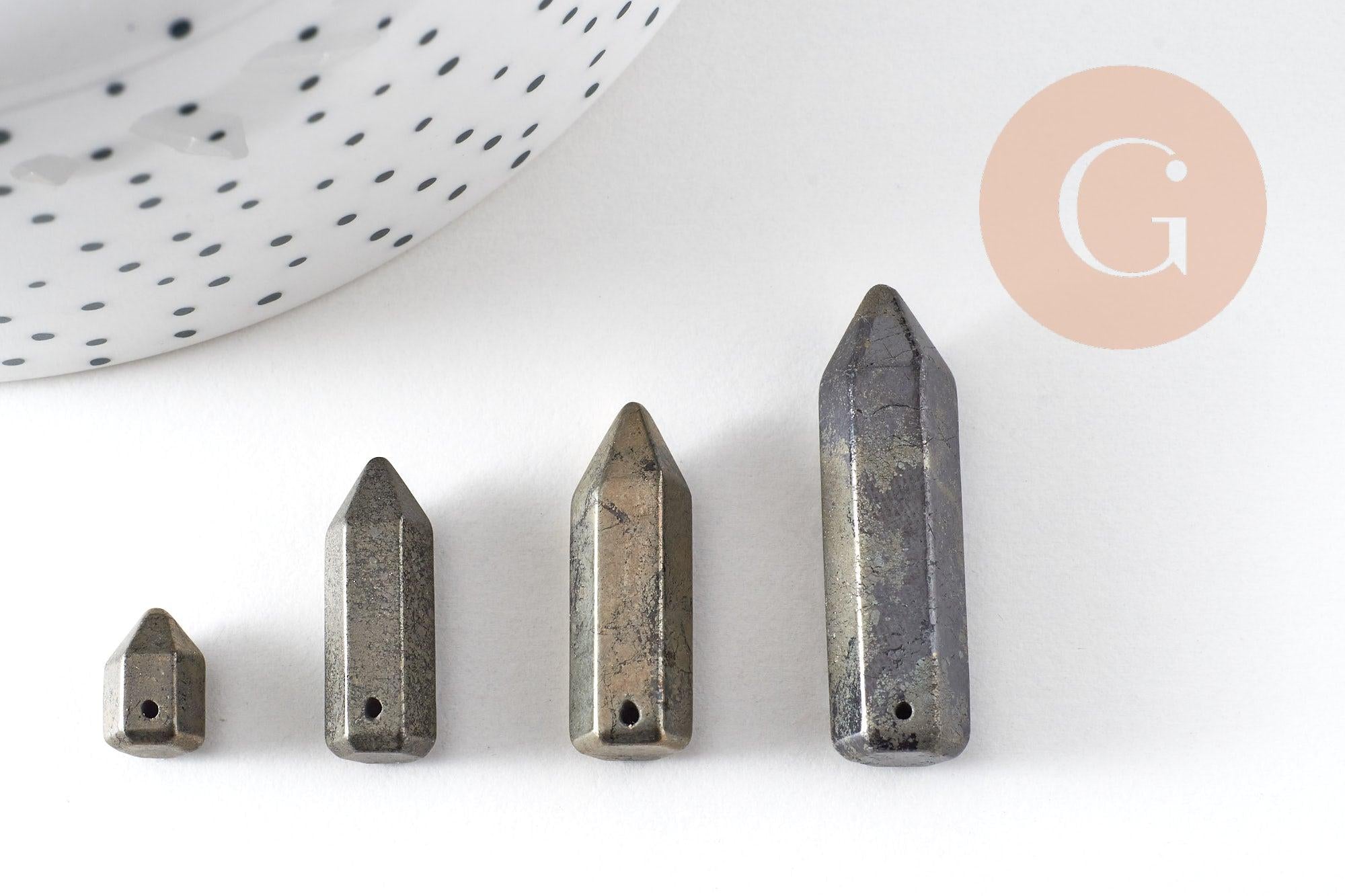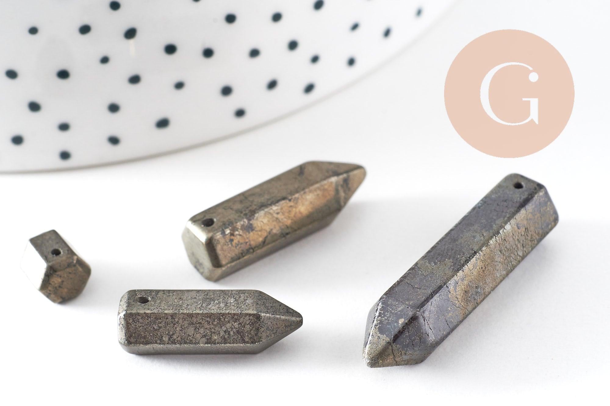 Fall for this pendant in polished natural gray pyrite, cut into a point. You can create your necklaces and necklaces as well as your earrings for natural stone jewelry
