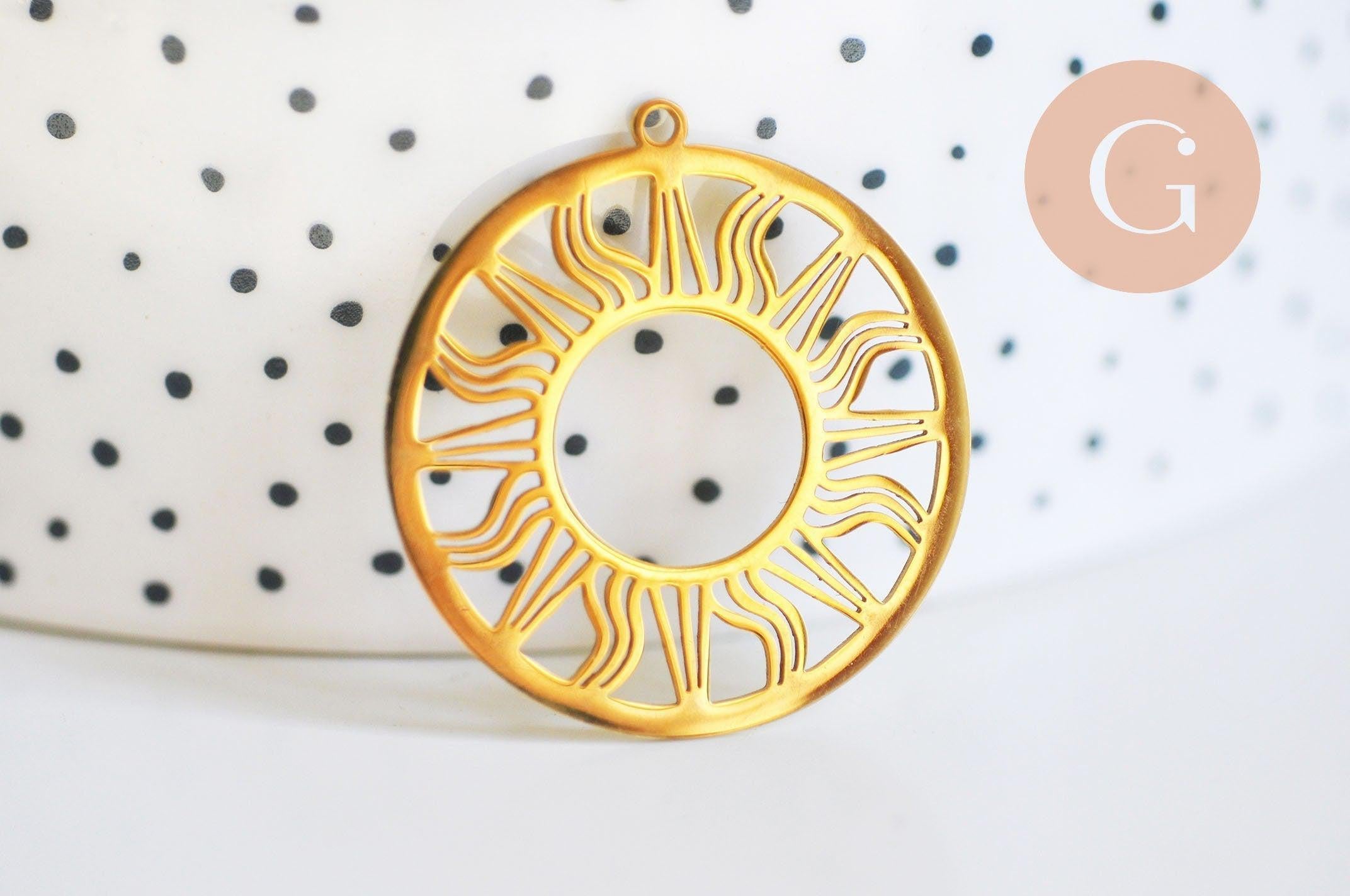 A magnificent sun pendant in gold-plated stainless steel , in the shape of a round filigree medal , to use in all your earring and necklace creations