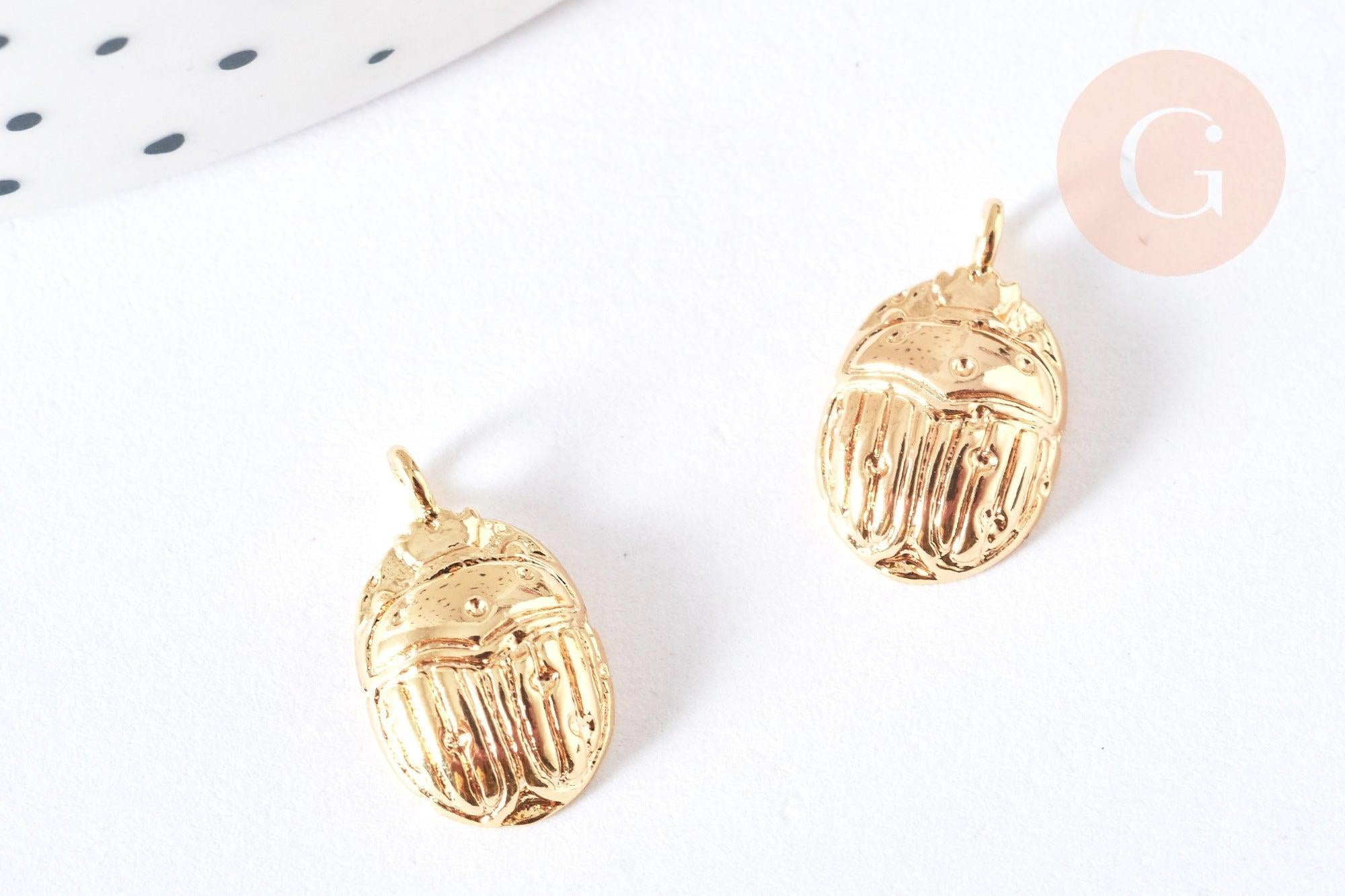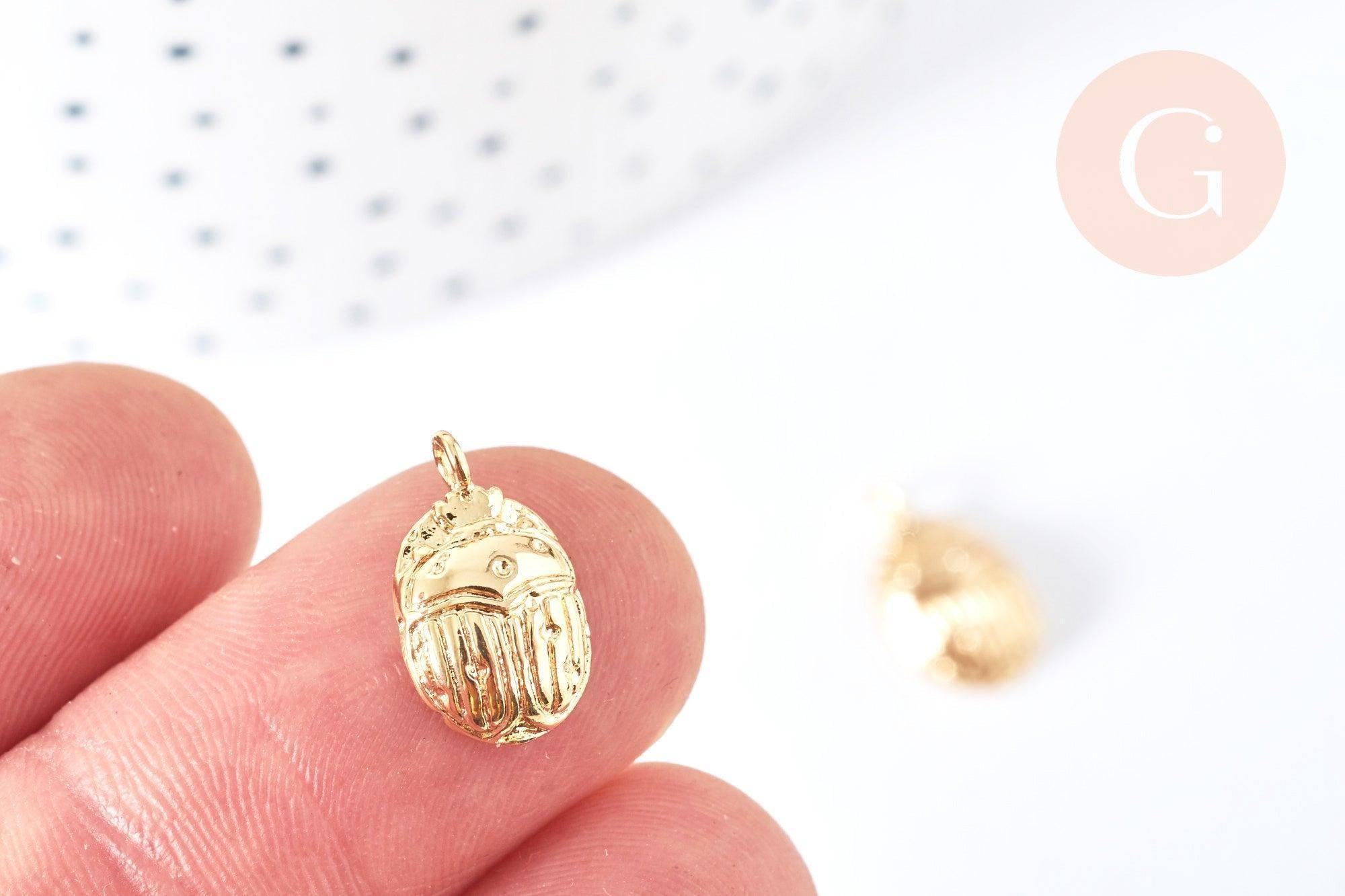 18K gold-plated brass scarab pendant -14.5mm, nickel-free, animal insect jewelry creation, x1 G7124