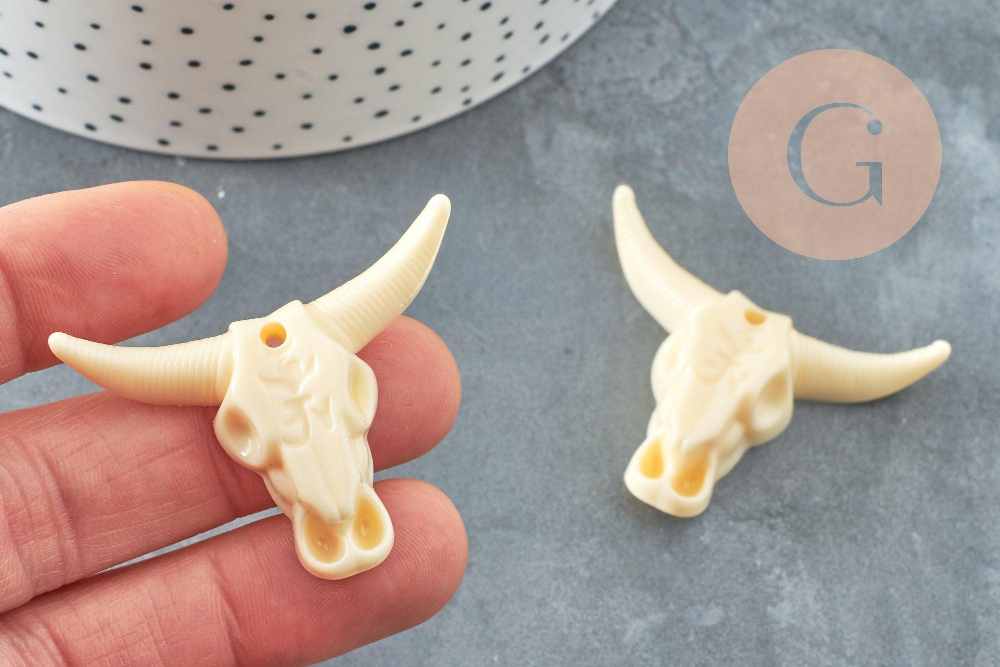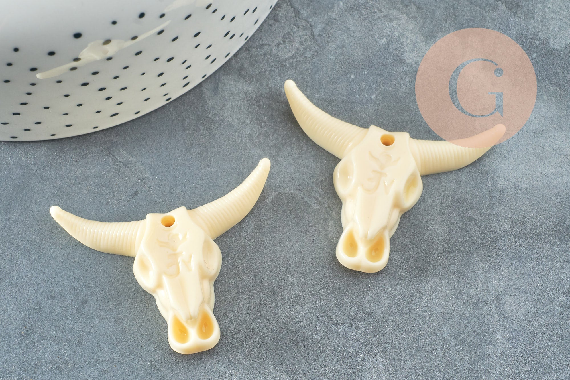 white resin cow head pendant, imitation coral pendant for resin jewelry making, 2 beads, 46.5mm