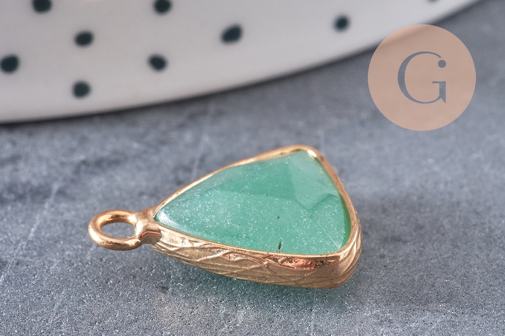 Green aventurine triangle pendant, stone pendant, gold support, natural stone jewelry creation, natural stone, 19mm