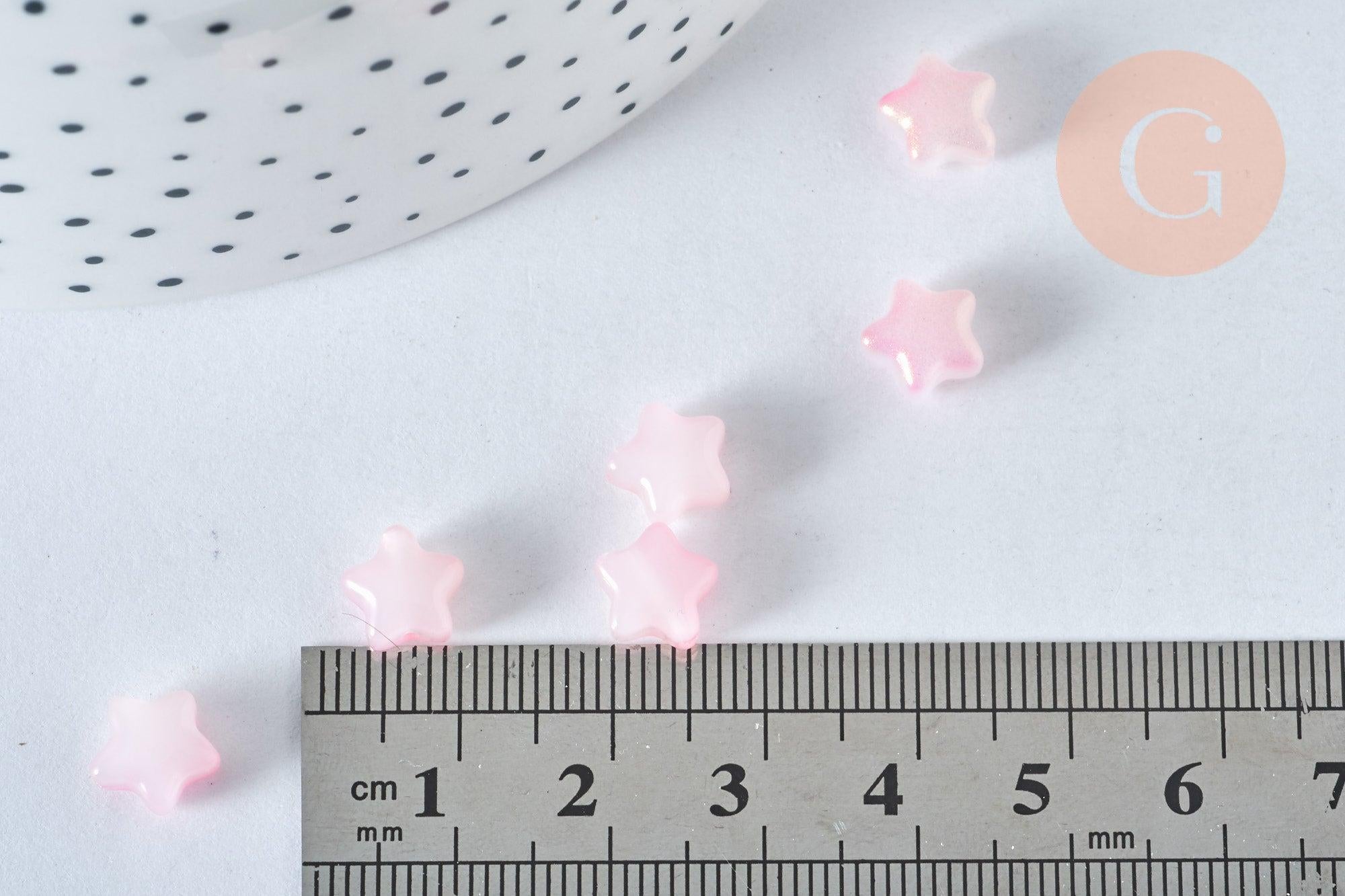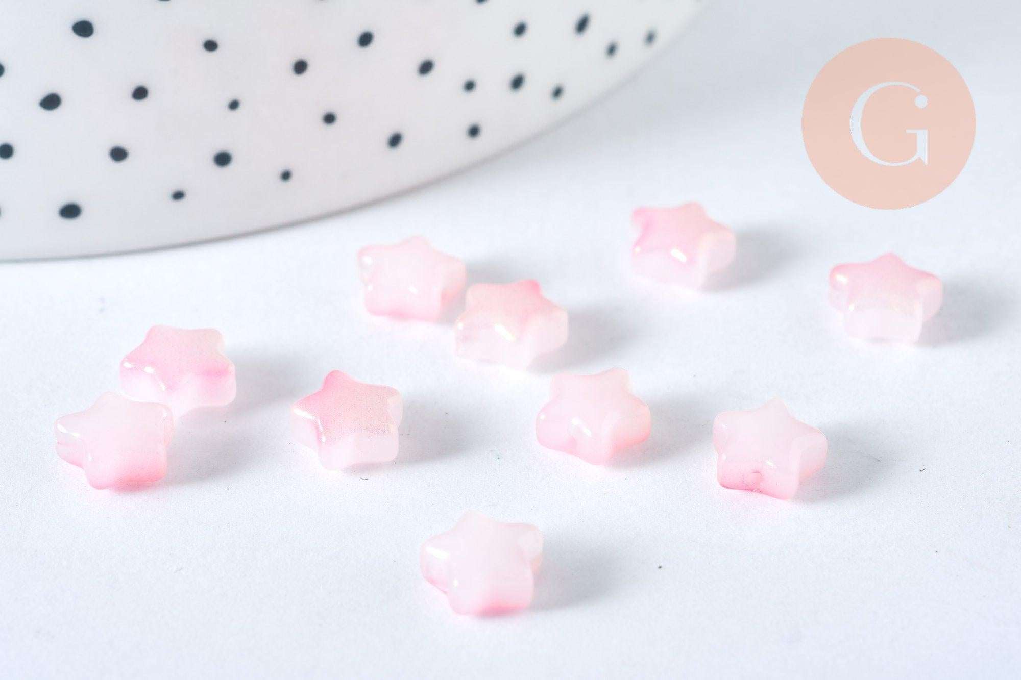 An adorable star-shaped bead in milky pink glass decorated with glitter powder, ideal glass beads for creating DIY jewelry , 8mm