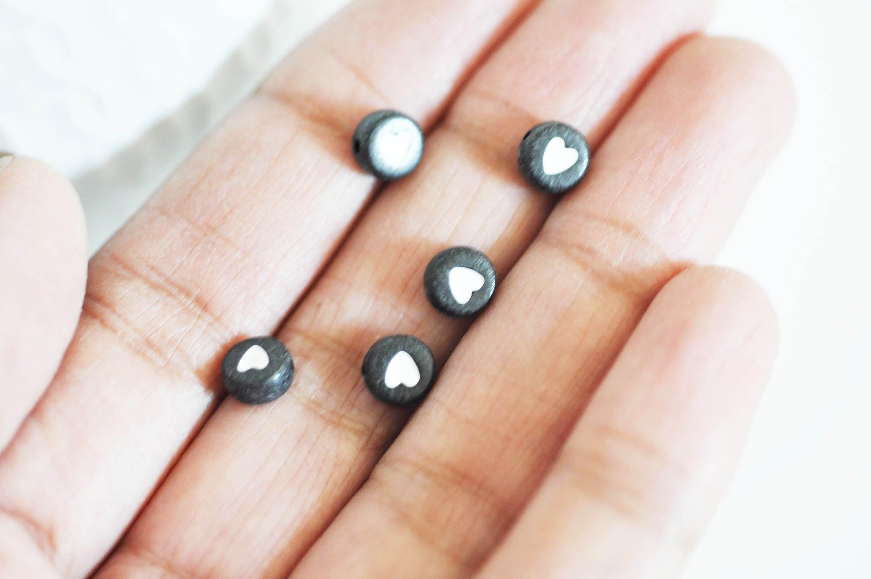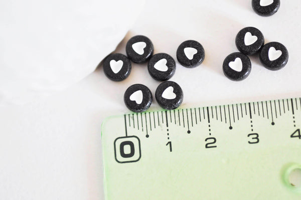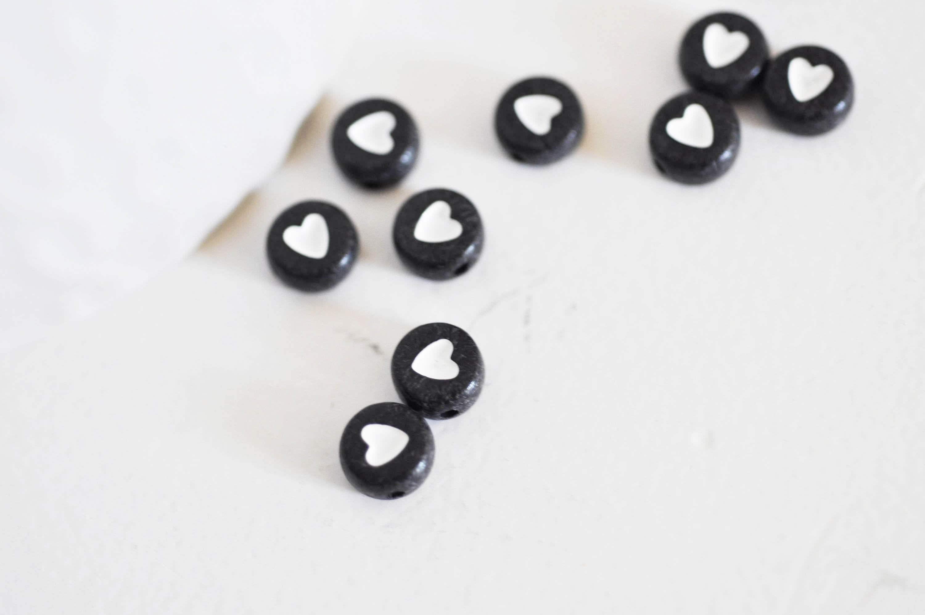 round pearl white heart black plastic, plastic pearl, round letter pearl, jewelry creation, lot of 10 grams