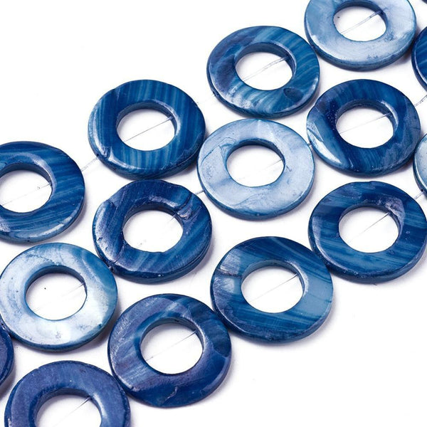 Perle ronde nacre bleue naturelle 24mm, perle disque coquillage bleu, coquillage bleu, fil de 36 cm x1 (G5846)
