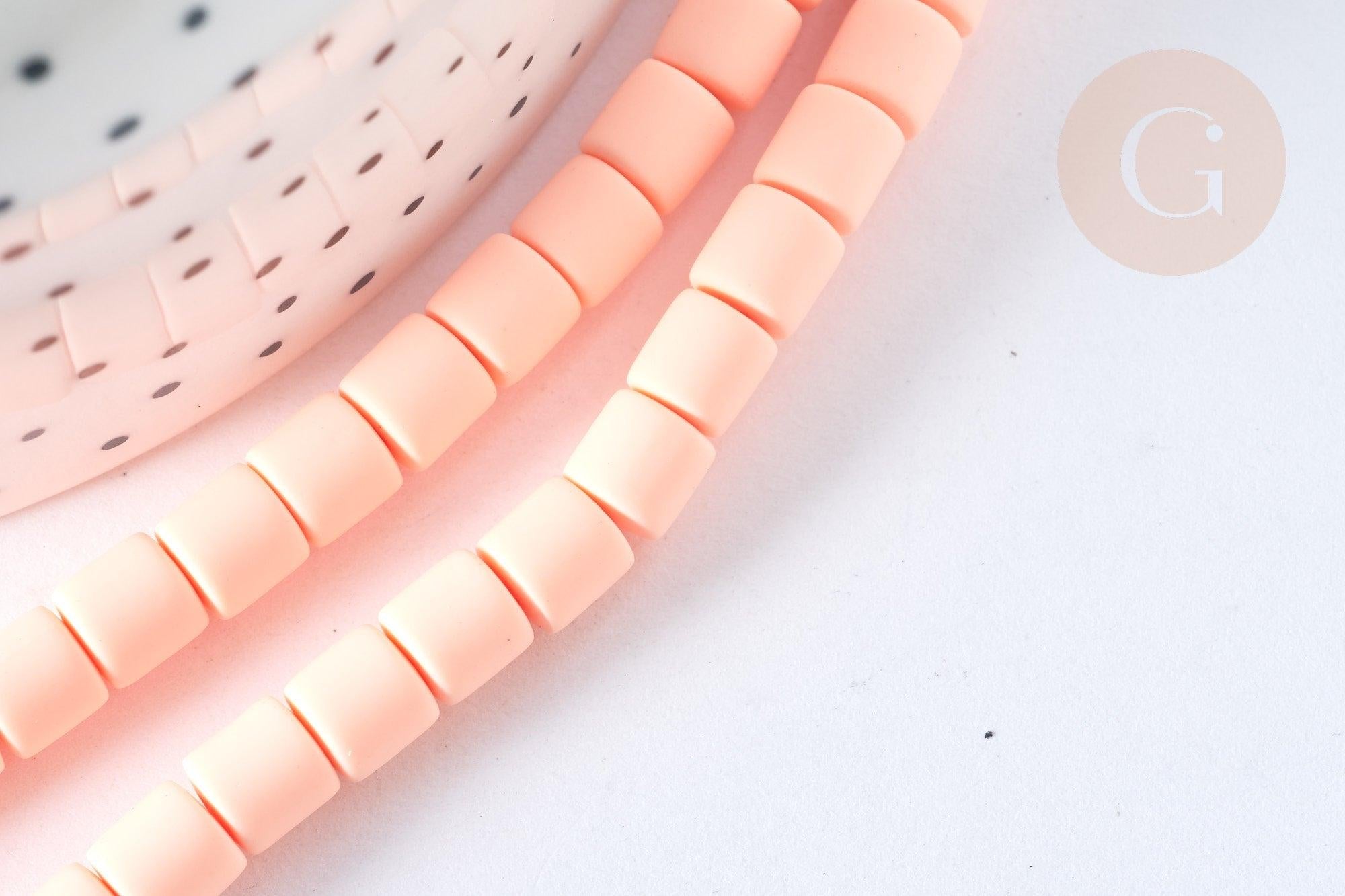 These light salmon pink polymer tube beads are ideal for making costume jewelry .
