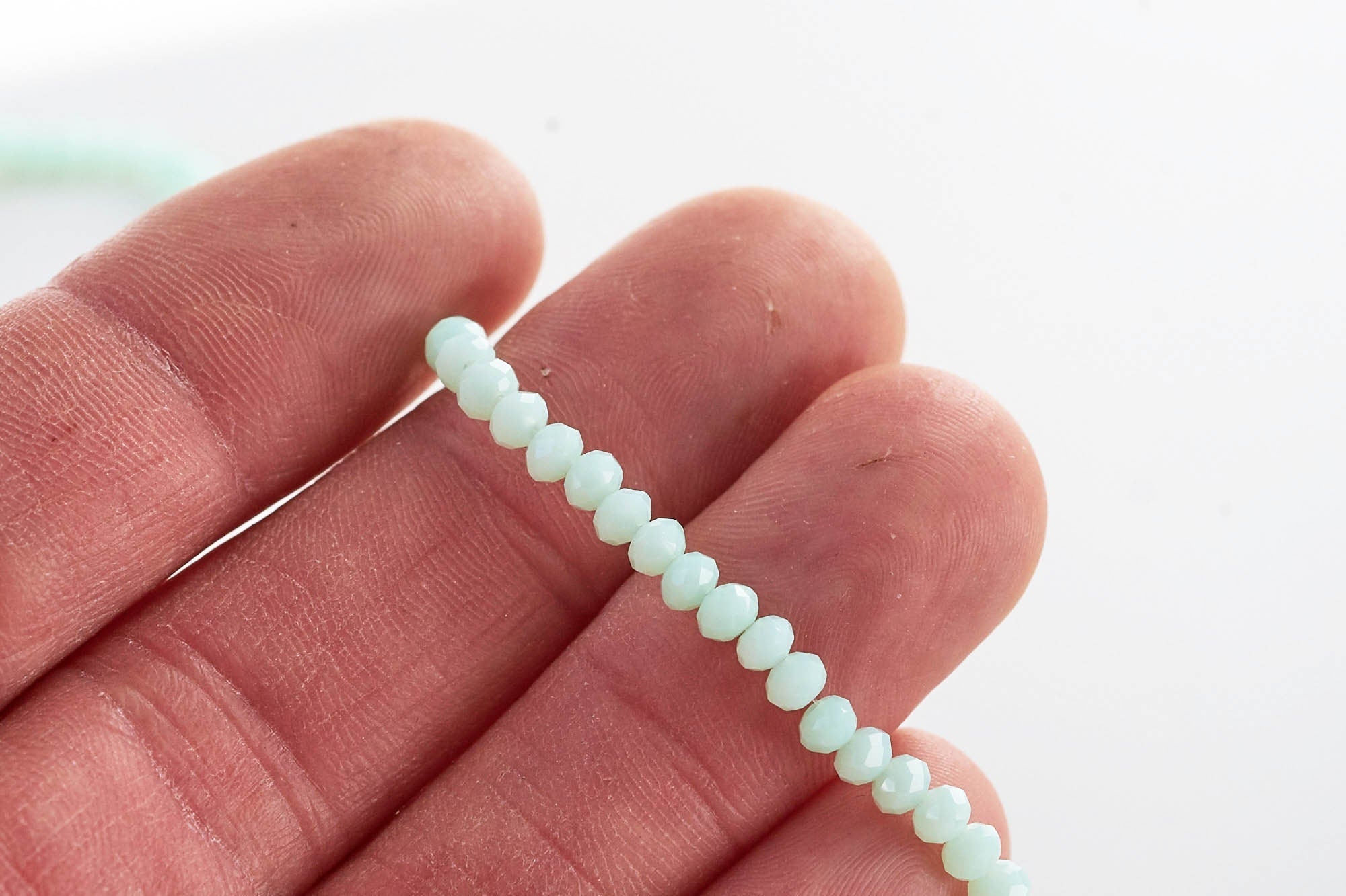 A strand of approximately 150 faceted green crystal bicone beads, ideal for making all your jewelry.