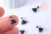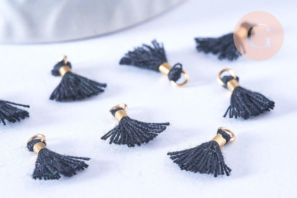 Pompon noir polyestère support doré,décoration pompon, pompon boucles, 10-15mm, x10 G5566