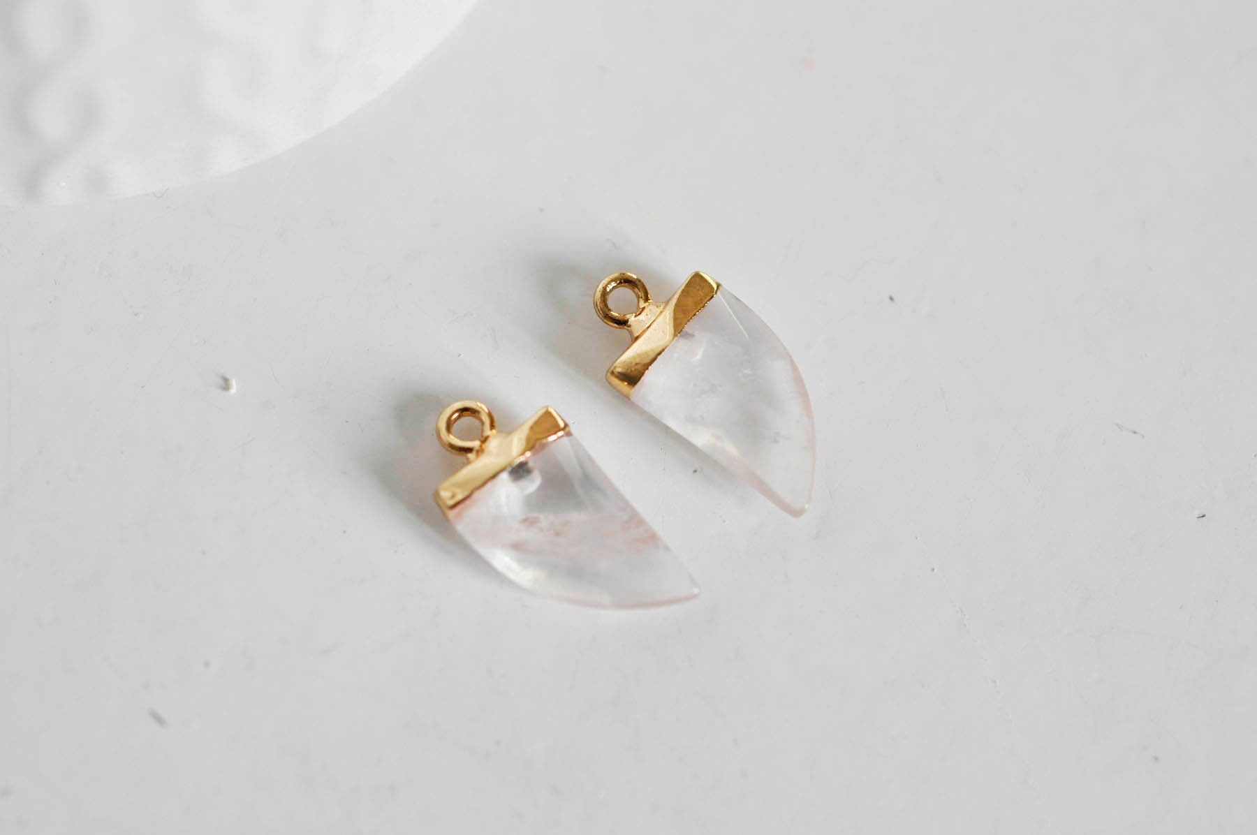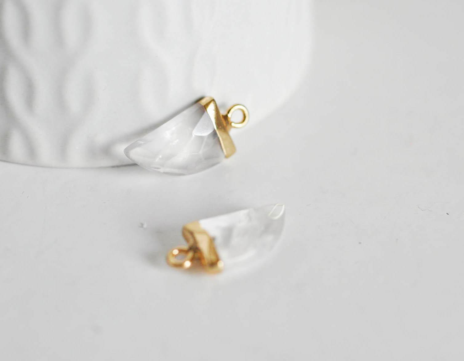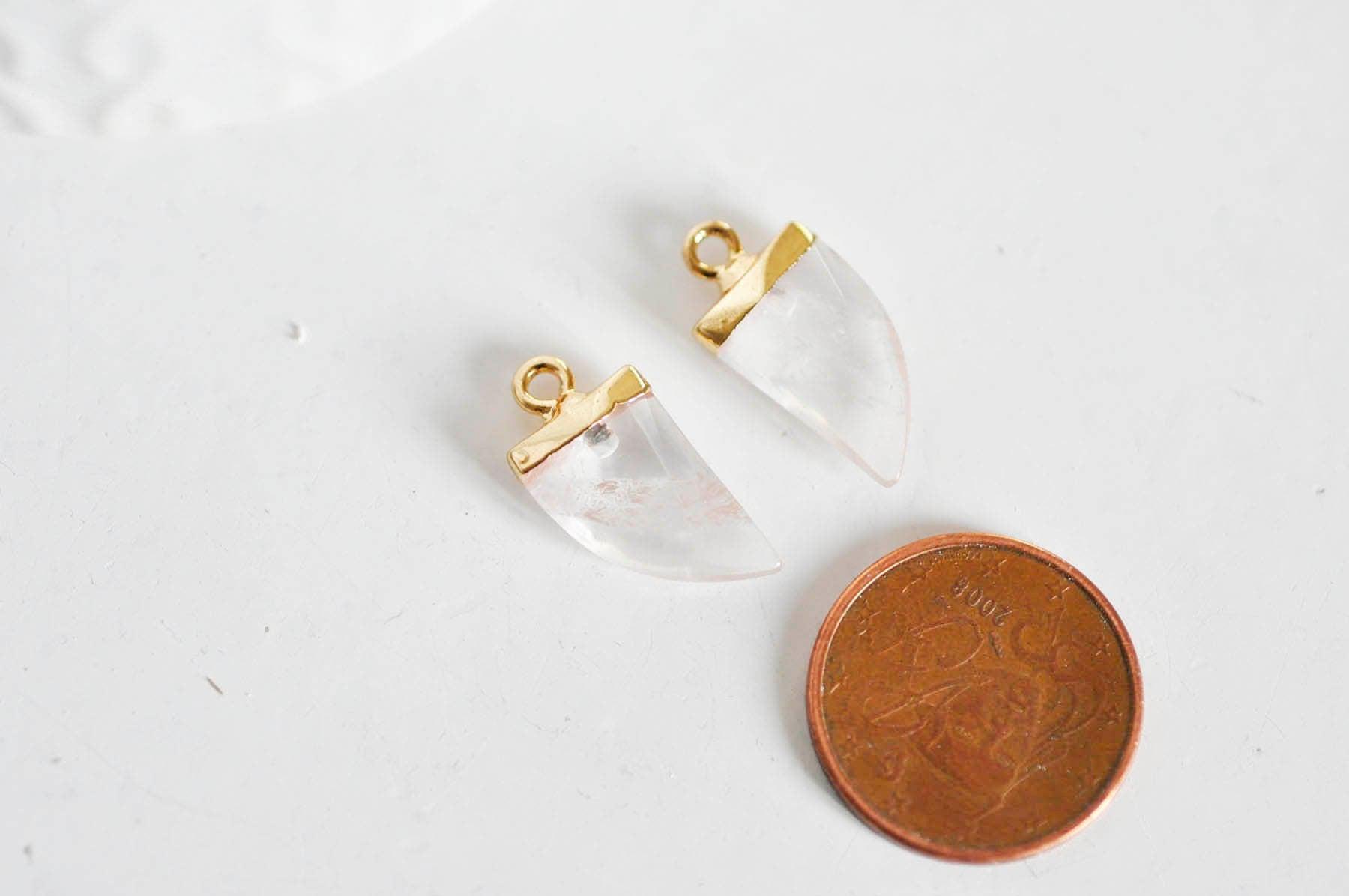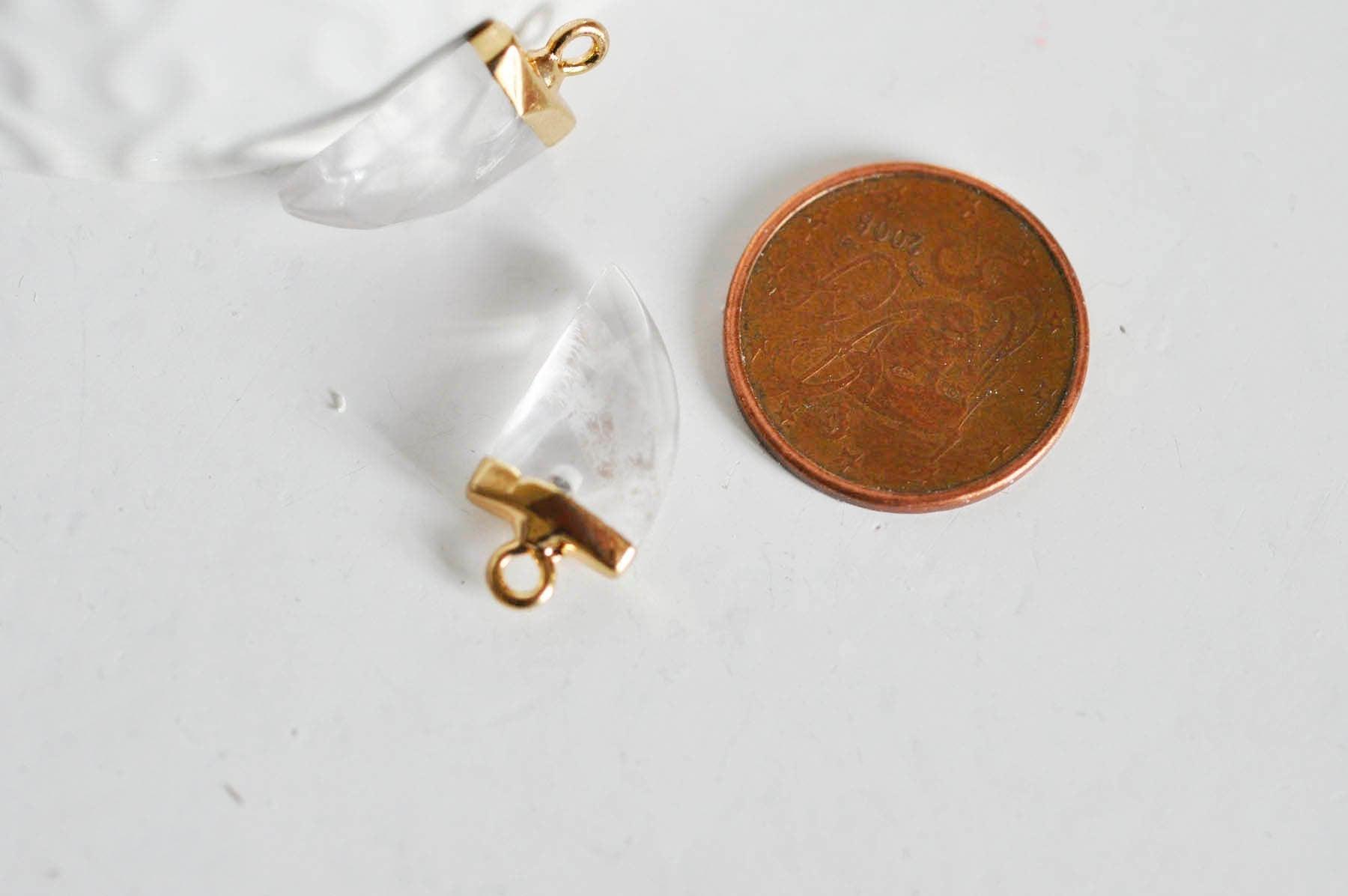 Rock crystal horn pendant, creative supplies, jewelry pendant, stone pendant, natural transparent quartz, quartz pendant, 21mm Fall for this small transparent quartz pendant with its golden support. You can create magnificent necklaces, earrings, collars and bracelets using this very trendy...