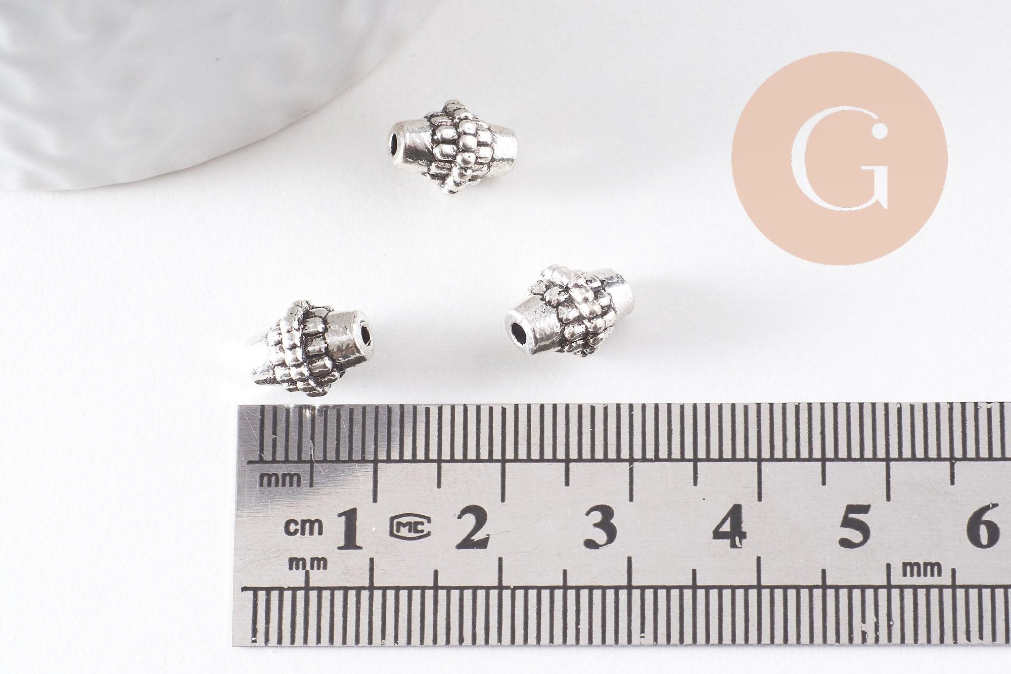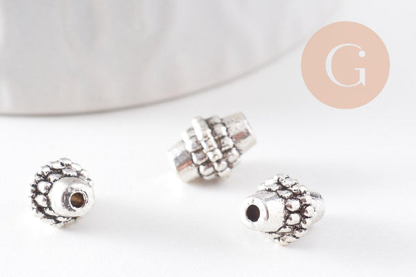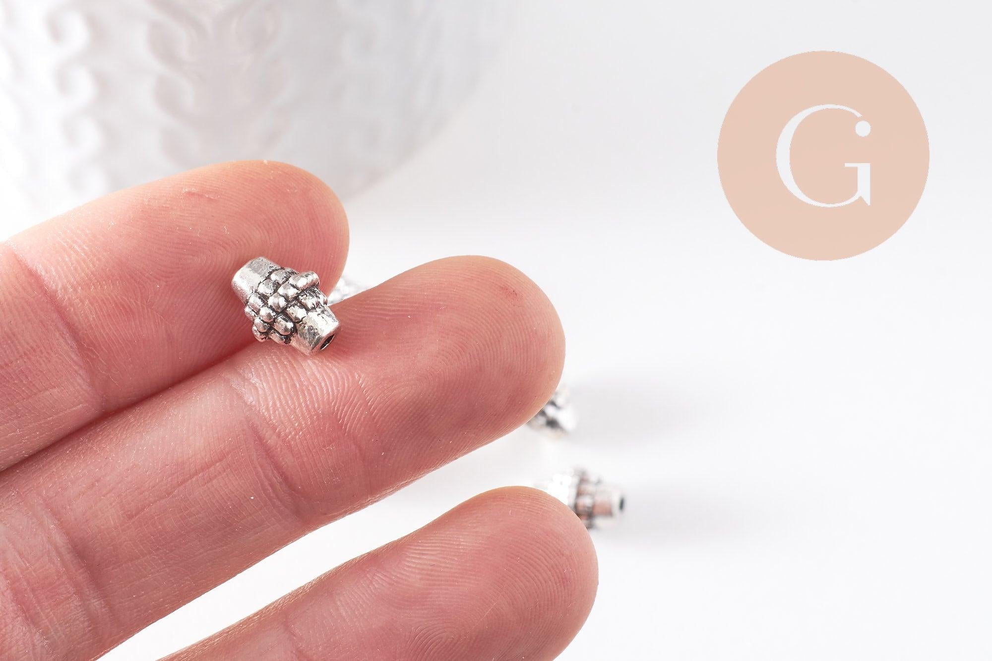 A set of 10 oval Tibetan silver spacer beads with a textured pattern, to create beautiful, creative jewelry.