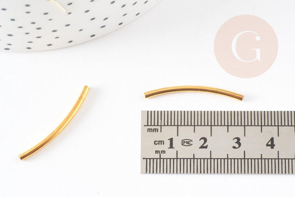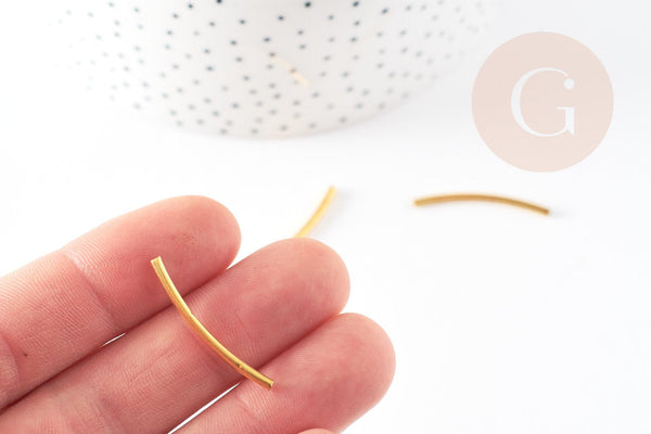 A set of 50 curved tubes in gold-plated brass, perfect for making fine and elegant jewelry.