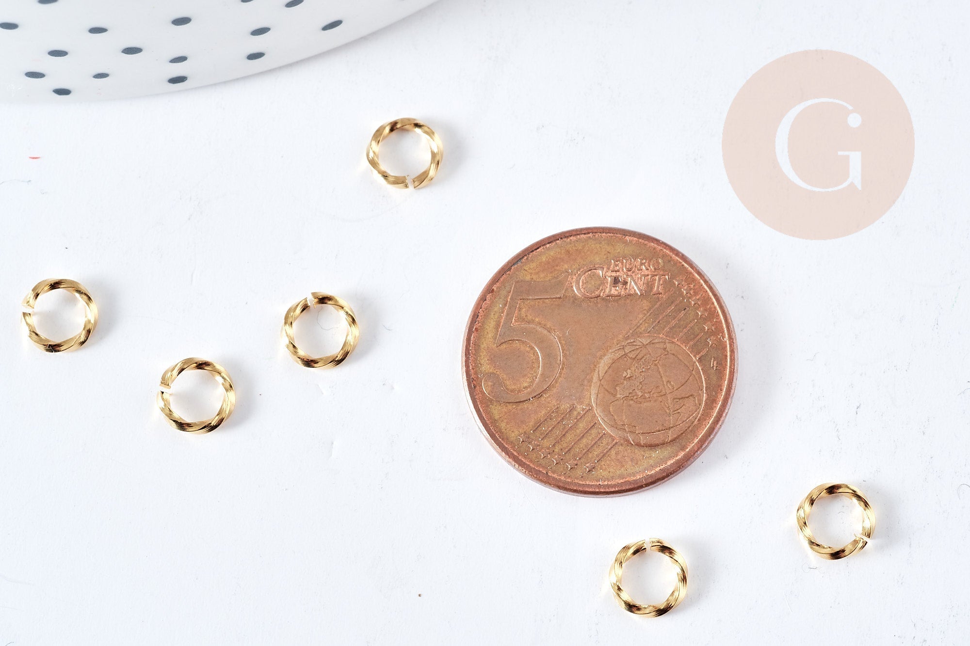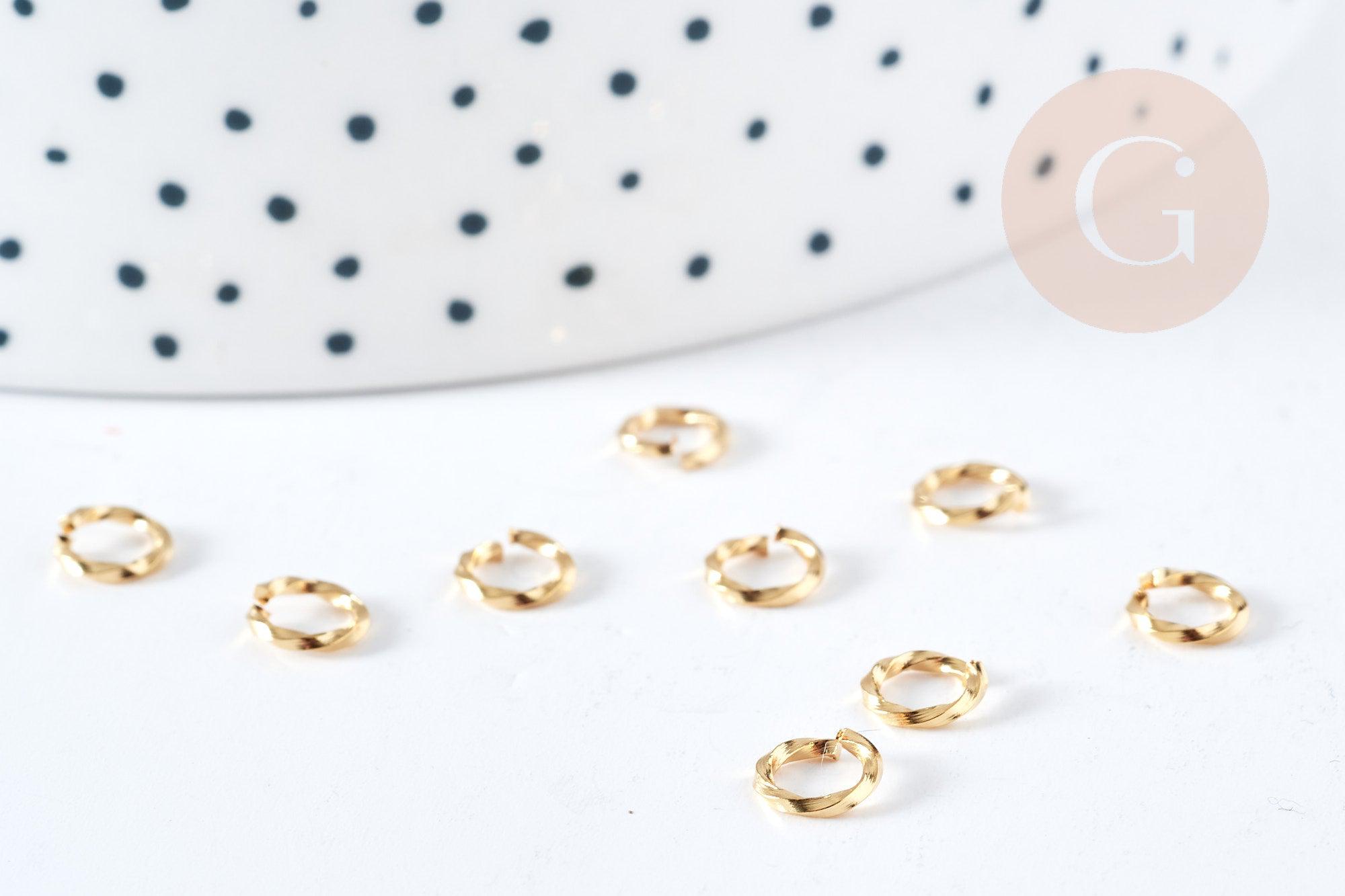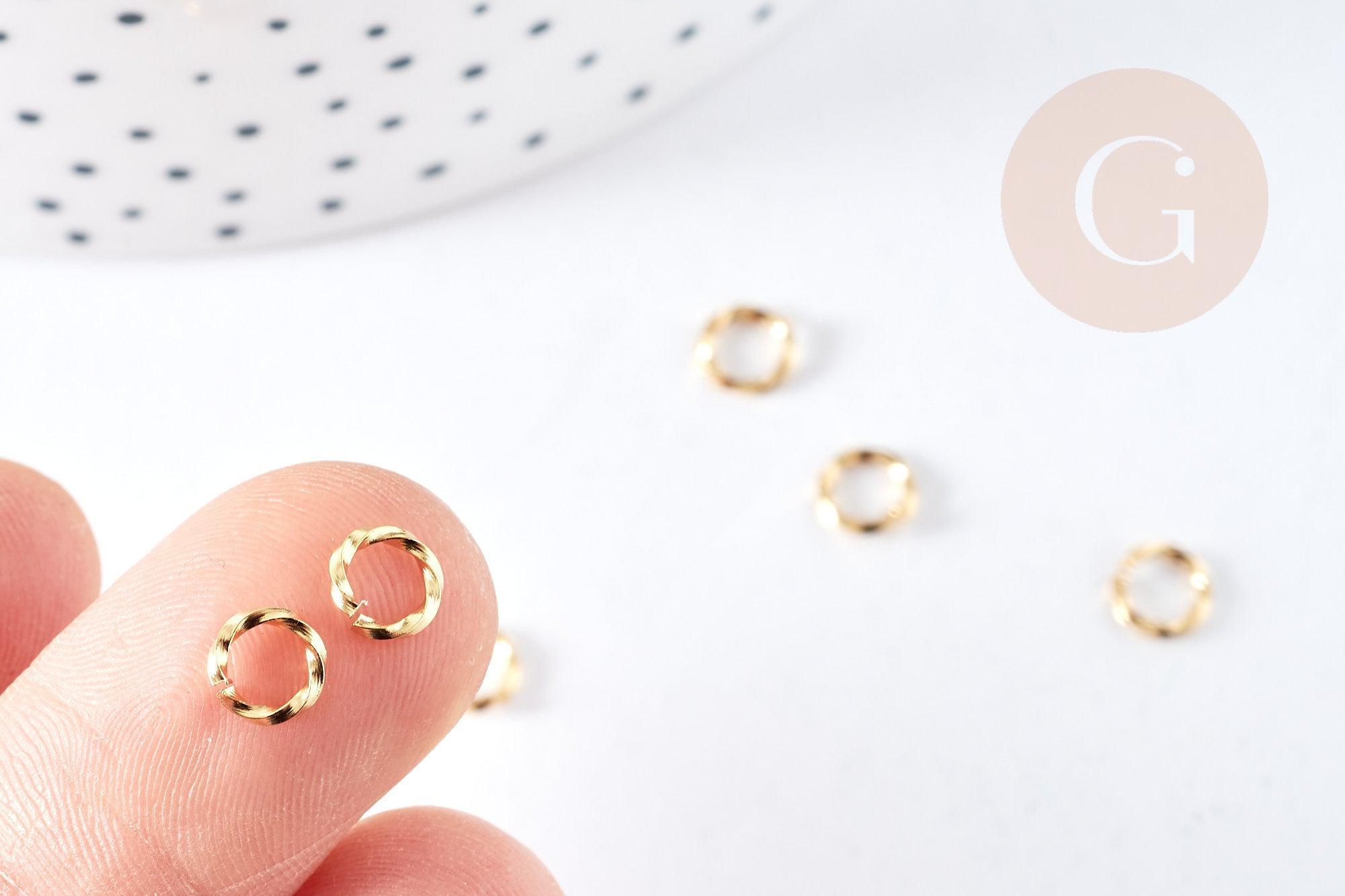 Anneaux ouverts torsadés ronds acier 304 inoxydable doré 6mm, x10 (G8613)