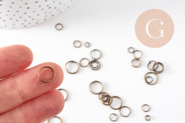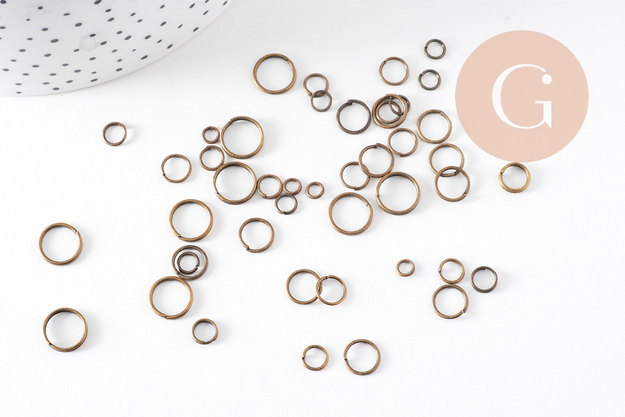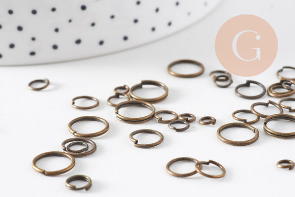 These bronze jump rings of different sizes are ideal for creating DIY costume jewelry. You can assemble them together to create a vintage and trendy piece of jewelry. For assembling your jewelry, the open jump rings are perfect for connecting several elements together. Sold in packs of 10 grams (approximately 25 large jump rings)
