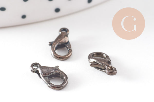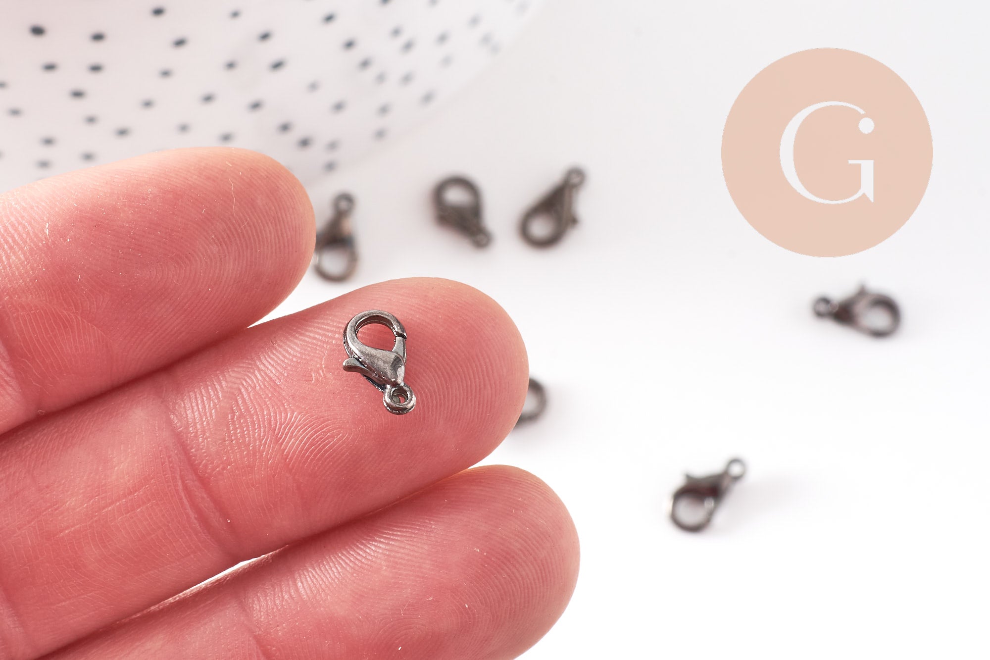 Add a modern and elegant touch to your jewelry with this set of 20 black metal gun finish lobster clasps . Ideal for your necklace, bracelet, long necklace and DIY accessory creations.