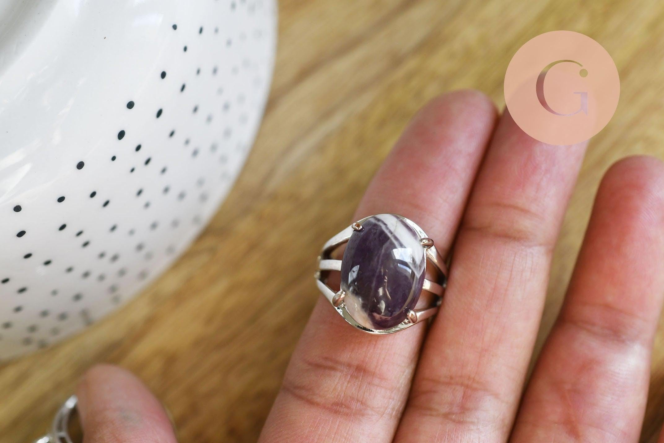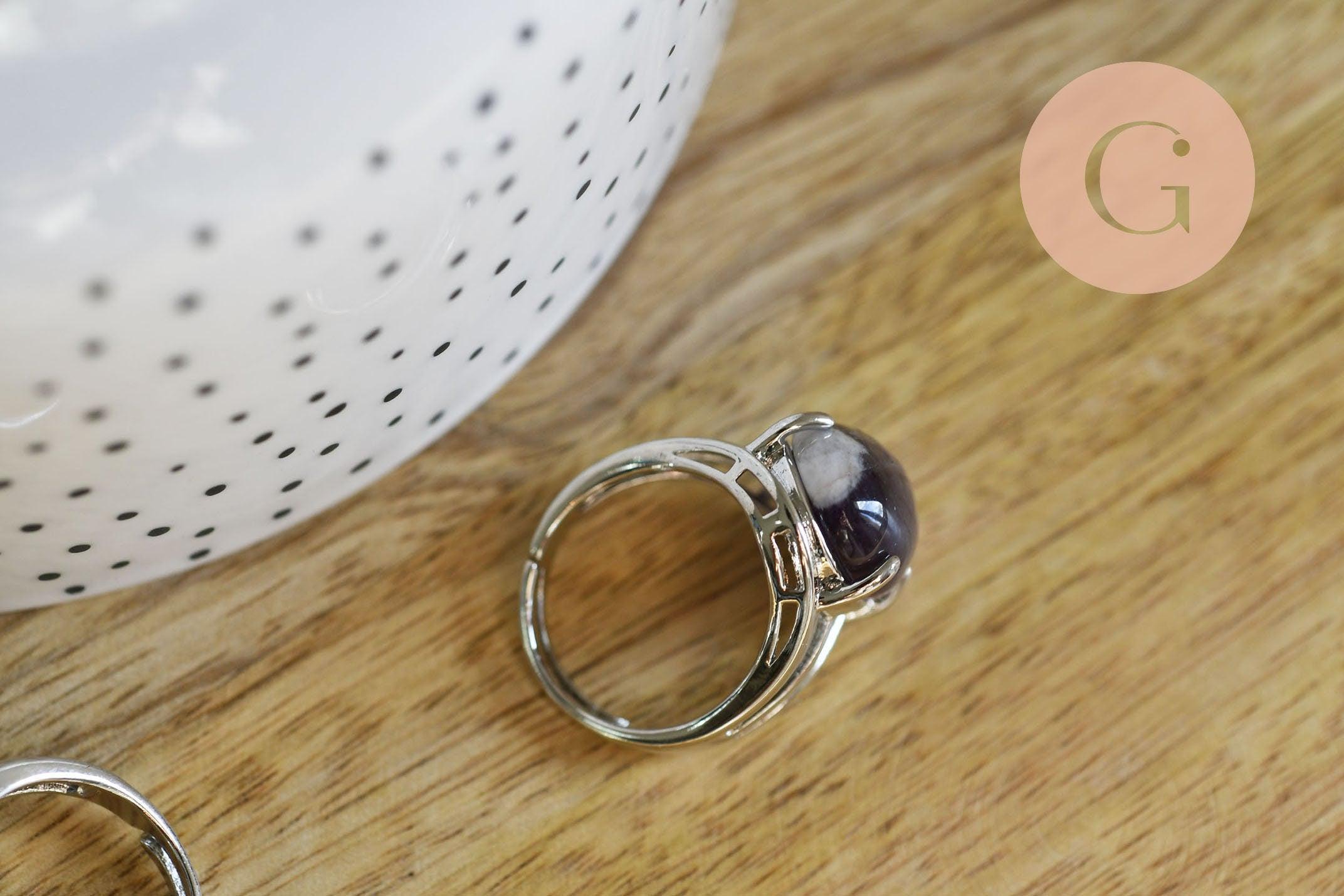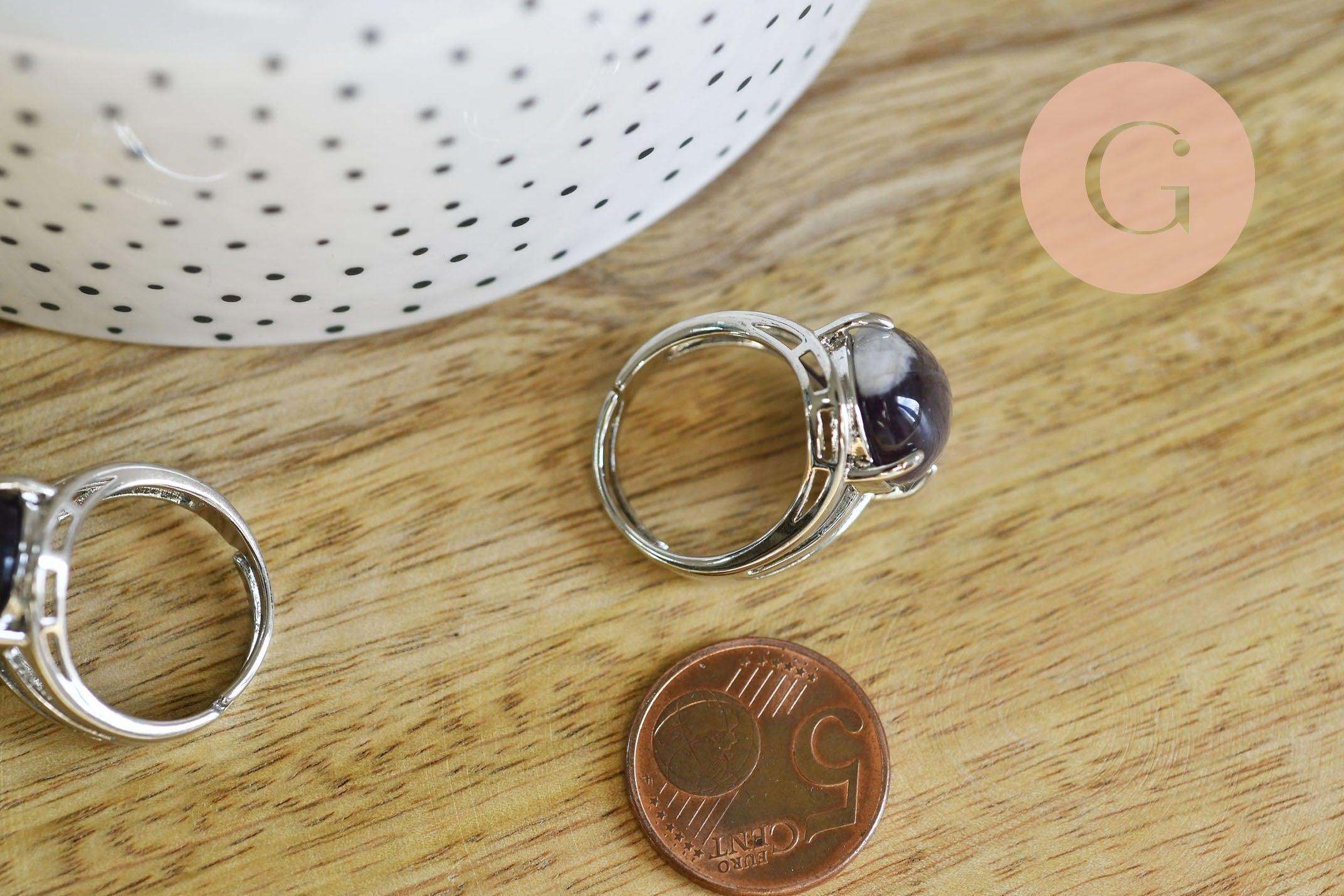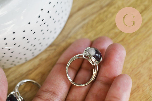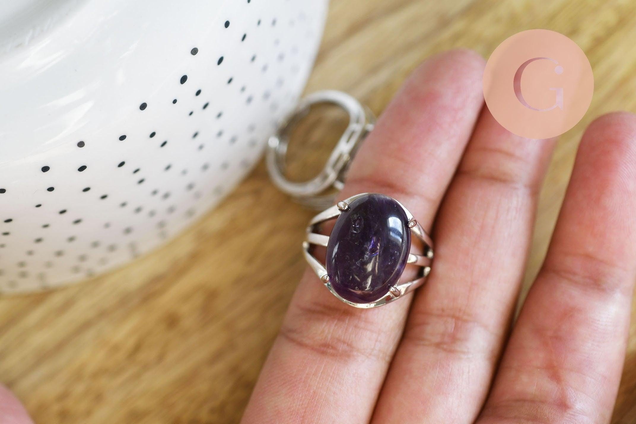 Fall for this adjustable silver ring in natural amethyst to create very trendy bohemian chic jewelry.