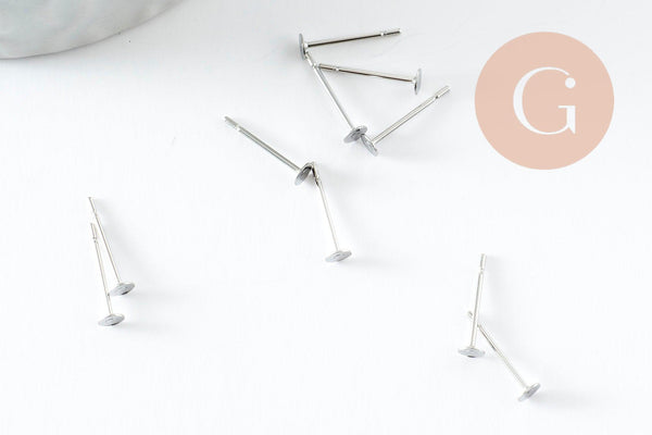 Clous-puces oreille acier inoxydable 316 platine 3mm, x50 (G9465)