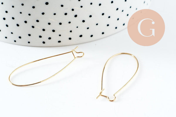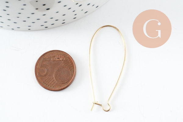 Gold-plated brass hook earring supports, earring supplies, pierced ears, raw brass earrings, jewelry creation, set of 50.43mm