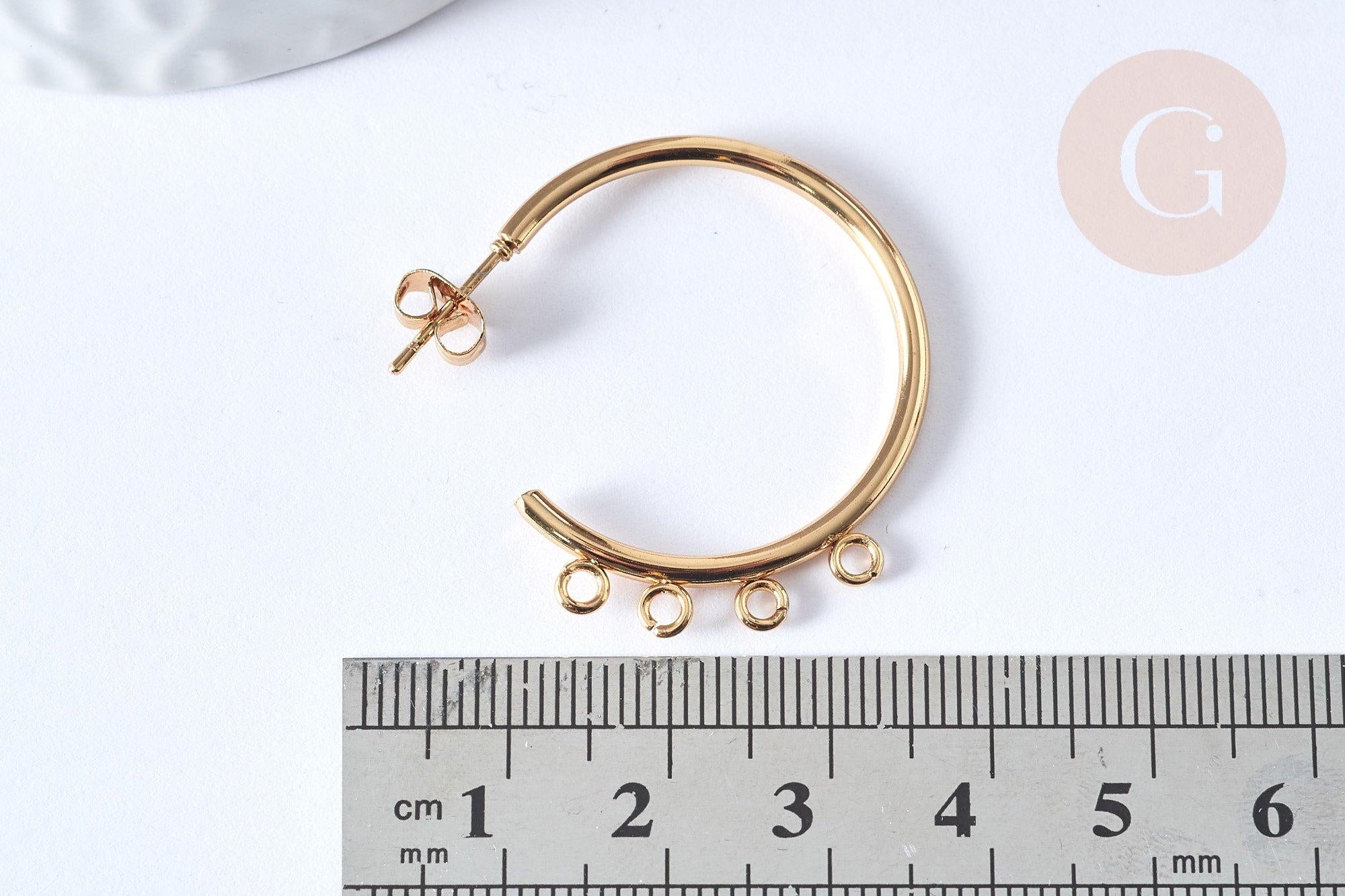 a set of 2 half-creole stud earrings in 304 gold-plated steel to create your own earrings, composed of 3 rings to personalize in a few minutes with pearls, seed beads, etc.