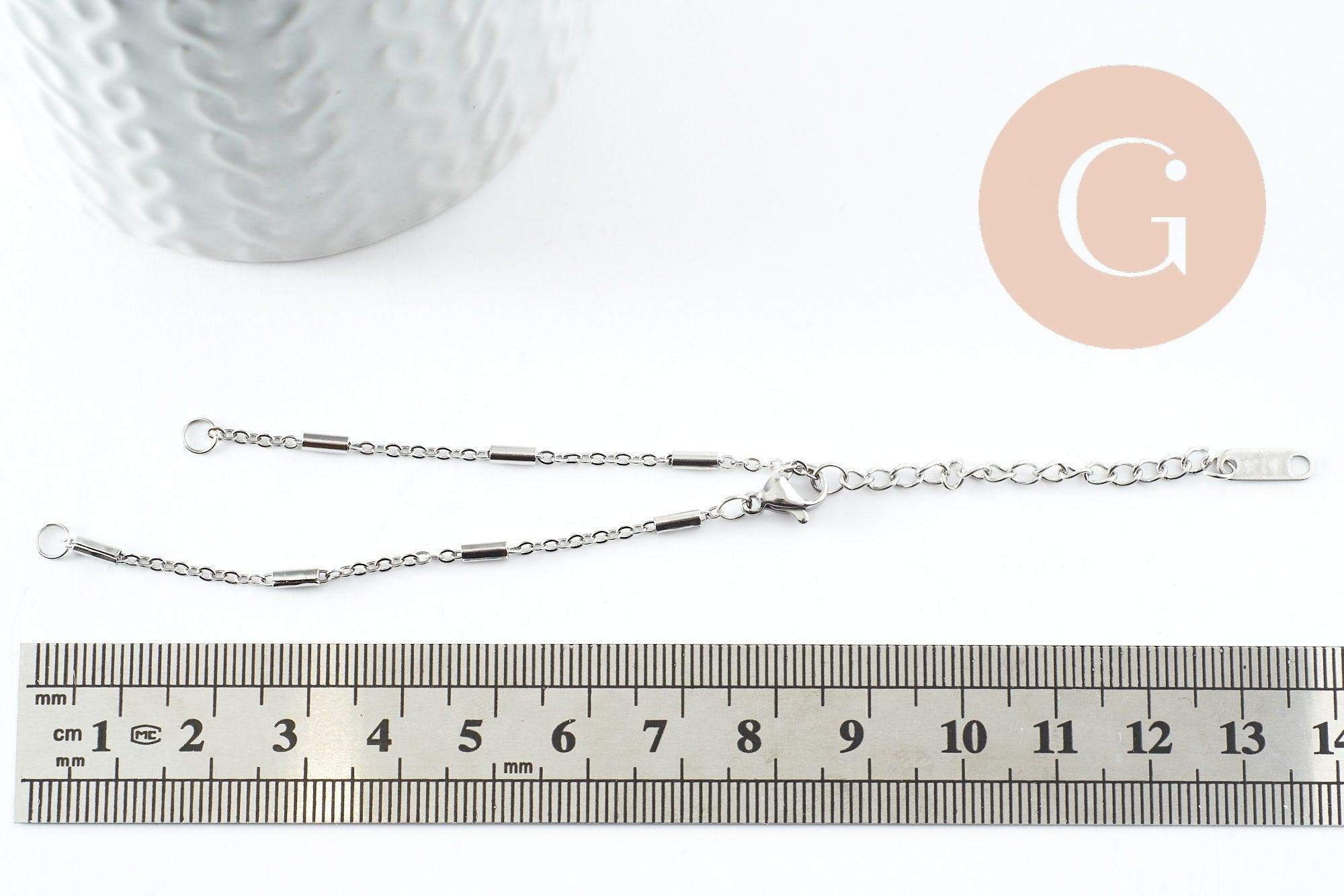 A feminine platinum stainless steel bracelet base , made from fine curb chain and thin stainless steel tubes, finished with a lobster clasp.