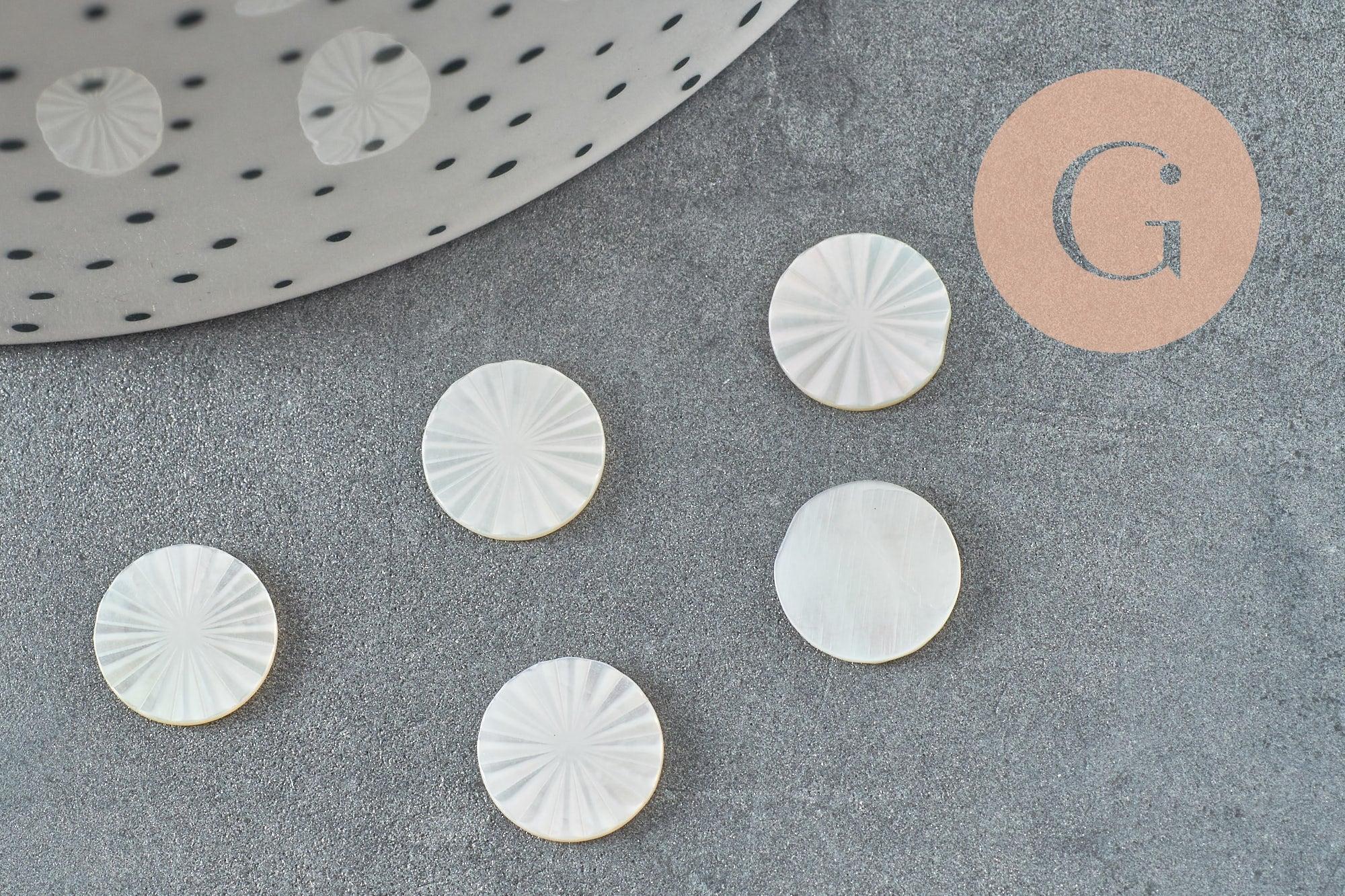 Enhance your DIY costume jewelry creations with this 10mm round cabochon engraved in natural white mother-of-pearl .